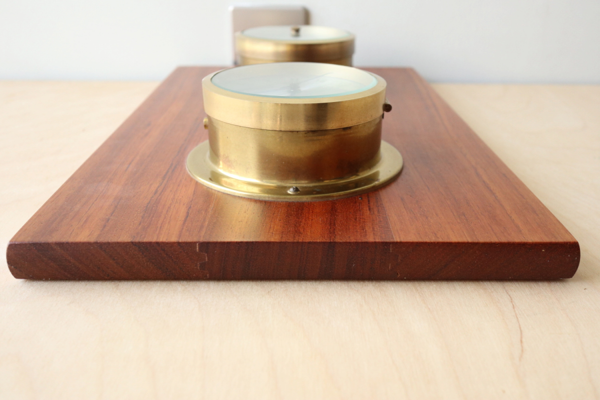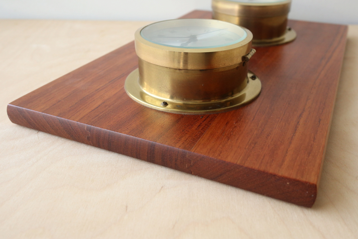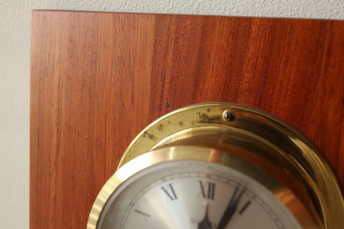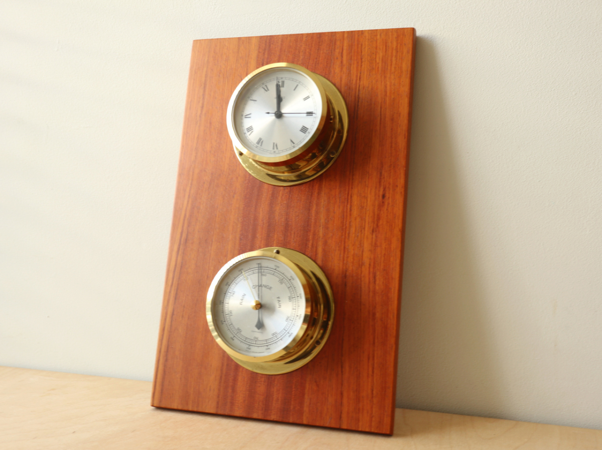 | ウェグナーの家具を製作することで有名なデンマークを代表する家具メーカーのひとつGETAMA社の ウォールクロック、気圧計です。どのような経緯で作られたものか不明ですが、 チークの無垢のボードに航海計器のようなデザインの2つのメーターがあります。 なかなかの珍品でコレクションにもおすすめです。 |