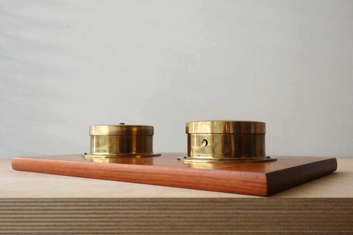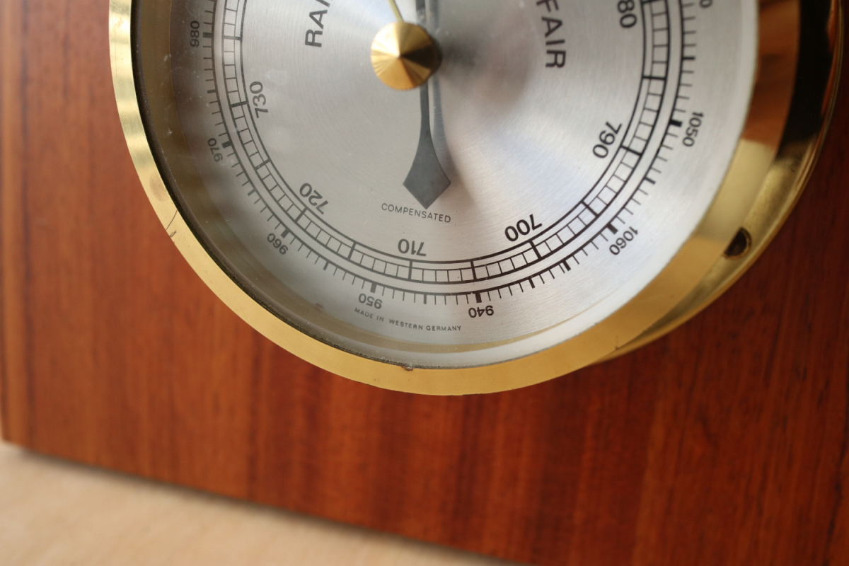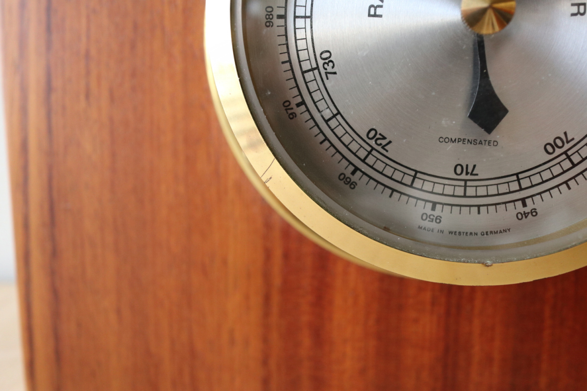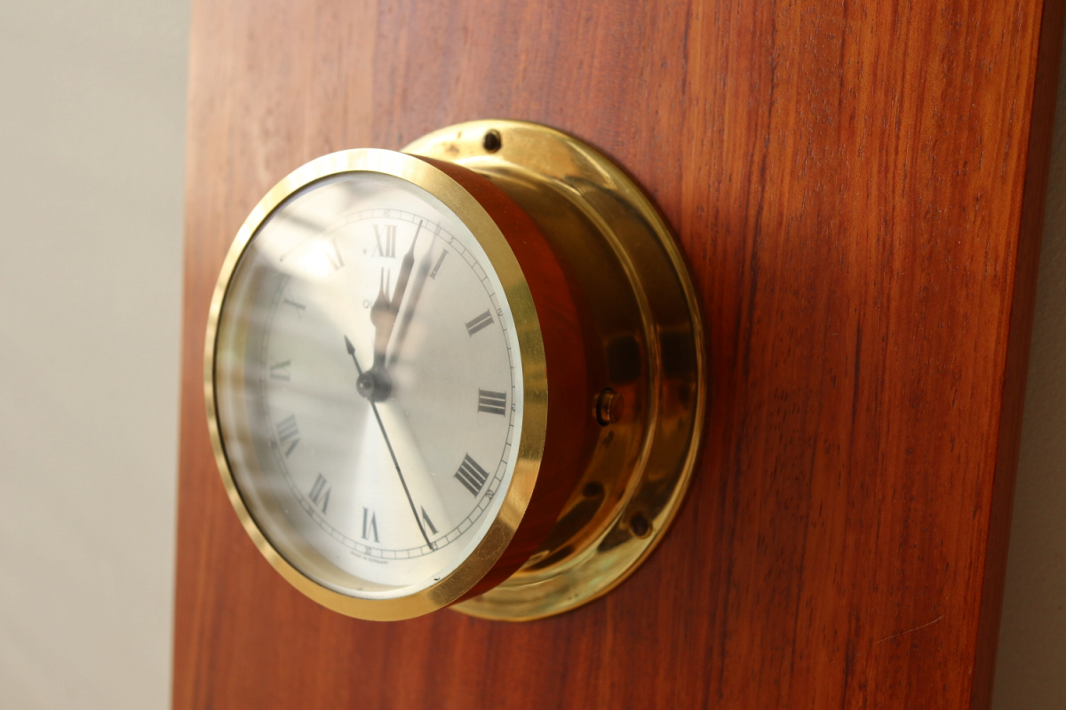 | ウェグナーの家具を製作することで有名なデンマークを代表する家具メーカーのひとつGETAMA社の ウォールクロック、気圧計です。どのような経緯で作られたものか不明ですが、 チークの無垢のボードに航海計器のようなデザインの2つのメーターがあります。 なかなかの珍品でコレクションにもおすすめです。 |