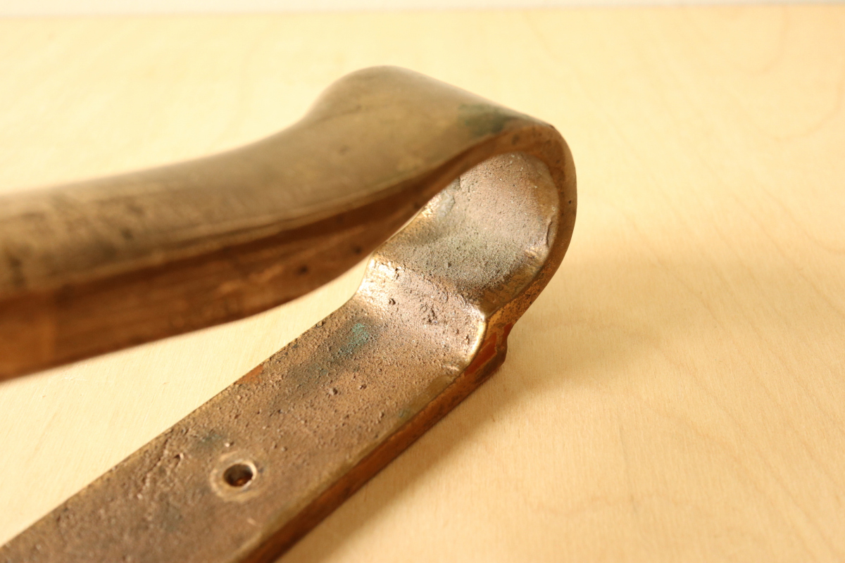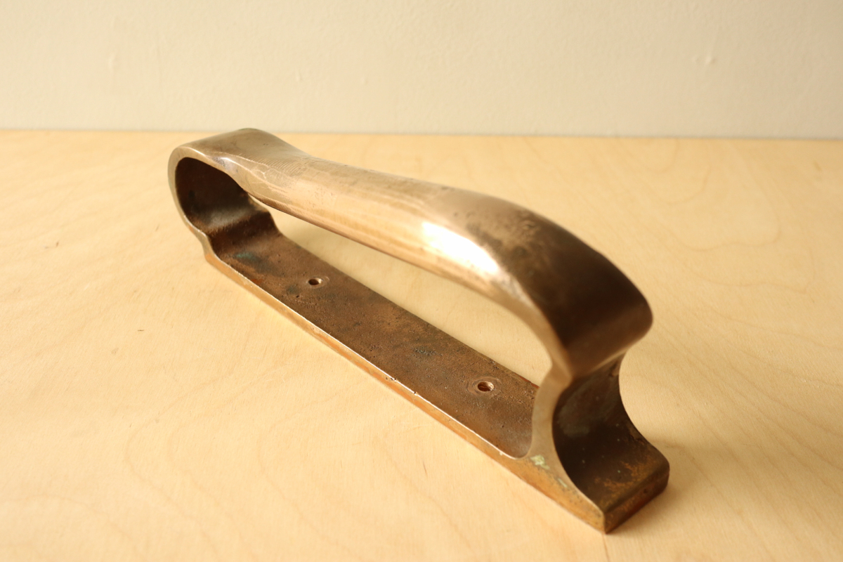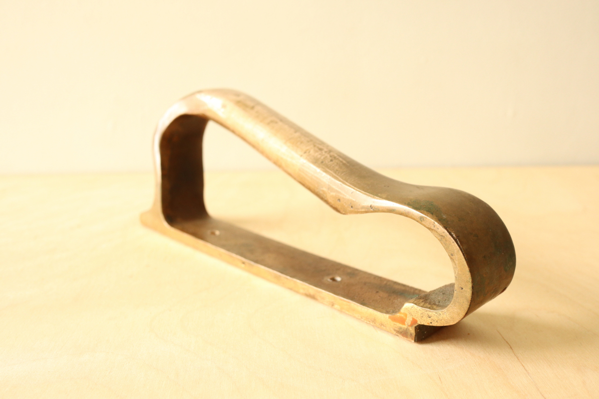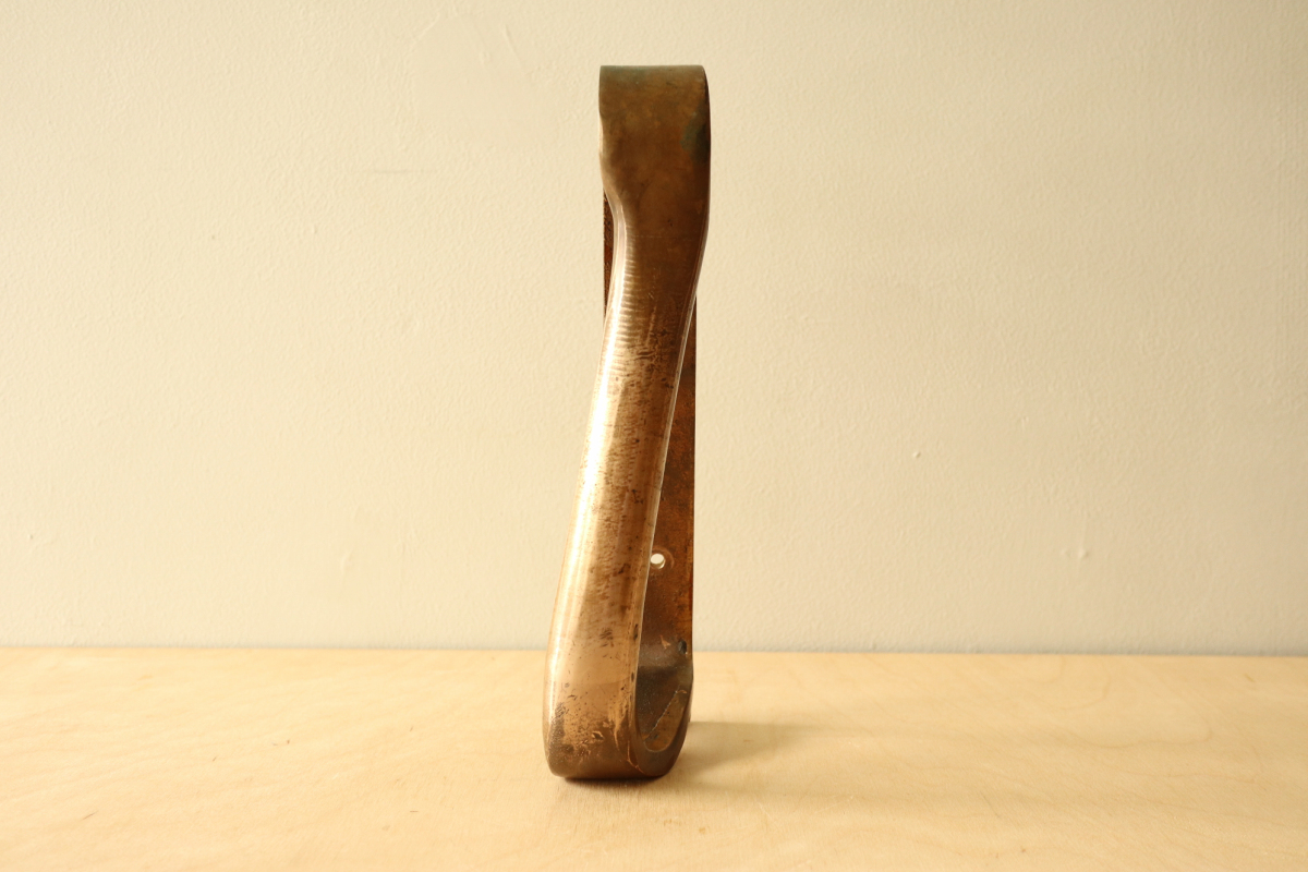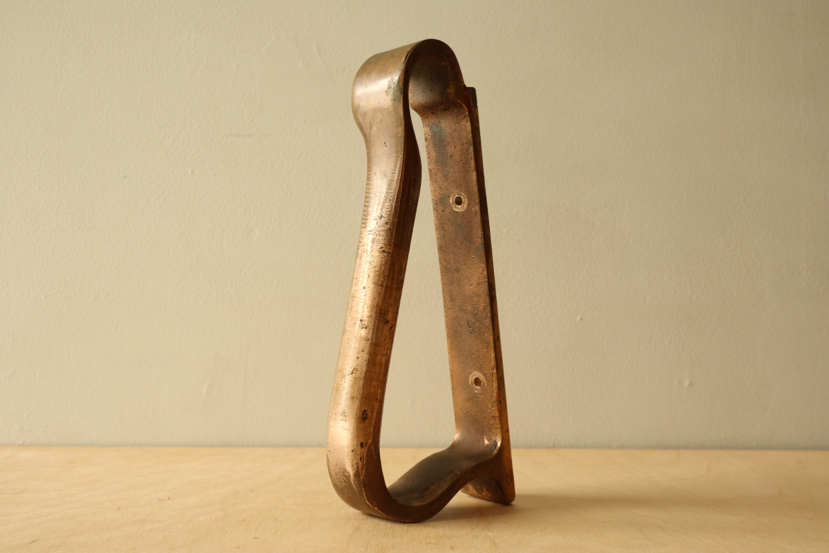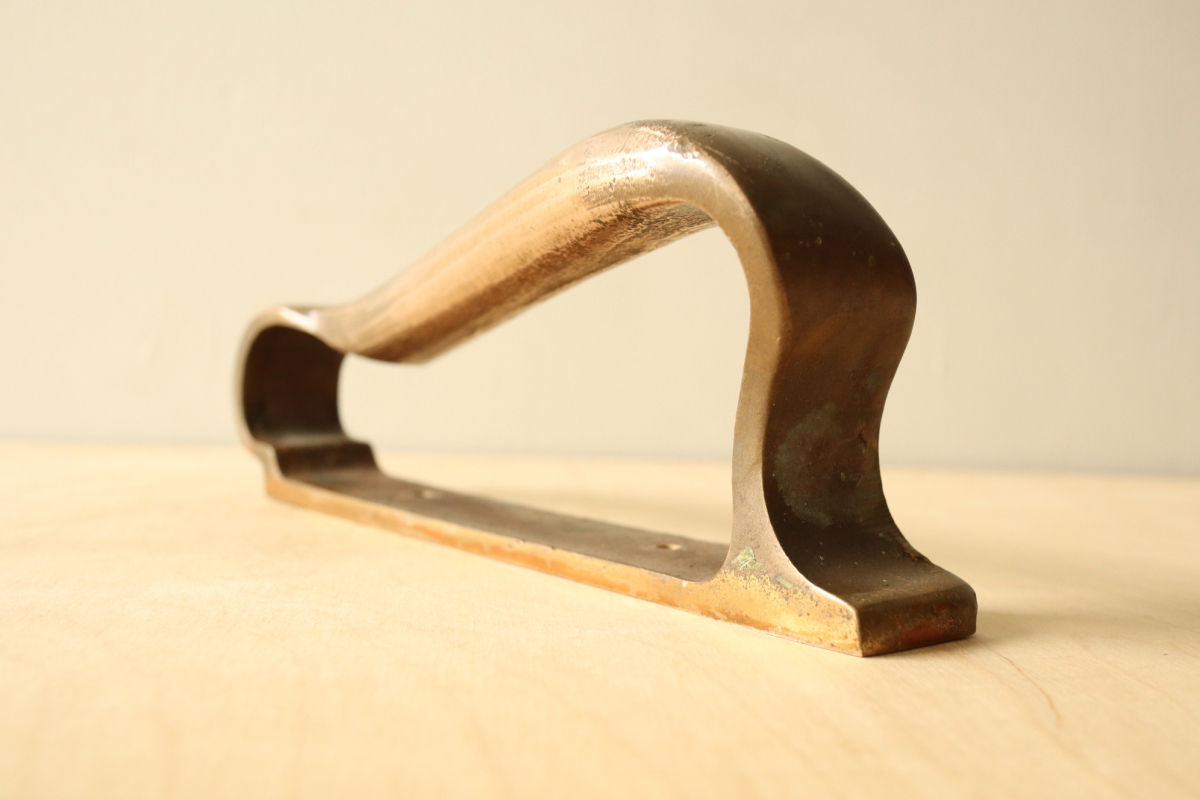 アアルトが設計した建築のためにのみ製作・設置された、極めて稀少なドアハンドルです。 一般流通することのなかった建築パーツでありその存在自体が「空間の一部」であることを前提に デザインされています。 本作は、数あるアアルトのハンドルの中でも最も広く知られ、評価の高いモデル。 手の動きに沿う有機的な曲線と、重量感のあるブロンズの質感が一体となり、単なる金物の域を 超えた彫刻的な存在感を備えています 特筆すべきは、その使われ方。 縦方向に2連・3連とリズミカルに配置される例や、上下どちらの向きでも成立する自由度の高い設計は、 建築家としてのアアルトの思考が色濃く反映されたもの。 市場に出る機会は極めて限られており、コンディションの良い個体は年々減少 単体のプロダクトとしてだけでなく、「建築の一部を所有する」という意味において、 コレクションピースとして成立する希少な存在です。 |