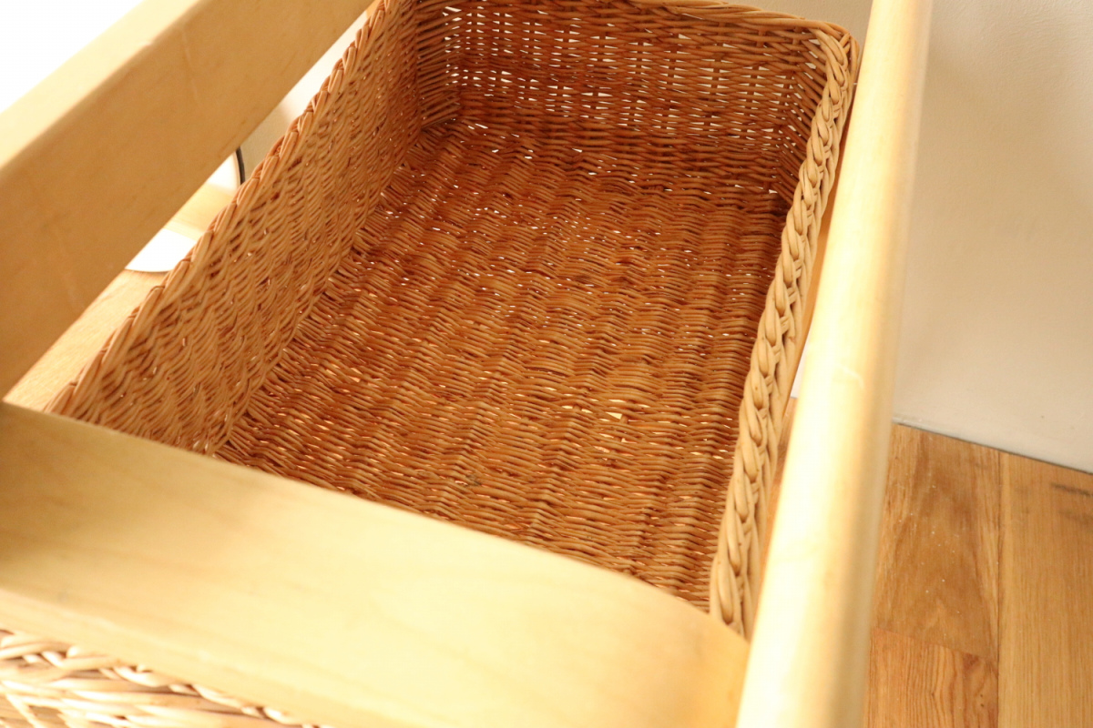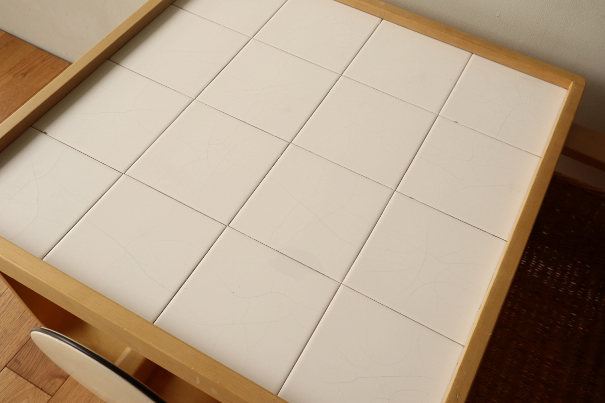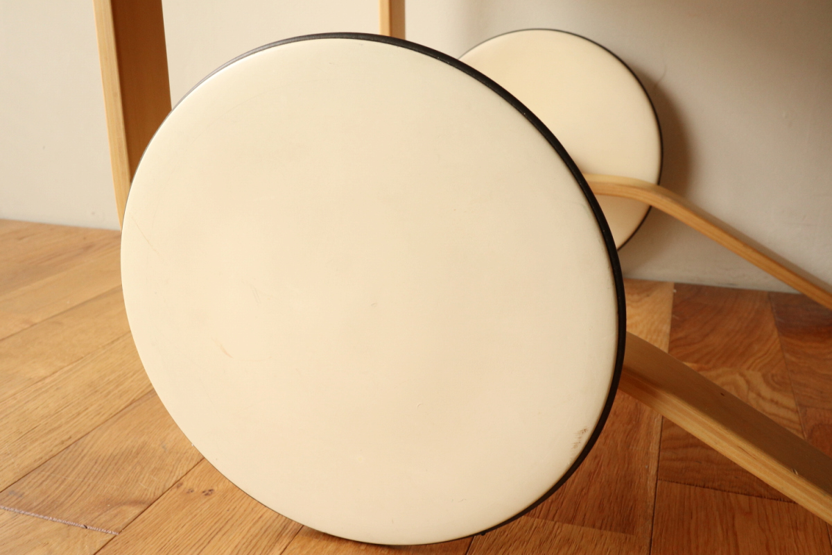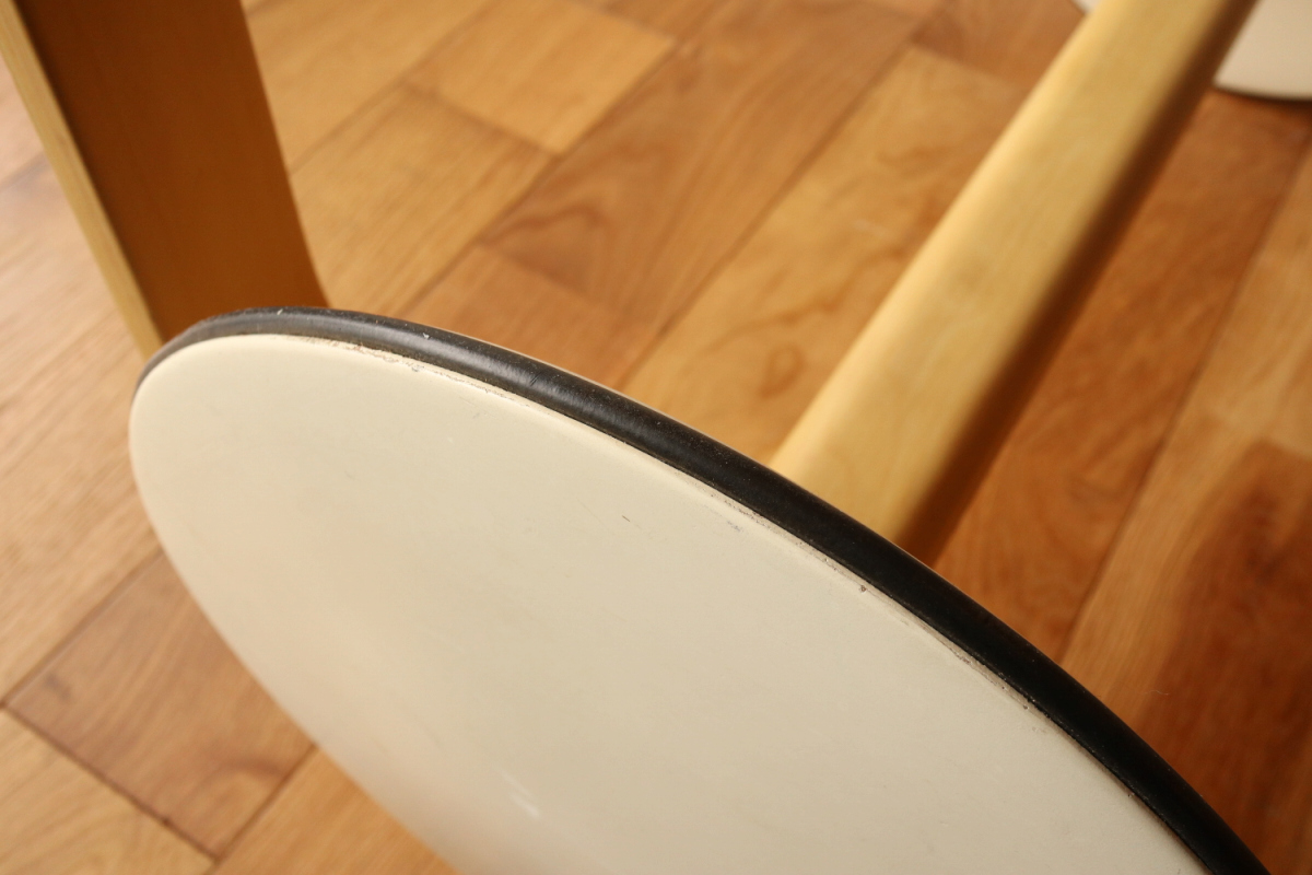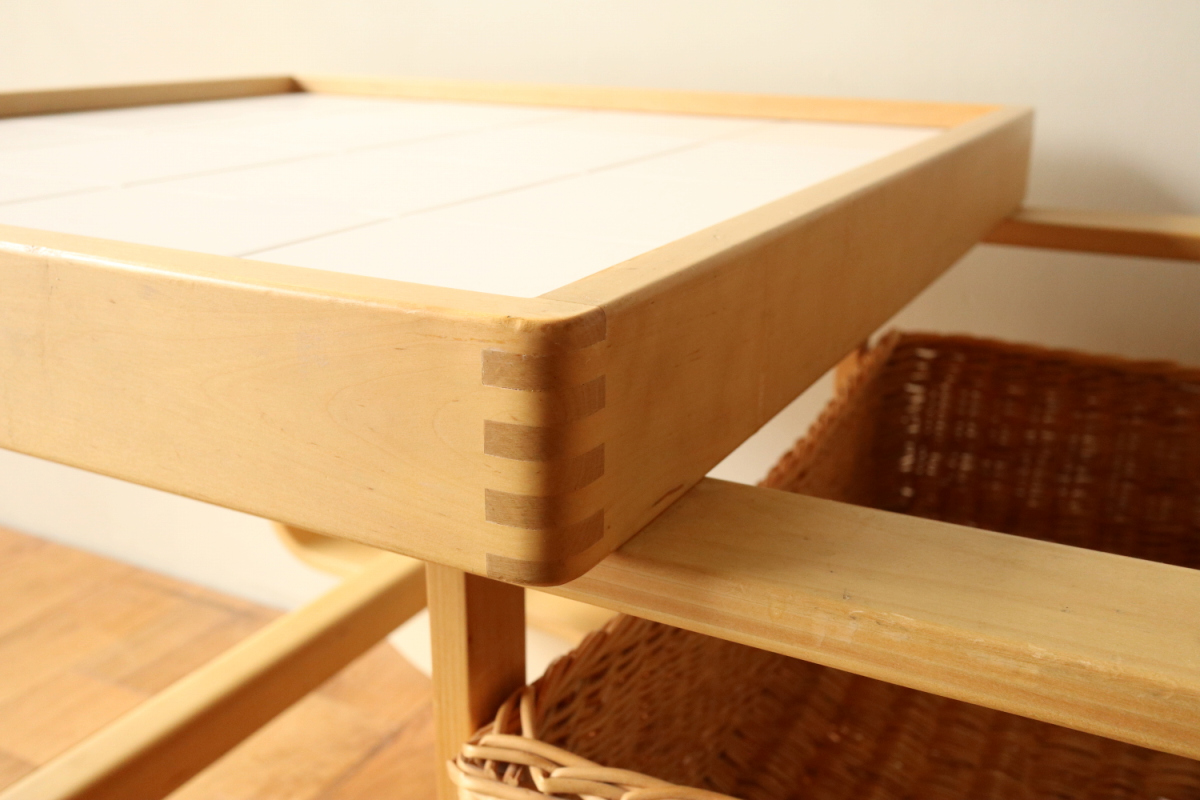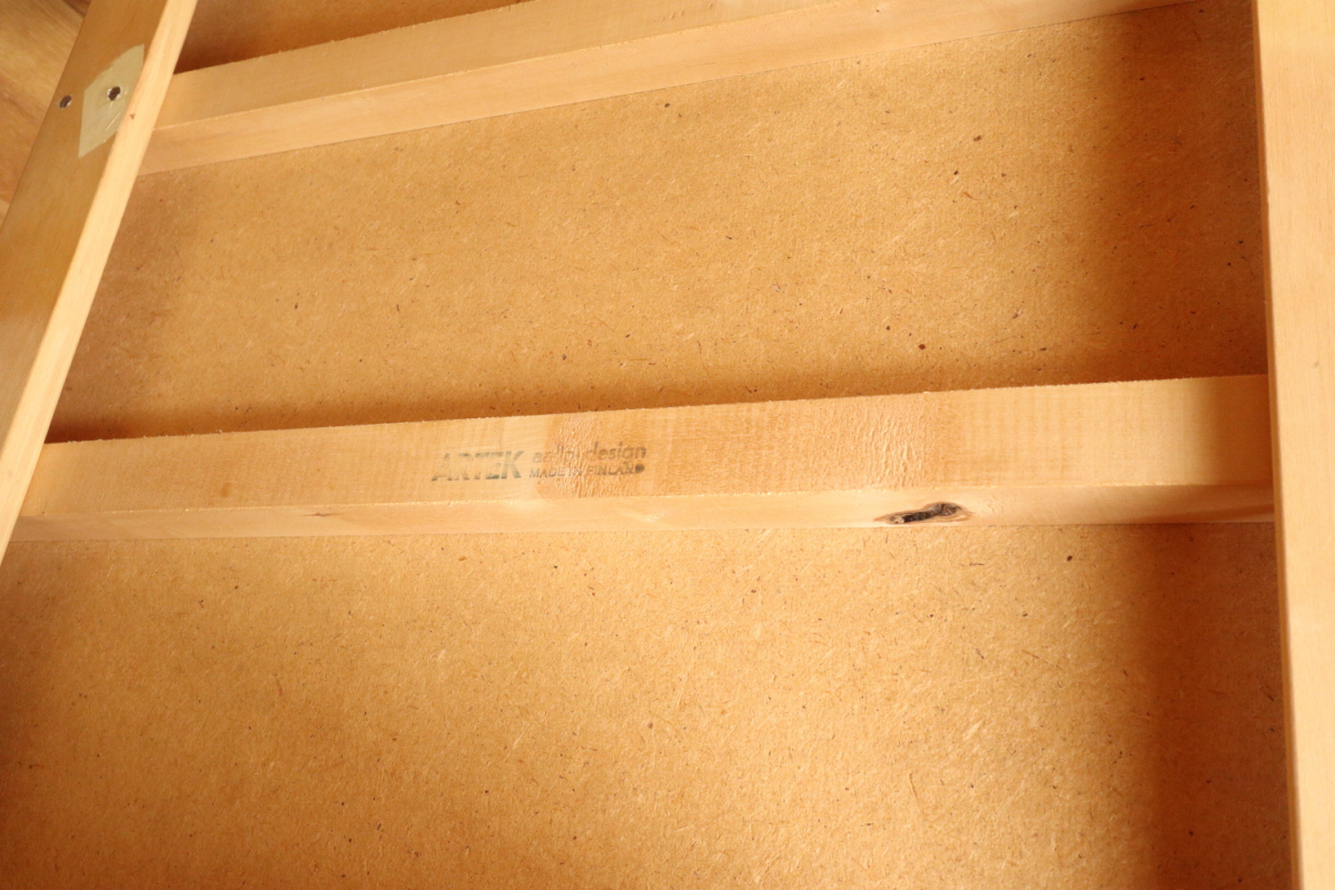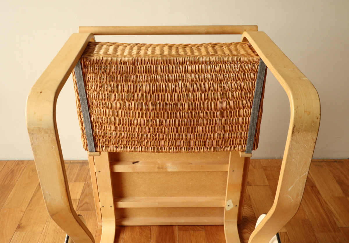 | アルヴァ・アアルトがデザインした名作 Tea Trolley 900。 その中でも、本品は1960年代製を示すオリジナルスタンプが明確に残る希少なヴィンテージ個体です。 ティートロリー900は、スツールやチェアに比べても当時のオリジナルが市場に出回る機会が非常に少なく、 とくにスタンプ付きの1960年代製となると、コレクターズピースとしての価値は年々高まっています。 タイル天板には、ヴィンテージならではの表面的なヘアラインクラックが見られますが、 構造的な割れはなく、使用に支障はありません。 長い年月を経た素材が生み出す表情として、オリジナルの魅力を損なわない範囲に収まっています。 籐製のバスケットは、張り・色艶ともに良好なコンディションを保っており、 実用はもちろん、空間のアクセントとしても美しい存在感を放ちます。 工業製品でありながら、木・籐・タイルという異素材を完璧なバランスでまとめ上げた一台。 現行品では決して再現できない、時代の空気を纏ったArtekの本質を感じていただけるティートロリーです。 |