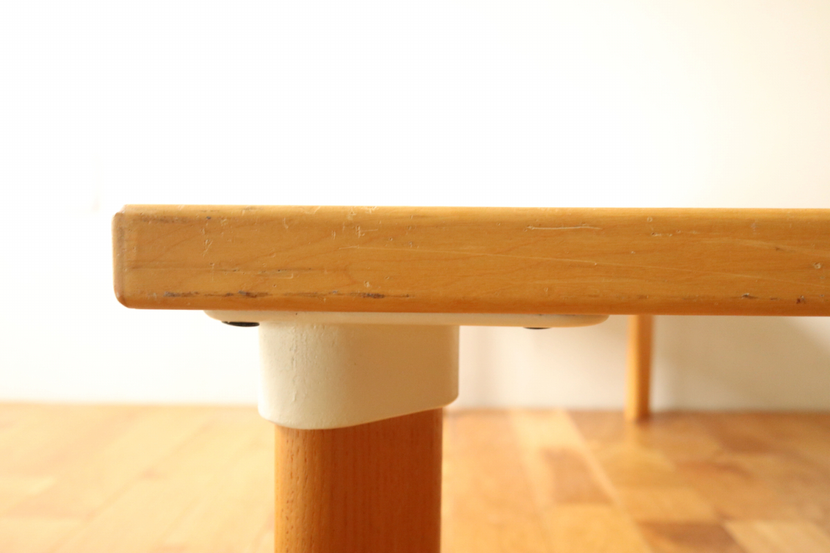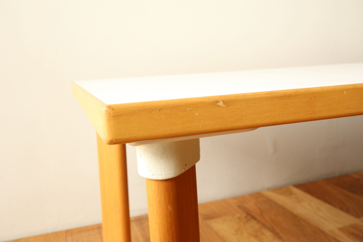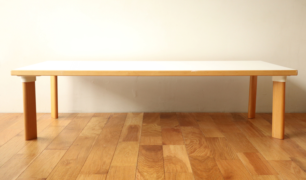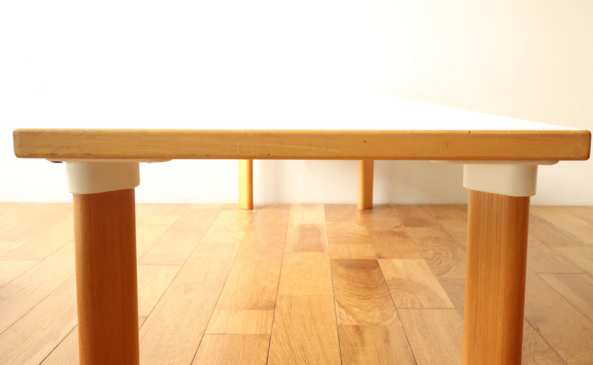 | 90年代くらいのイレギュラーサイズのソファテーブルです。 オプションのHL-1レッグでしかもアッシュです。 そこそこのサイズがありますが、天板の厚みが薄くシャープな印象に仕上がっております。 ラミネートトップのためお手入れも簡単で使い勝手が良いです。 |