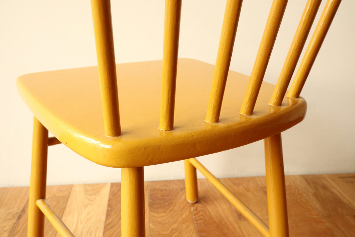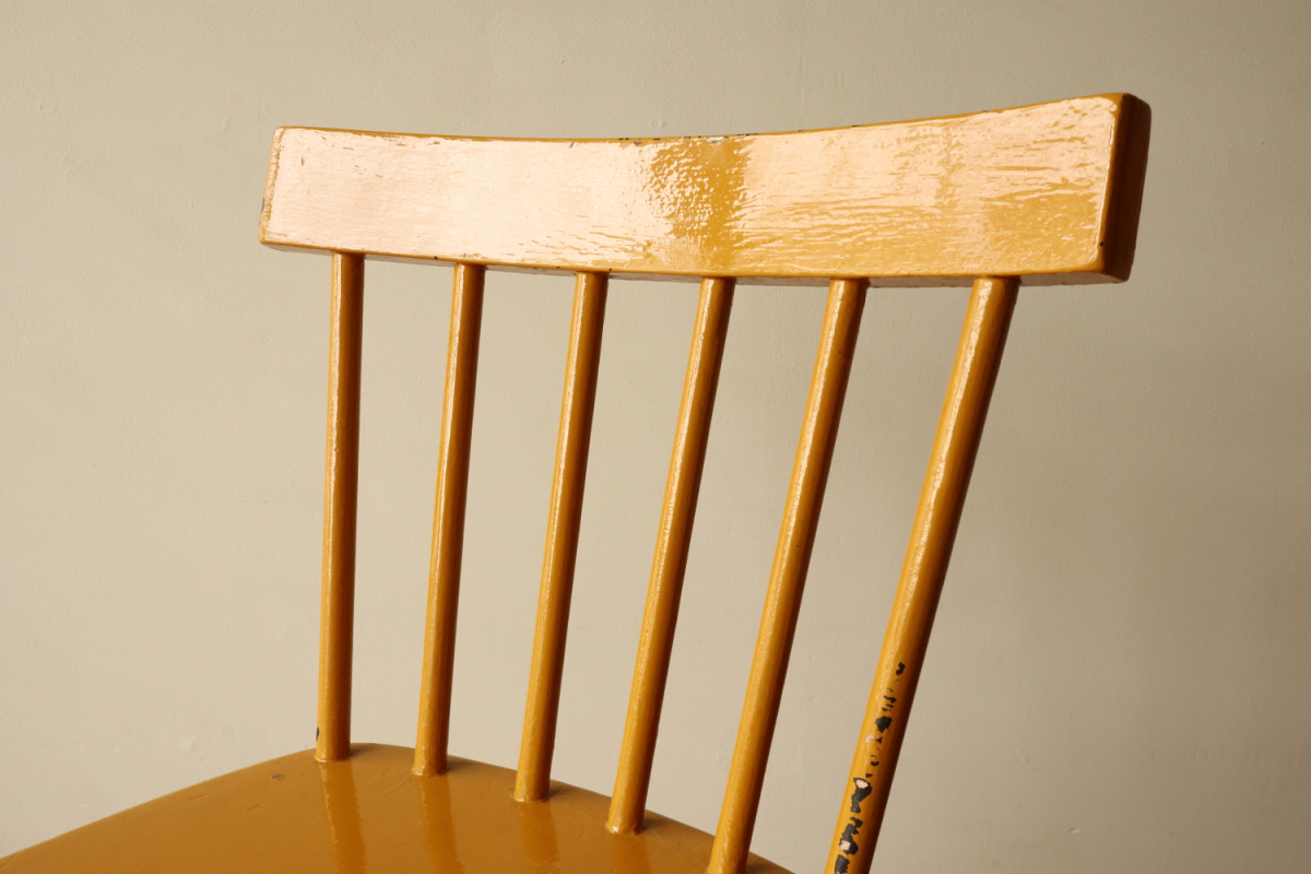 | 1940年代頃に製作された、Aino Aaltoデザインの希少モデル Chair 641。 円柱パーツをデザインソースにした構成は、装飾を排したミニマルさの中に、 計算し尽くされた美しいバランスを感じさせます。 Aino Aaltoの作品は、Alvar Aaltoとは別の文脈で評価される存在。 生産数が少なく、市場に出回る機会も限られているため、 特に良好なコンディションで残る個体は年々入手が難しくなっています。 リペイントの落ち着いたマスタードイエローは、空間に静かな個性と温かみを添える色。 「知る人ぞ知る」一脚を探している方にこそ、手に取っていただきたい椅子です。 |