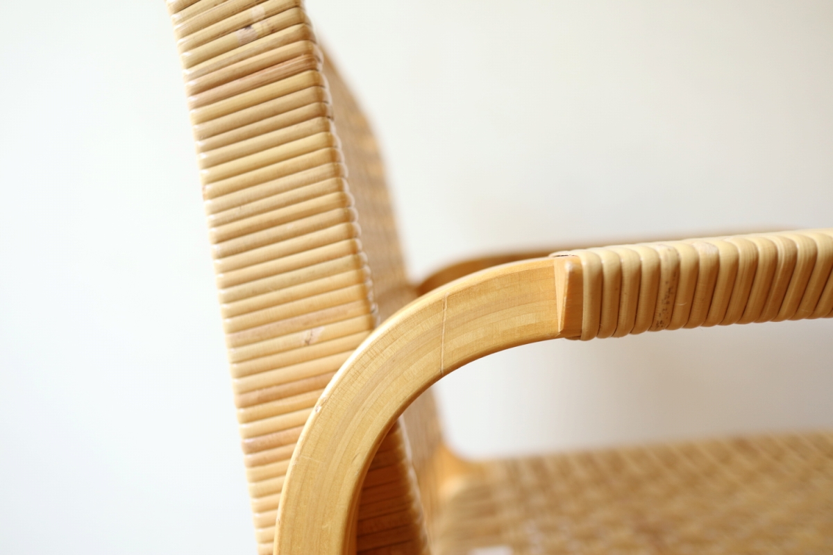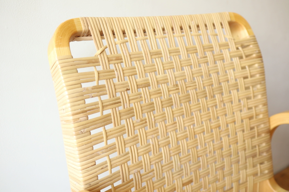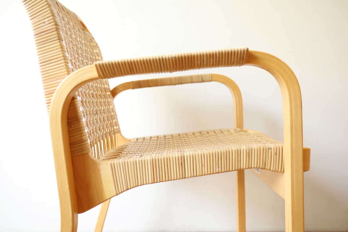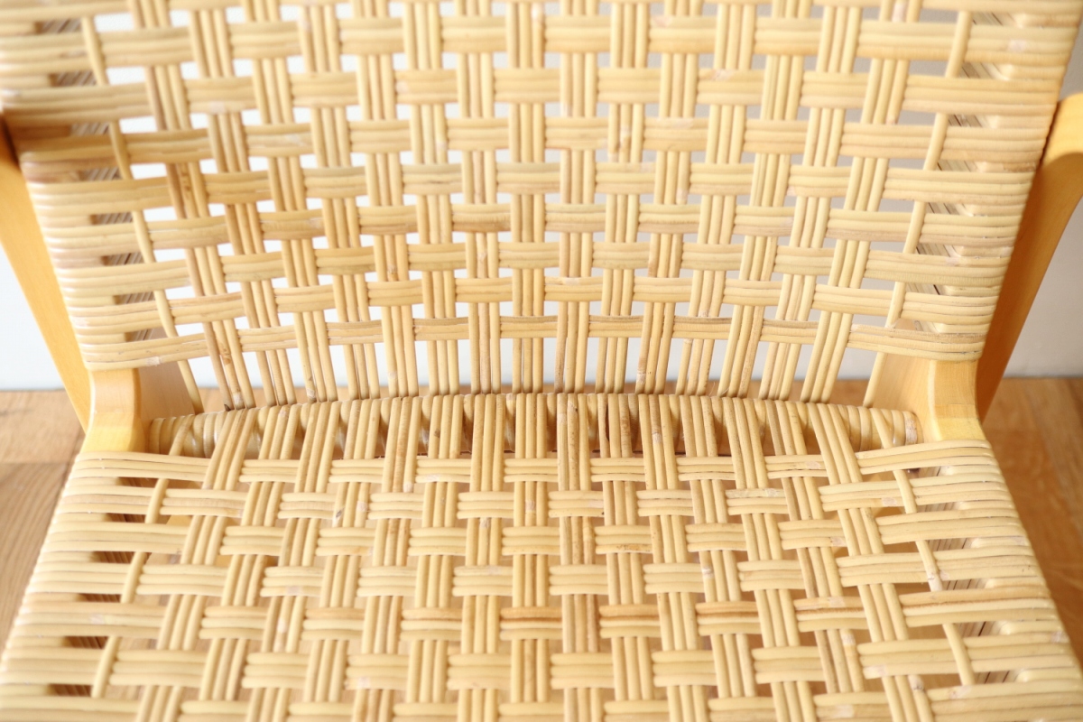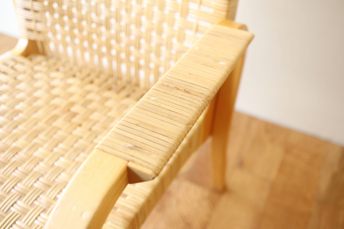 | ArtekのChair45です。80年代ごろのヴィンテージ。 Chair45は現在は廃番となっておりますが、ウェービングテープ仕様で定価20万円以上していた高級ラインのチェアです。 当店入荷後、籐張にしております。アーム部の籐も張り替えております。 適度な張りとしなやかさがあり非常に座り心地が良くしあがっております。 耐久性もあり、長くお使いいただけます。 |