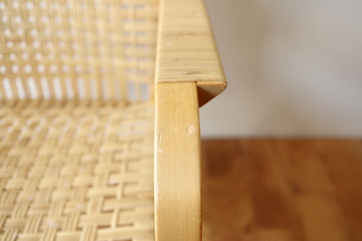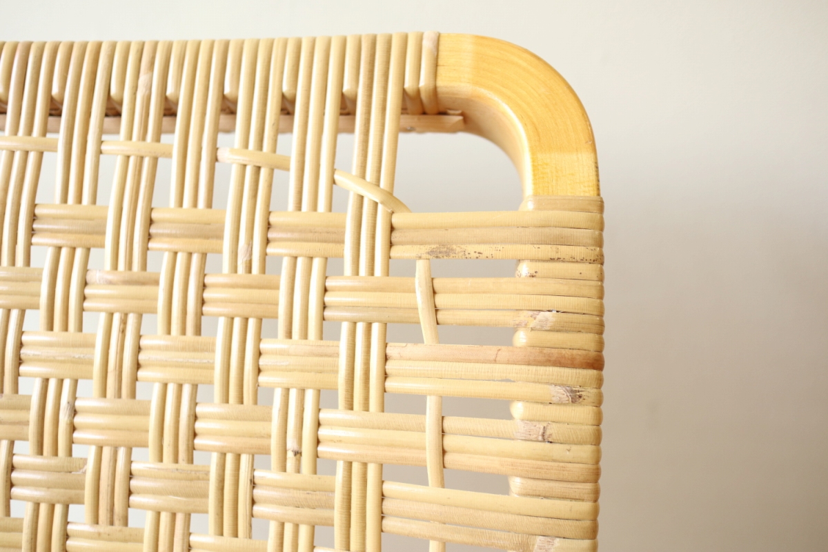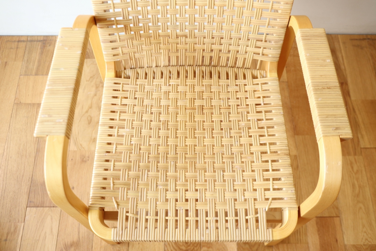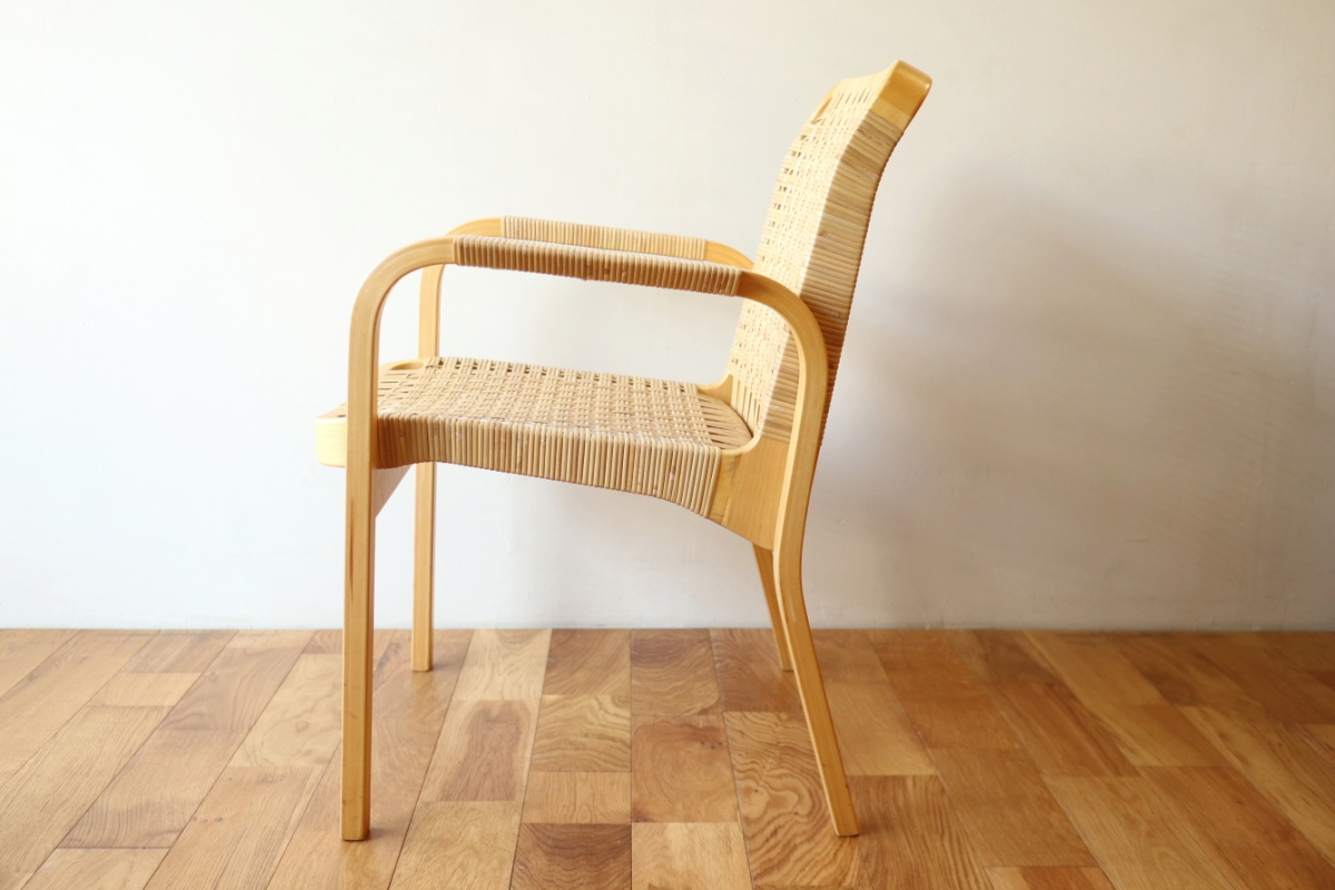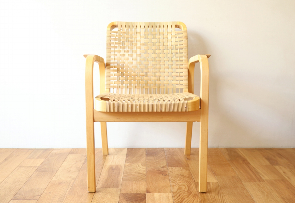| ArtekのChair45です。80年代ごろのヴィンテージ。 Chair45は現在は廃番となっておりますが、ウェービングテープ仕様で定価20万円以上していた高級ラインのチェアです。 当店入荷後、籐張にしております。アーム部の籐も張り替えております。 適度な張りとしなやかさがあり非常に座り心地が良くしあがっております。 耐久性もあり、長くお使いいただけます。 |