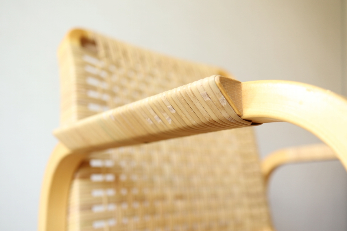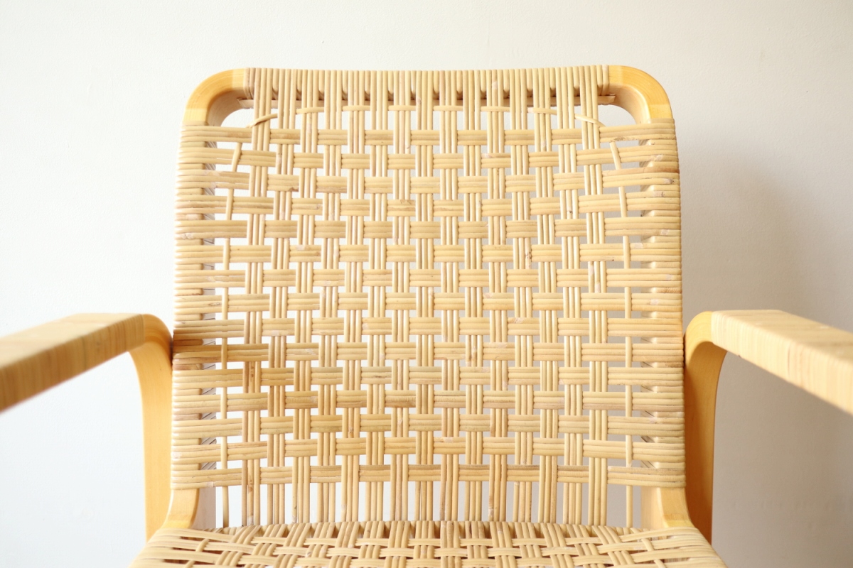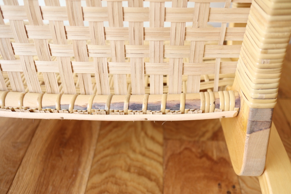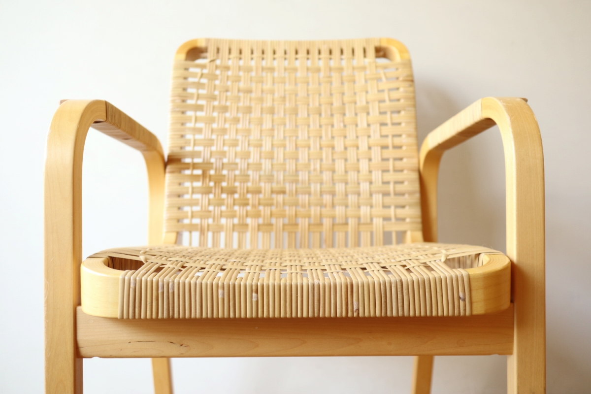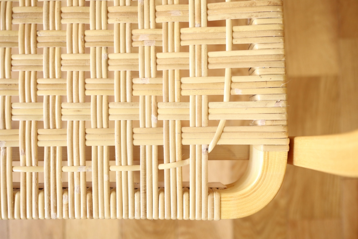 | ArtekのChair45です。80年代ごろのヴィンテージ。 Chair45は現在は廃番となっておりますが、ウェービングテープ仕様で定価20万円以上していた高級ラインのチェアです。 当店入荷後、籐張にしております。アーム部の籐も張り替えております。 適度な張りとしなやかさがあり非常に座り心地が良くしあがっております。 耐久性もあり、長くお使いいただけます。 |