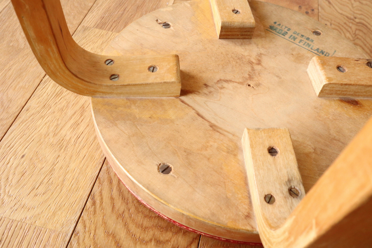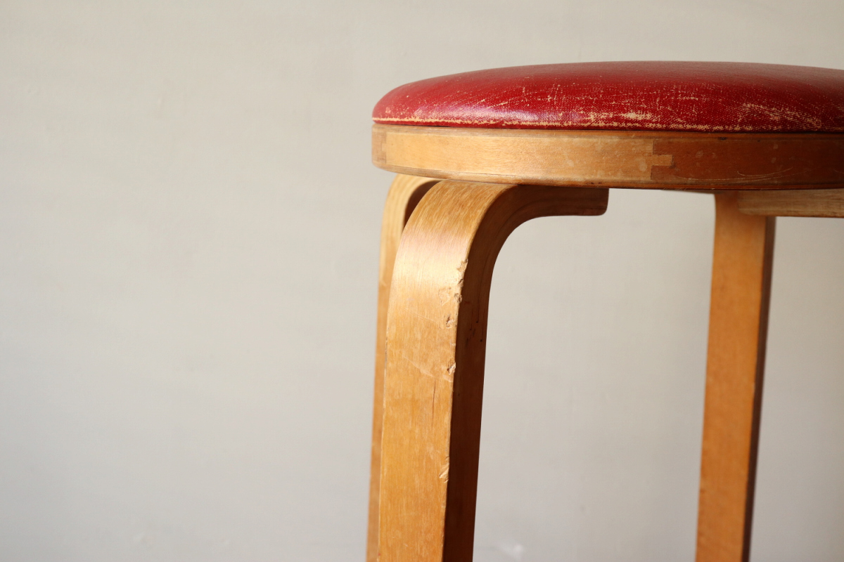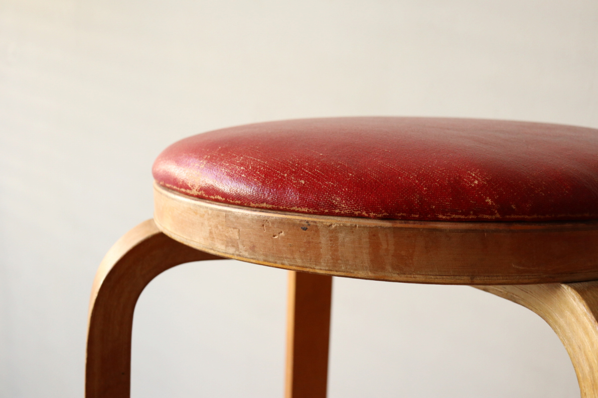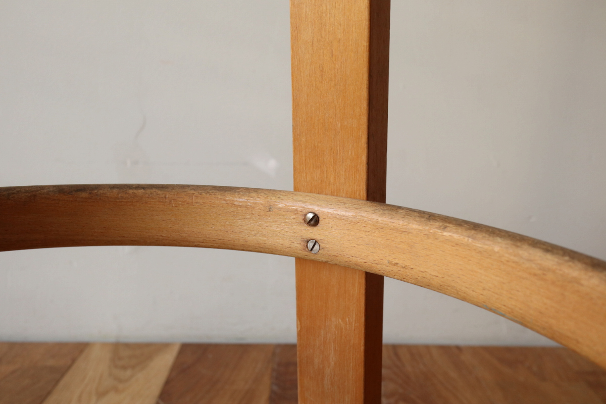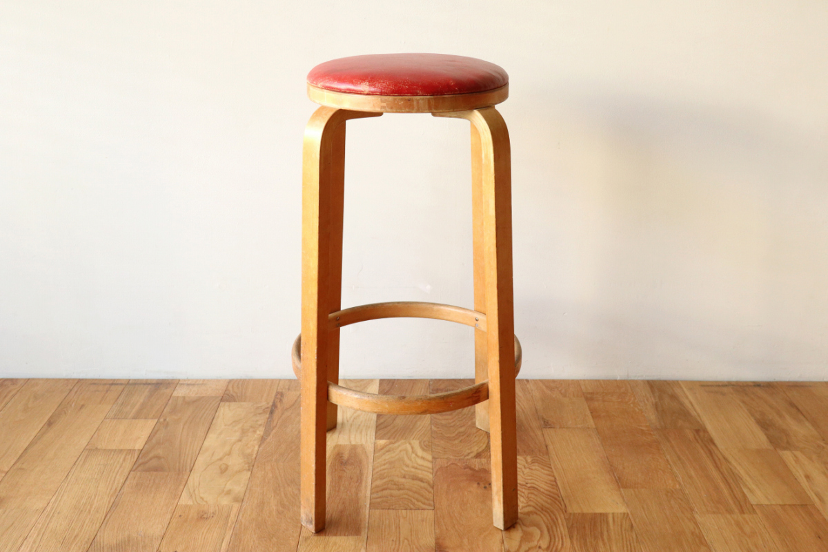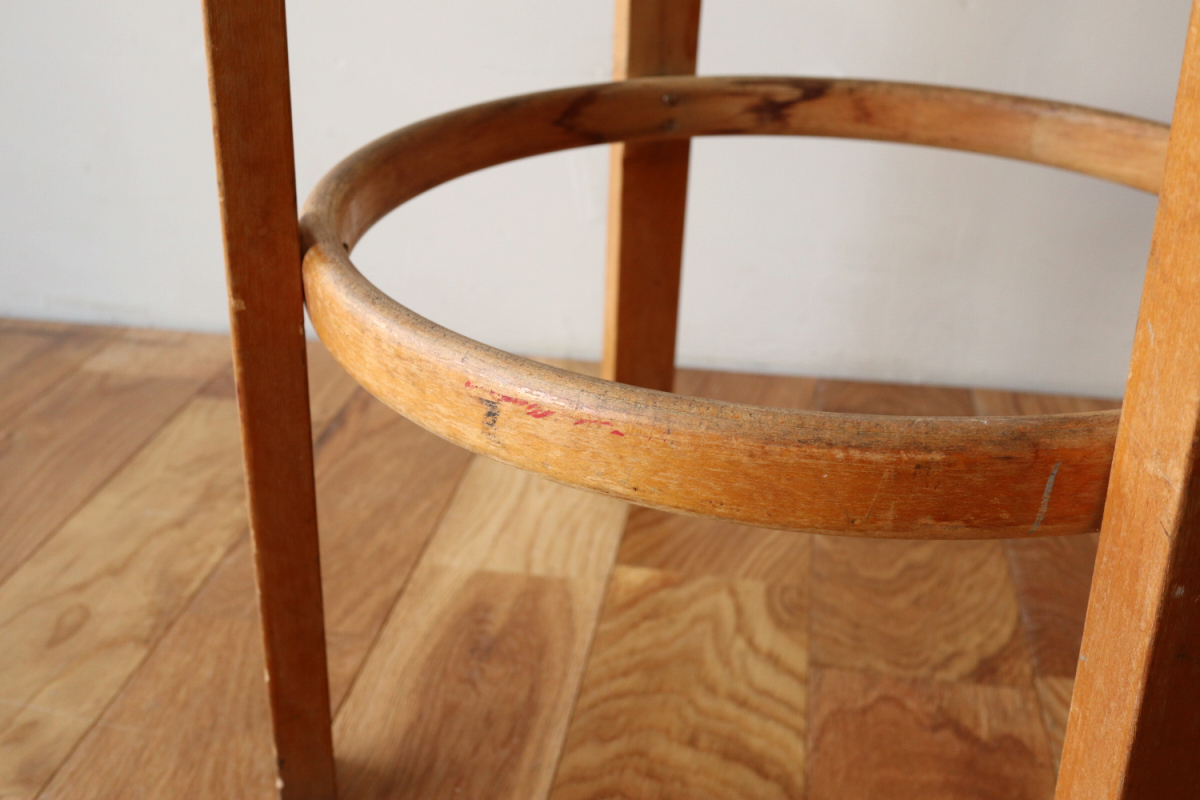 | 大変希少な30年代のBarStool64。当時のカタログ表記では64/86。 とにかく50年代以前のBarStoolは極端に個体数がすくなくめったに出てこないアイテムです。 中でも最初期の30年代物は別格で希少性は大変高いです。 こちらは当時のフェイクレザーが張られたモデルです。 塩ビのレザーが一般的ではなかった当時、布にニトロセルロースを塗布したものがフェイクレザーとして使われていました。 オリジナルのまま残ったこちらは大変希少です。 実用も可能ですが、このまま残すためにはコレクション的な扱いが良いかもしれません。張替も可能です。 |