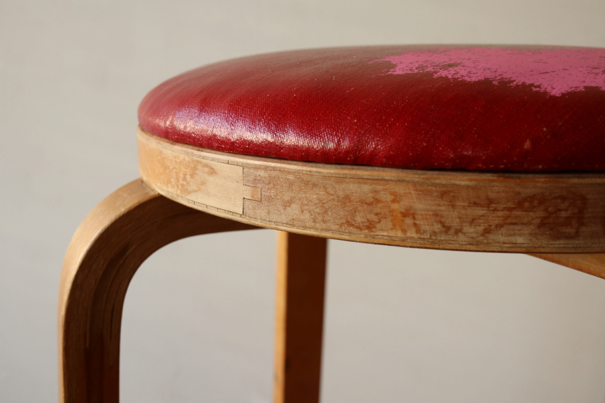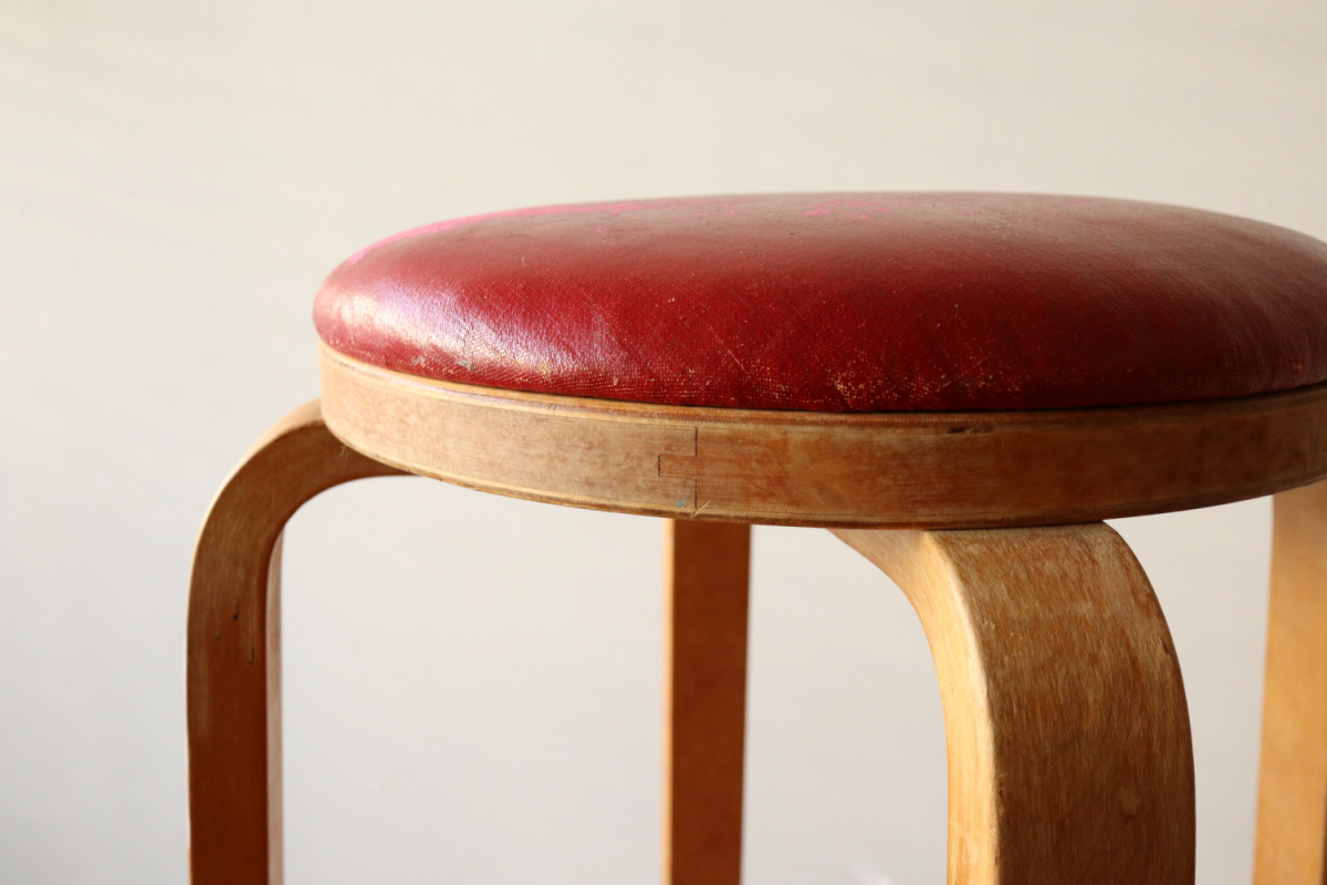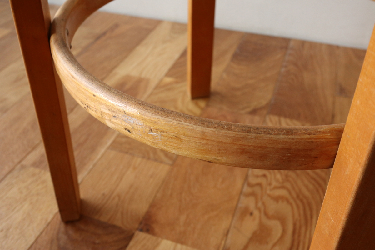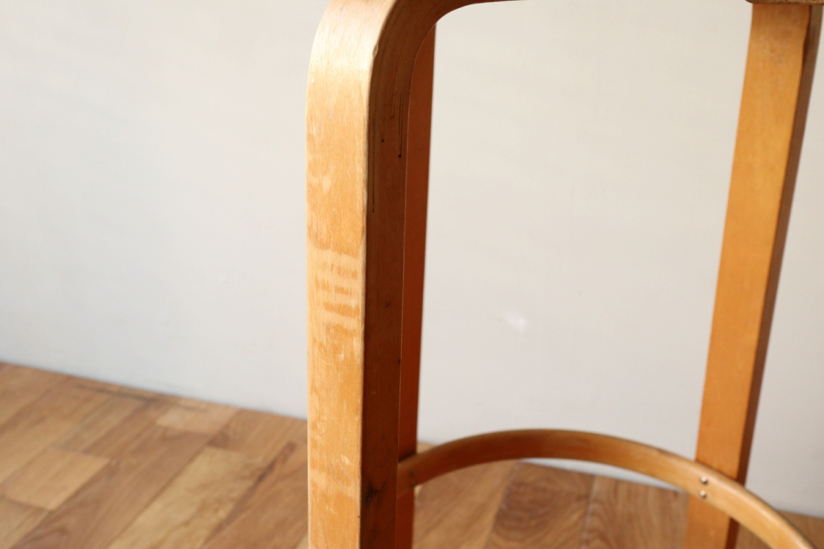 | 大変希少な30年代のBarStool64。当時のカタログ表記では64/86。 とにかく50年代以前のBarStoolは極端に個体数がすくなくめったに出てこないアイテムです。 中でも最初期の30年代物は別格で希少性は大変高いです。 こちらは当時のフェイクレザーが張られたモデルです。 塩ビのレザーが一般的ではなかった当時、布にニトロセルロースを塗布したものがフェイクレザーとして使われていました。 オリジナルのまま残ったこちらは大変希少です。 実用も可能ですが、このまま残すためにはコレクション的な扱いが良いかもしれません。張替も可能です。 |