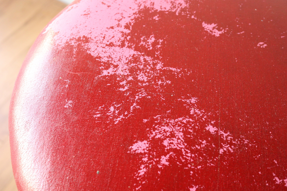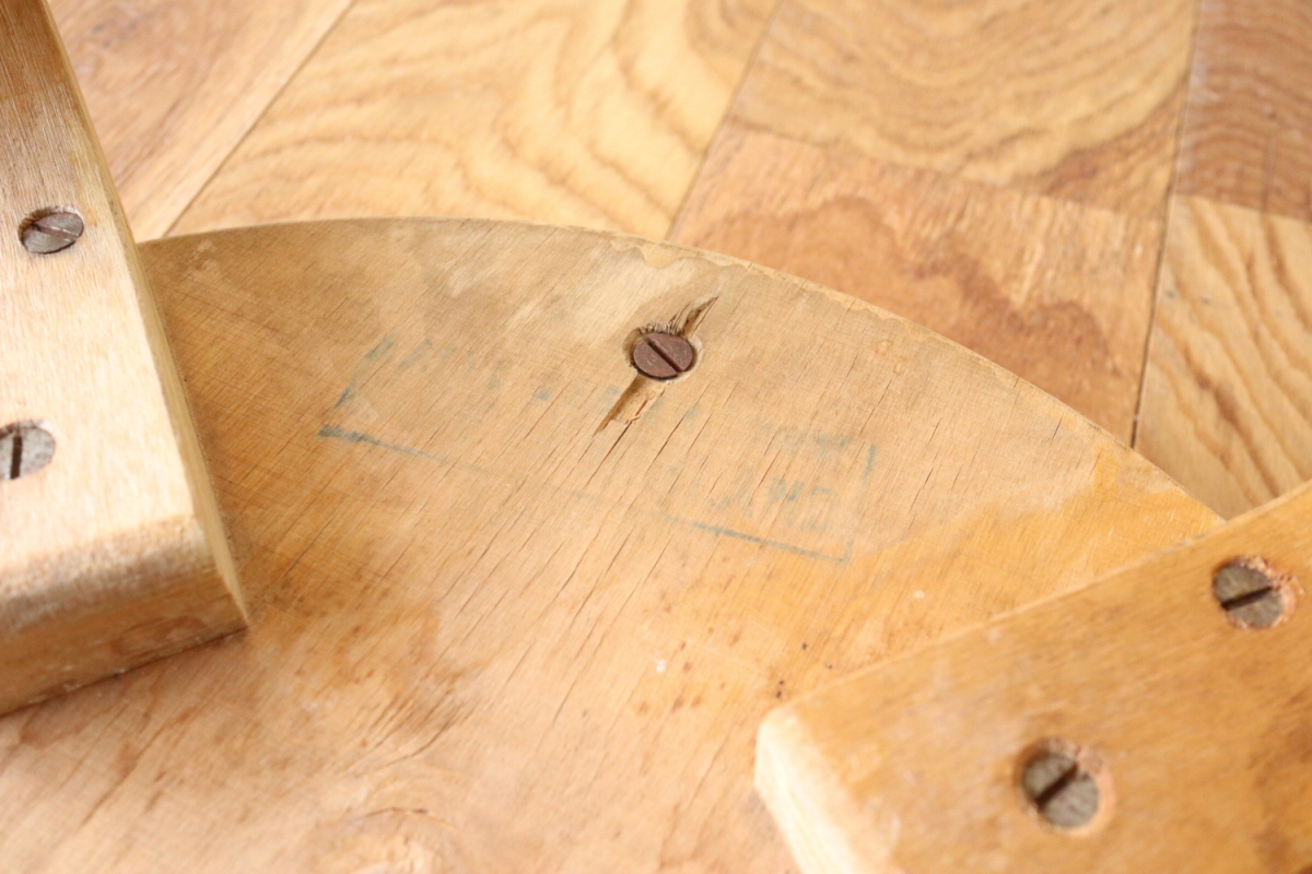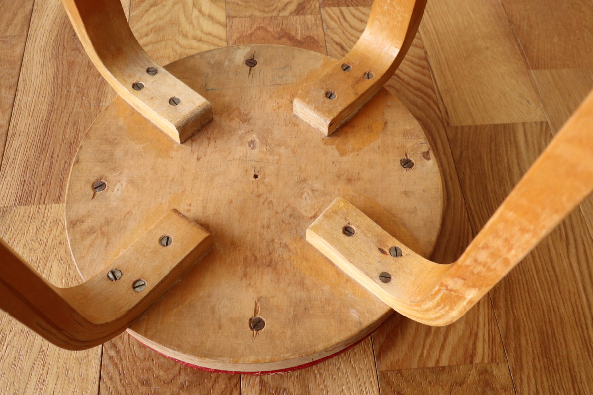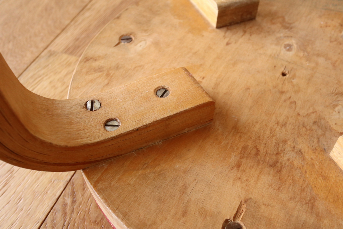 | 大変希少な30年代のBarStool64。当時のカタログ表記では64/86。 とにかく50年代以前のBarStoolは極端に個体数がすくなくめったに出てこないアイテムです。 中でも最初期の30年代物は別格で希少性は大変高いです。 こちらは当時のフェイクレザーが張られたモデルです。 塩ビのレザーが一般的ではなかった当時、布にニトロセルロースを塗布したものがフェイクレザーとして使われていました。 オリジナルのまま残ったこちらは大変希少です。 実用も可能ですが、このまま残すためにはコレクション的な扱いが良いかもしれません。張替も可能です。 |
