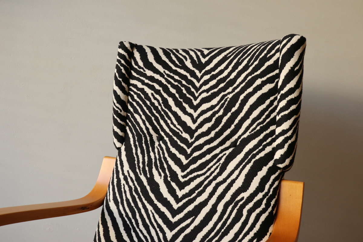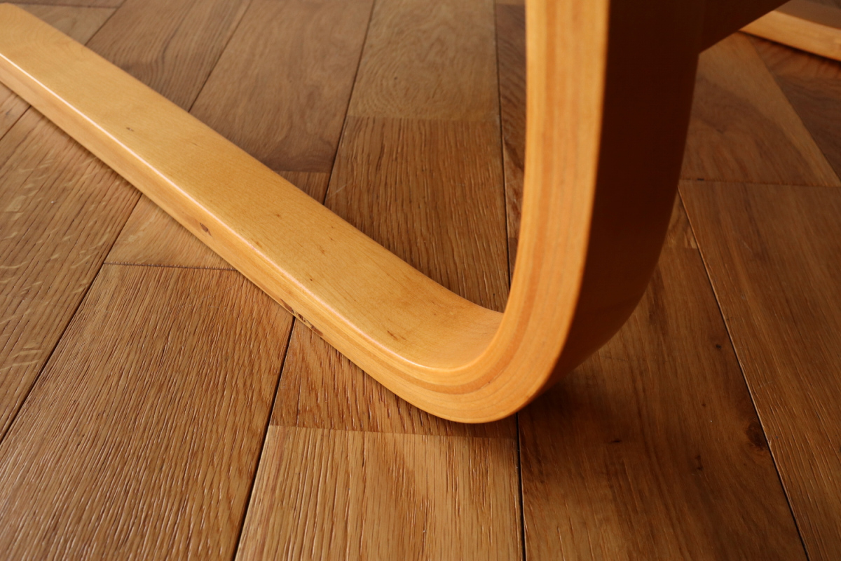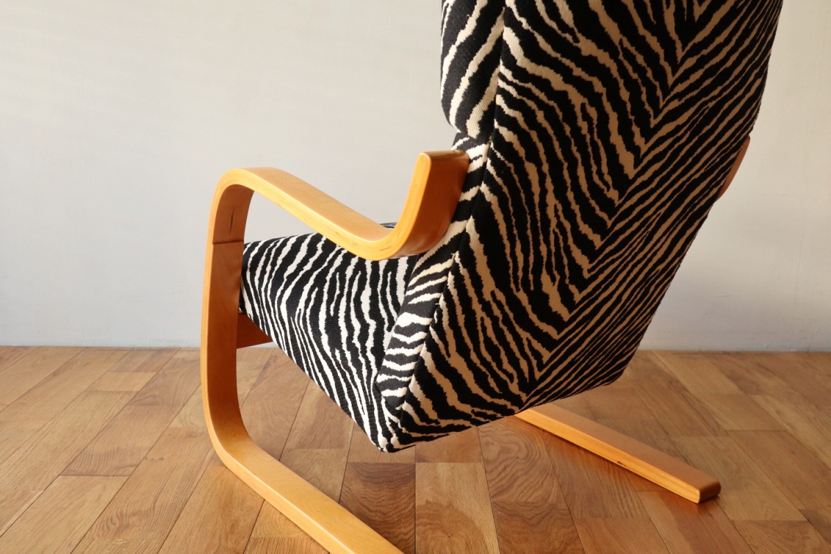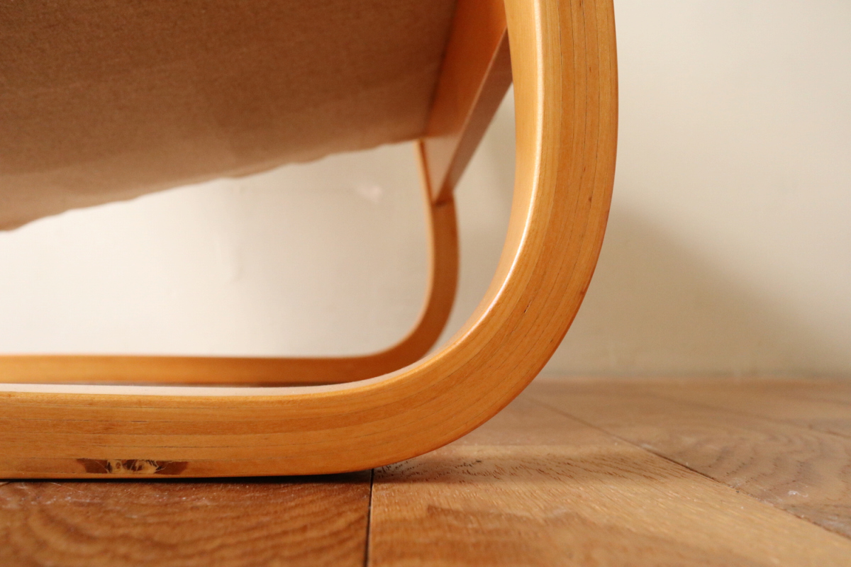 | アルテックのラウンジチェアの中でロングセラーの一つ、Arm Cahir 401です。 1933年にデザインされた最古参の一つで現在も生産が続くロングセラーアイテム。 現行品は座面の角度がかなり浅くなりリクライニングチェアというよりもリーディングチェアのような座り心地ですが グラビアなどでみる初期のものは深くのけぞるように座るデザインとなっています。 しかし残念ながらひずみが発生したりねじれたりするものが多いです。 こちらはそれらの歪みがほぼなく大変健康的なヴィンテージコンディションになります。 本来アアルトがデザインしたのはこんな椅子だったのかと実感できると思います。 ファブリックはアイノのゼブラ。フレームは塗装も含めてフルメンテナンスを行いました。 またこの年代はシートとフレームを金具で固定されておりますが その金具もあたらに製作いたしましたので将来的にも安心してお使いいただけます。 30-40年代のスタンプも残っており、実用できるコレクションとして大変おすすめの1台です。 |