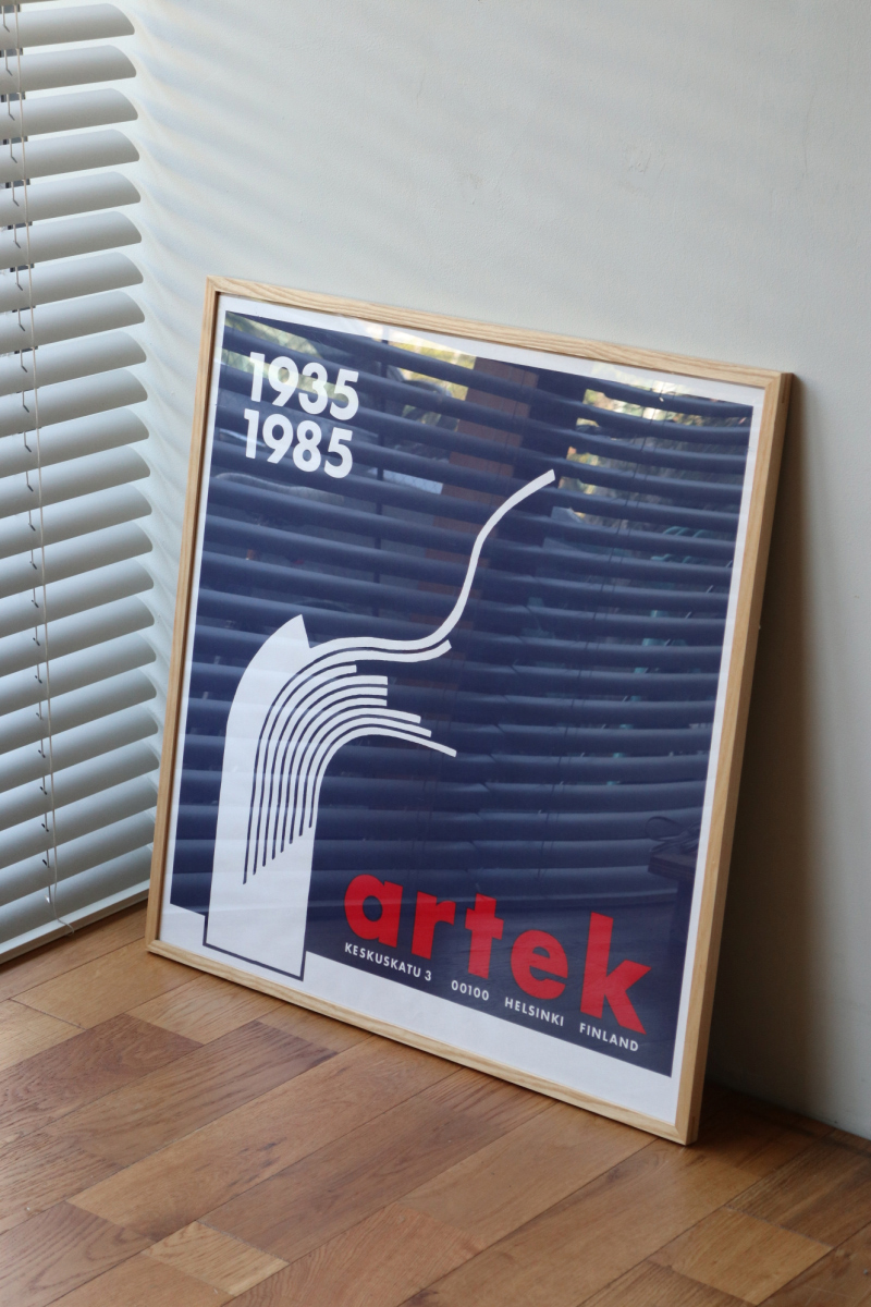 | 1985年、アルテック創立50周年を記念して制作された 40年以上の前の大変希少なヴィンテージポスターです。 アルヴァ・アアルトのデザイン思想を象徴するモチーフが用いられ、 単なる記念品ではなく、グラフィックとしての完成度の高さも評価されています。 朱色、青色、黒色、白色の4色が制作されましたが、 中でも朱色と青色はアルテックのブランドイメージとも親和性が高く、特に人気のあるカラーです。 現地でも流通量は限られており、入手が難しくなっています。 フレームを含めると約74cm角と程よいサイズ感で、一枚でも空間の印象をしっかりとつくります。 家具と同様に、空間のバランスを整える要素として取り入れたいアイテムです。 家具と同じ文脈で選べるグラフィックです。 |