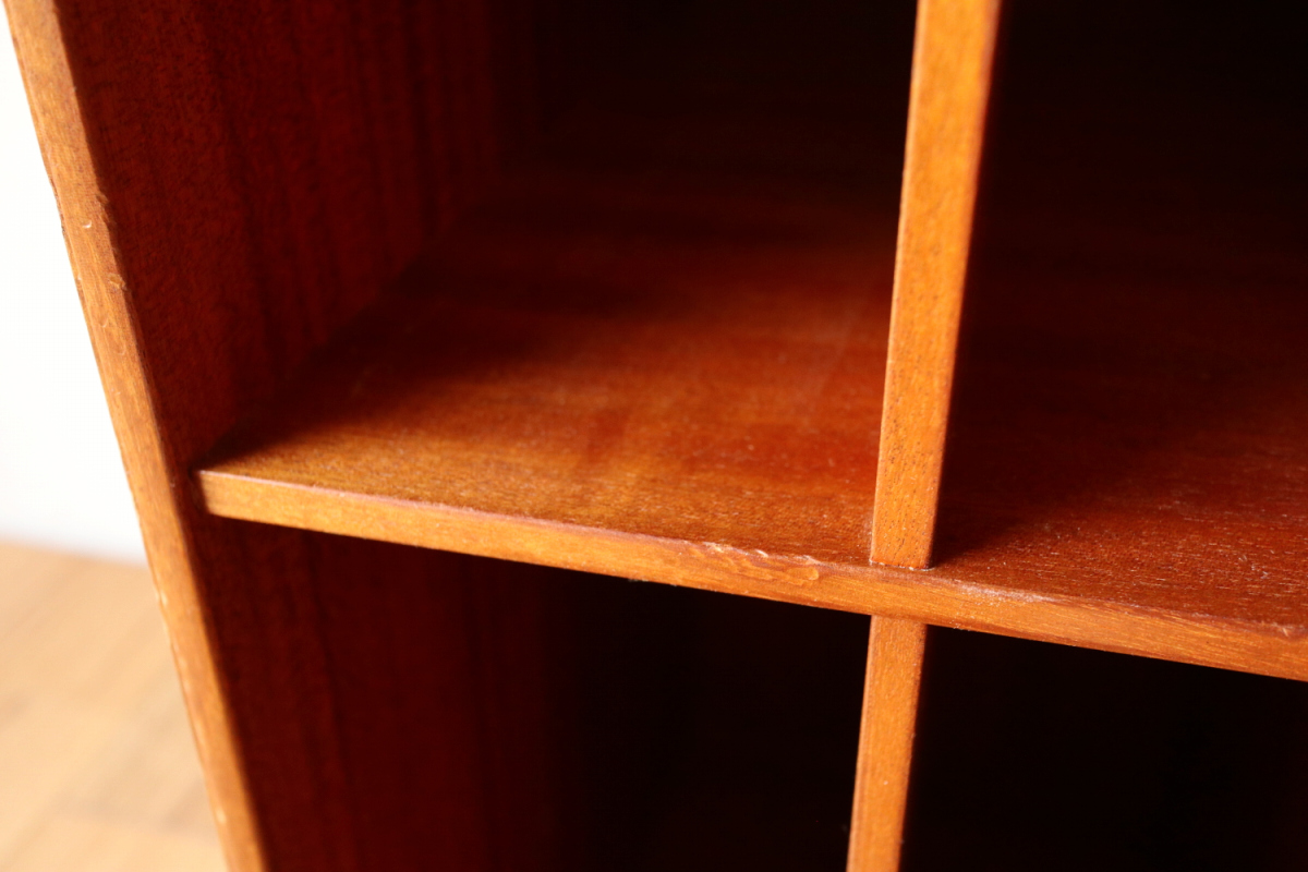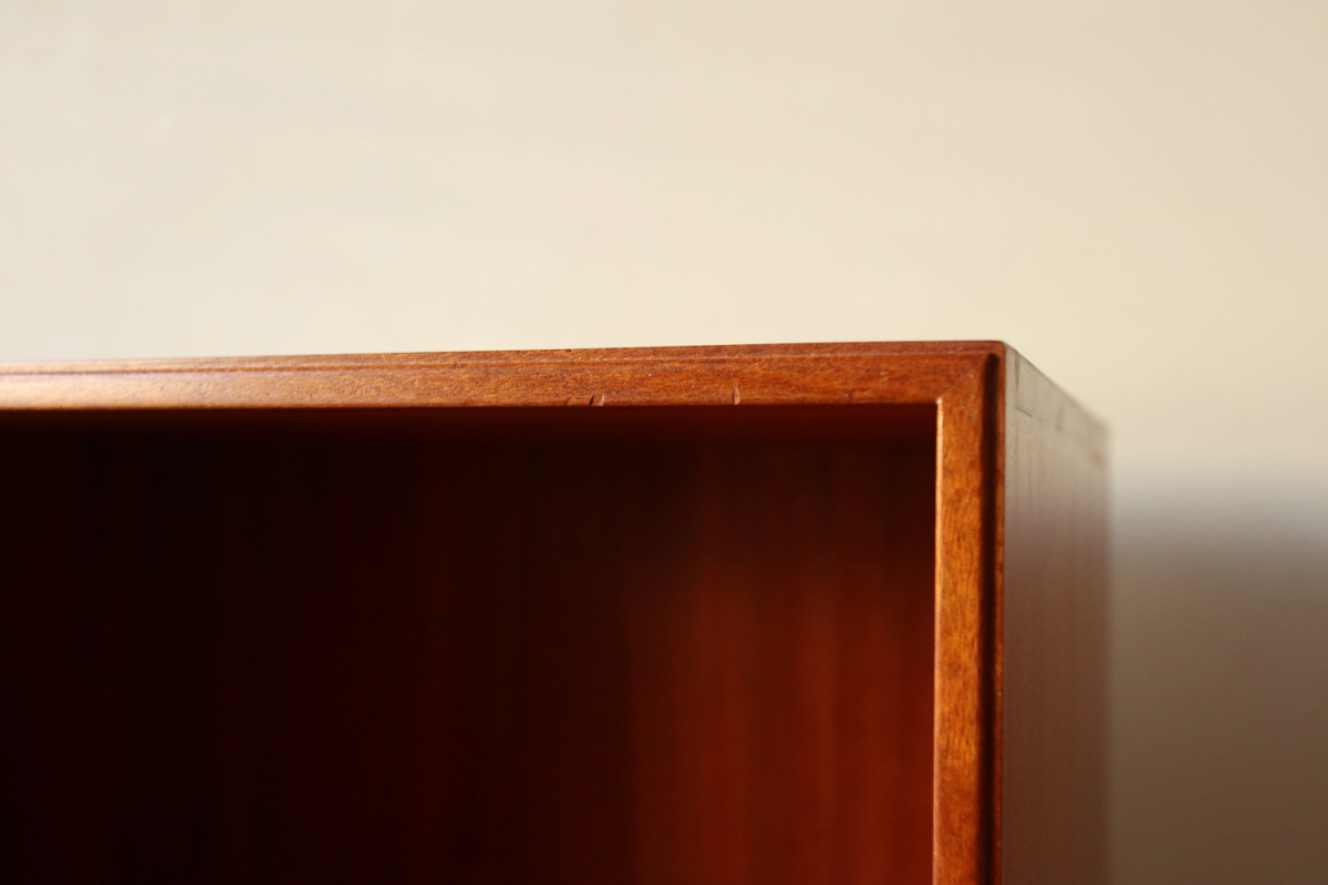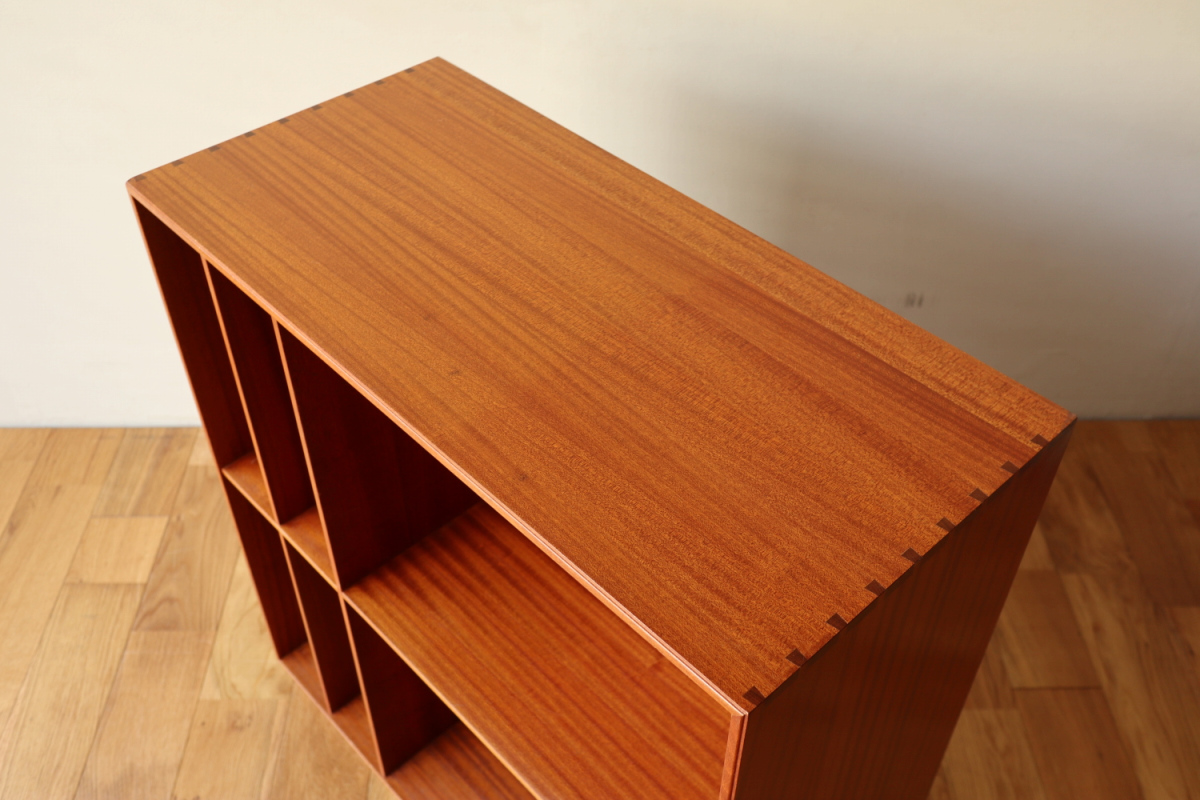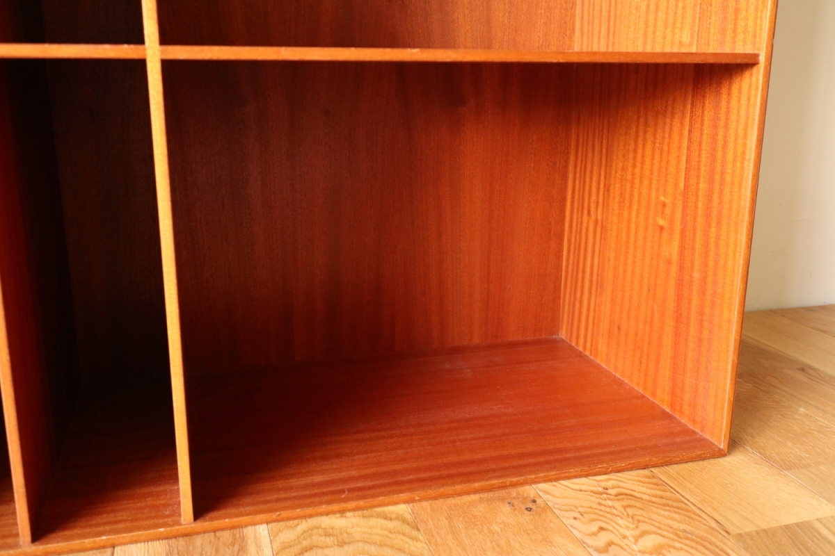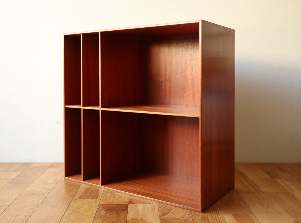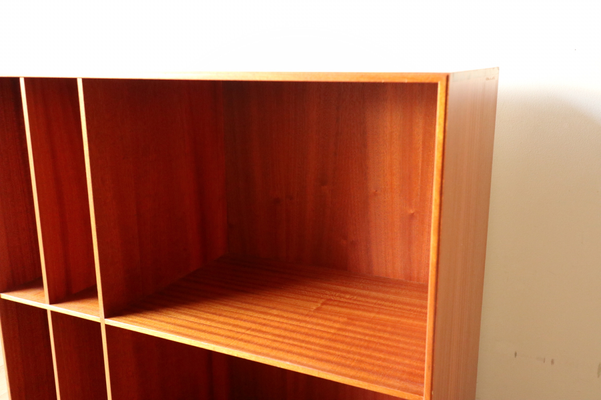 | 32年に販売が開始されたモーエンスコッホのストレージシステムより深型のブックケースです。 システム化された本棚で縦でも横でも使えますが、基本は写真の通り縦使用になると思います。 四方のフレームは無垢のマホガニーというヴィンテージならではの大変貴重なスペックです。 台輪があるタイプとないタイプがございます。ないものは床に直置きしたり キャビネットの上部に載せたりして使用します。 |