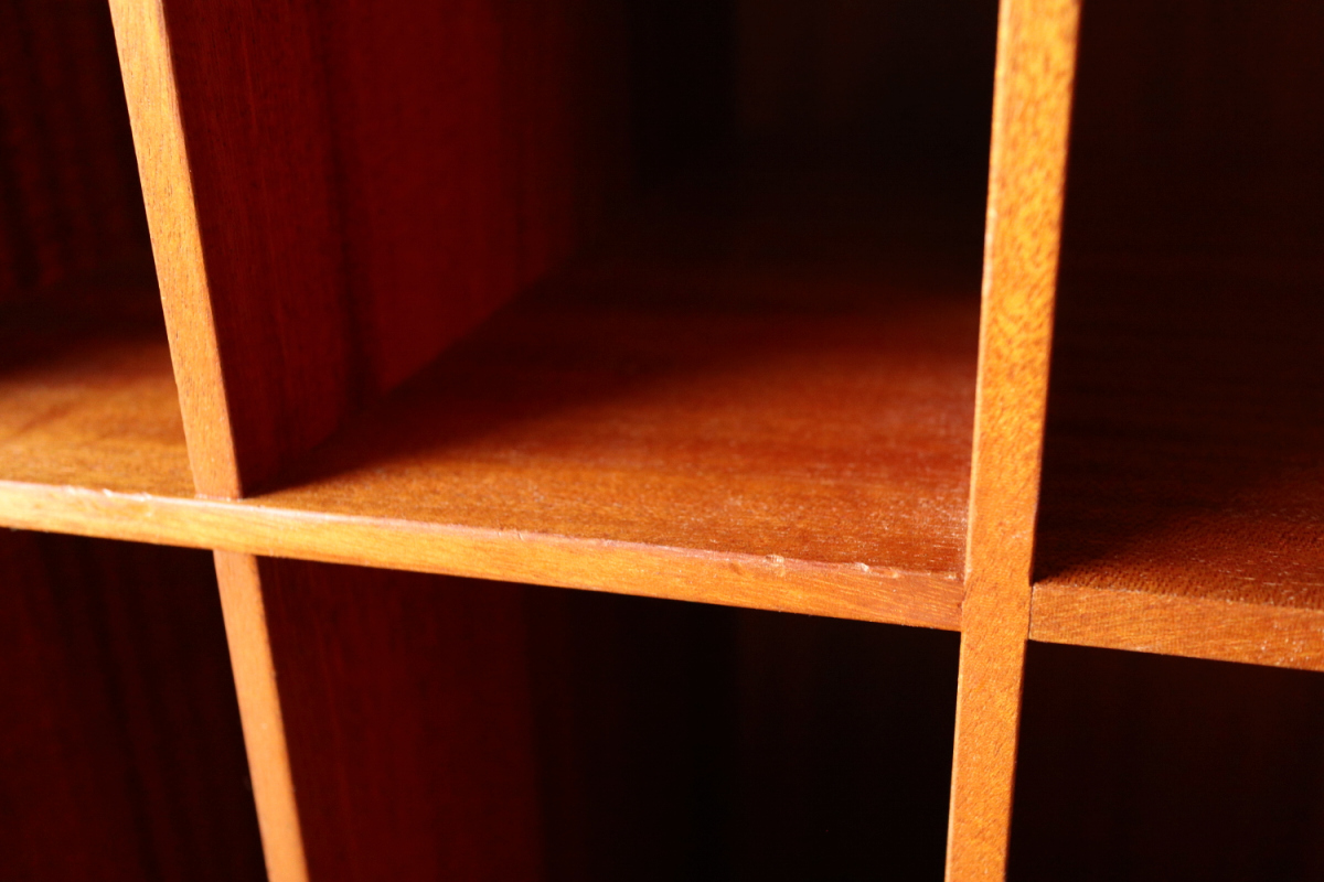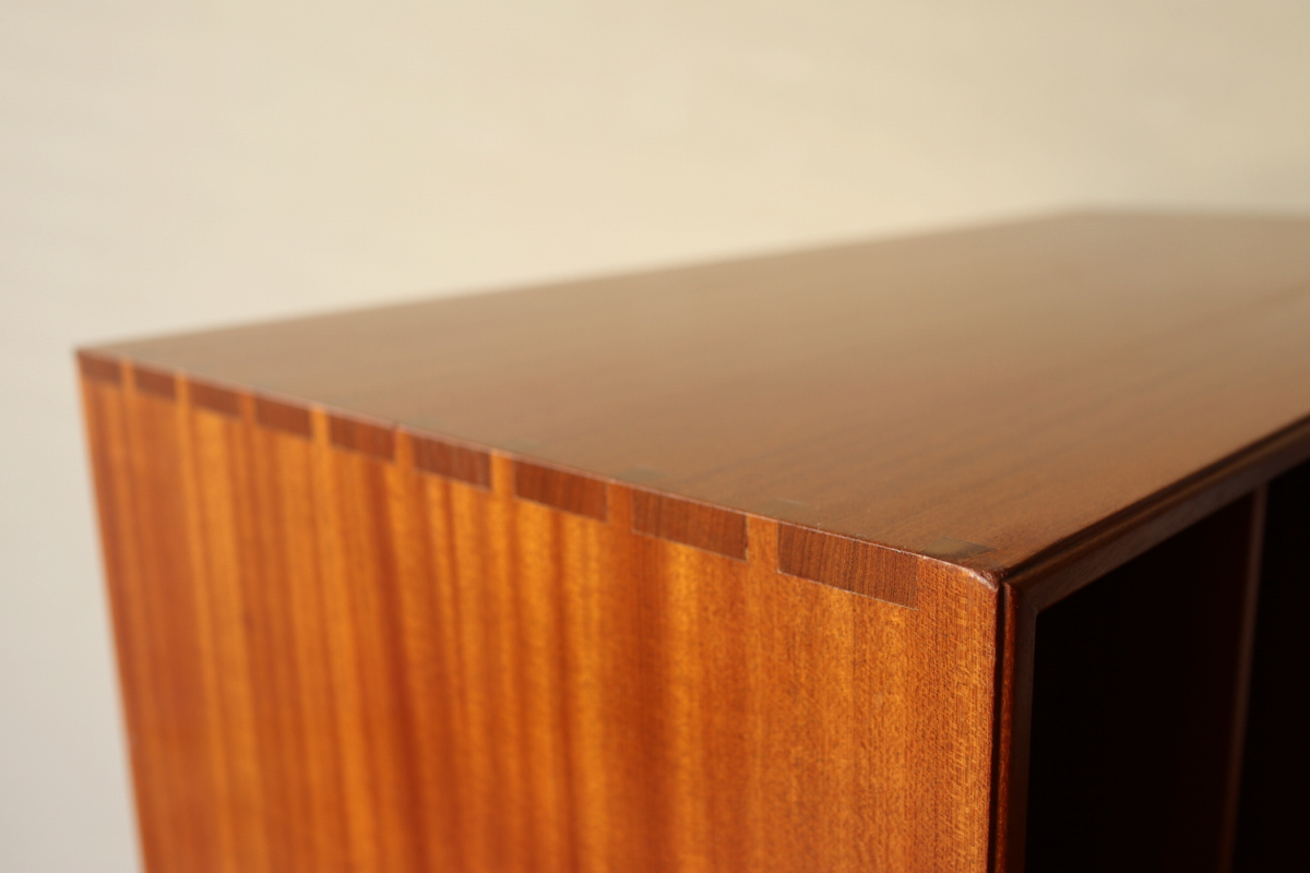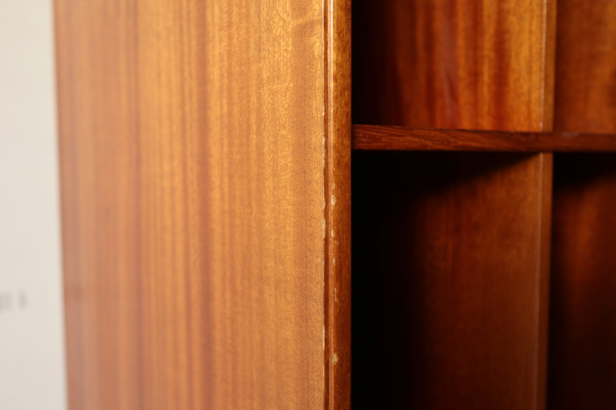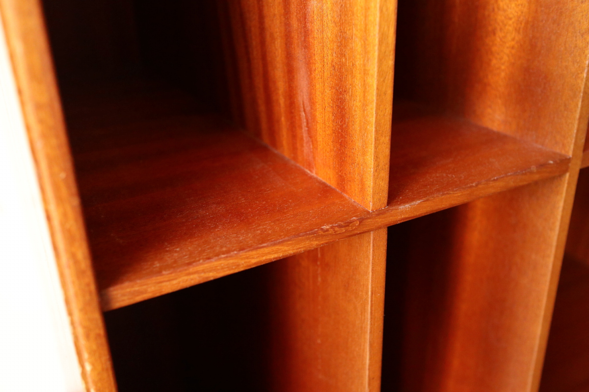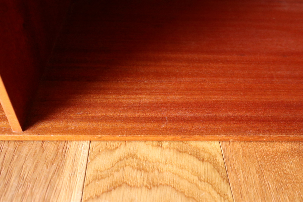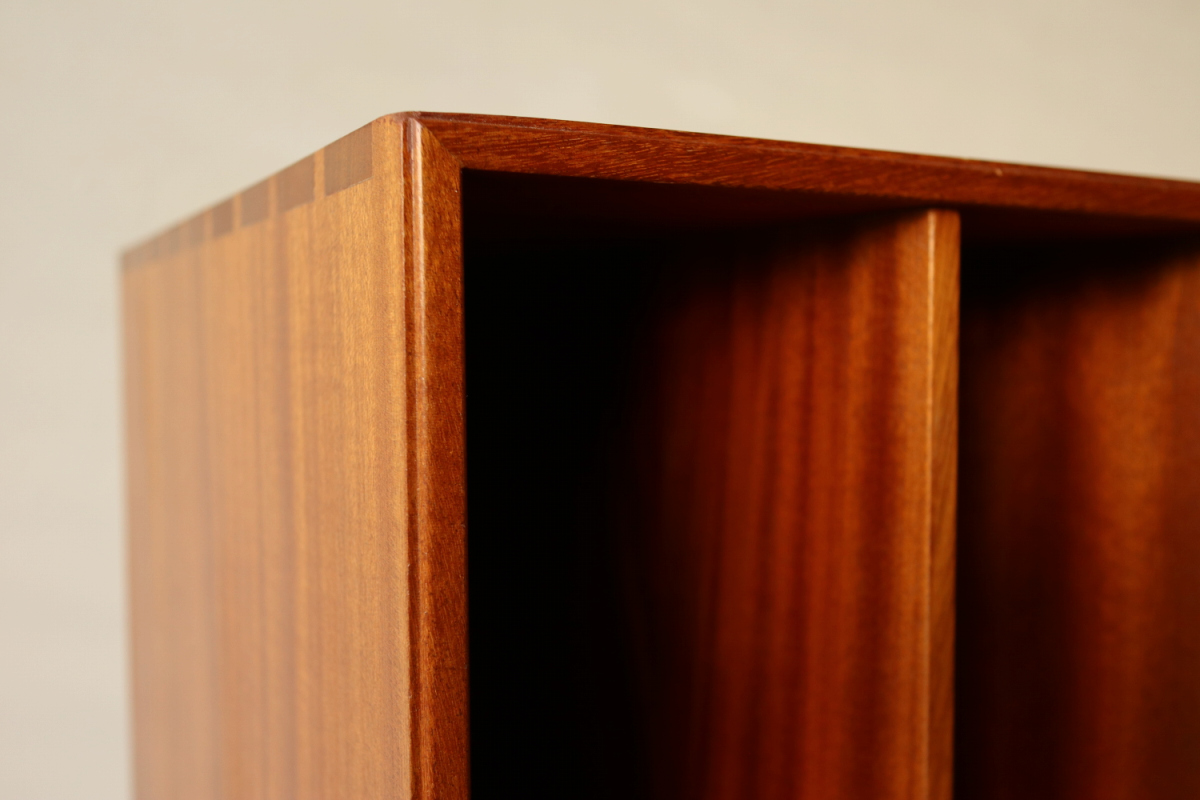 | 32年に販売が開始されたモーエンスコッホのストレージシステムより深型のブックケースです。 システム化された本棚で縦でも横でも使えますが、基本は写真の通り縦使用になると思います。 四方のフレームは無垢のマホガニーというヴィンテージならではの大変貴重なスペックです。 台輪があるタイプとないタイプがございます。ないものは床に直置きしたり キャビネットの上部に載せたりして使用します。 |