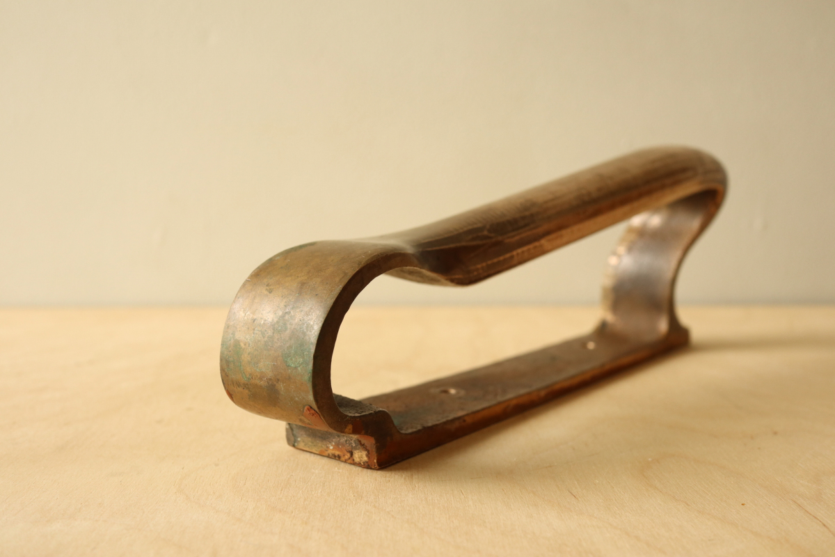 アアルトが設計した建築のためにのみ製作・設置された、極めて稀少なドアハンドルです。 一般流通することのなかった建築パーツでありその存在自体が「空間の一部」であることを前提に デザインされています。 本作は、数あるアアルトのハンドルの中でも最も広く知られ、評価の高いモデル。 手の動きに沿う有機的な曲線と、重量感のあるブロンズの質感が一体となり、単なる金物の域を 超えた彫刻的な存在感を備えています 特筆すべきは、その使われ方。 縦方向に2連・3連とリズミカルに配置される例や、上下どちらの向きでも成立する自由度の高い設計は、 建築家としてのアアルトの思考が色濃く反映されたもの。 市場に出る機会は極めて限られており、コンディションの良い個体は年々減少 単体のプロダクトとしてだけでなく、「建築の一部を所有する」という意味において、 コレクションピースとして成立する希少な存在です。 |