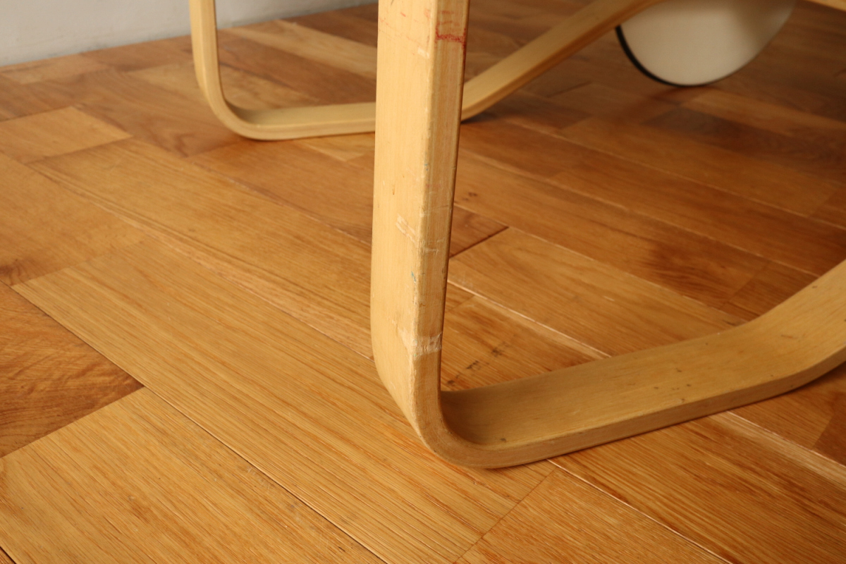 | アルヴァ・アアルトがデザインした名作 Tea Trolley 900。 その中でも、本品は1960年代製を示すオリジナルスタンプが明確に残る希少なヴィンテージ個体です。 ティートロリー900は、スツールやチェアに比べても当時のオリジナルが市場に出回る機会が非常に少なく、 とくにスタンプ付きの1960年代製となると、コレクターズピースとしての価値は年々高まっています。 タイル天板には、ヴィンテージならではの表面的なヘアラインクラックが見られますが、 構造的な割れはなく、使用に支障はありません。 長い年月を経た素材が生み出す表情として、オリジナルの魅力を損なわない範囲に収まっています。 籐製のバスケットは、張り・色艶ともに良好なコンディションを保っており、 実用はもちろん、空間のアクセントとしても美しい存在感を放ちます。 工業製品でありながら、木・籐・タイルという異素材を完璧なバランスでまとめ上げた一台。 現行品では決して再現できない、時代の空気を纏ったArtekの本質を感じていただけるティートロリーです。 |