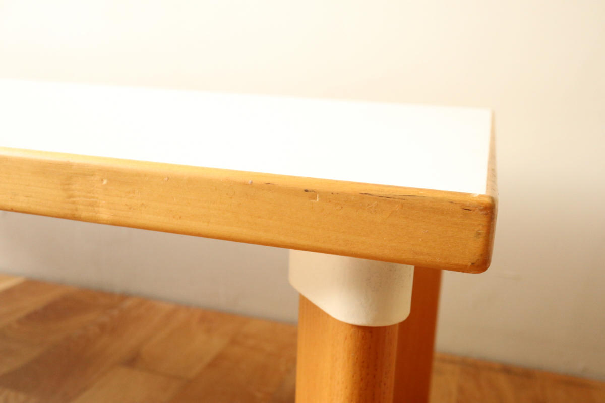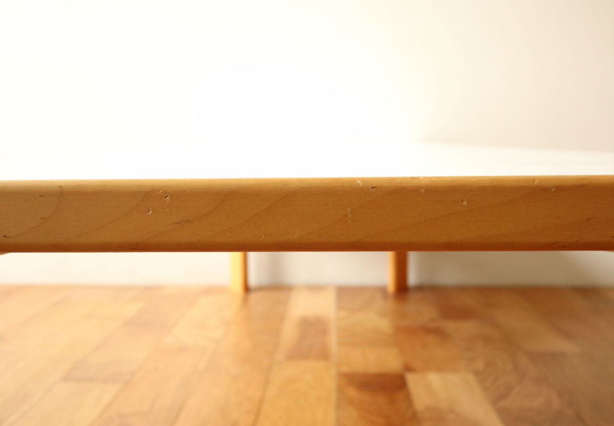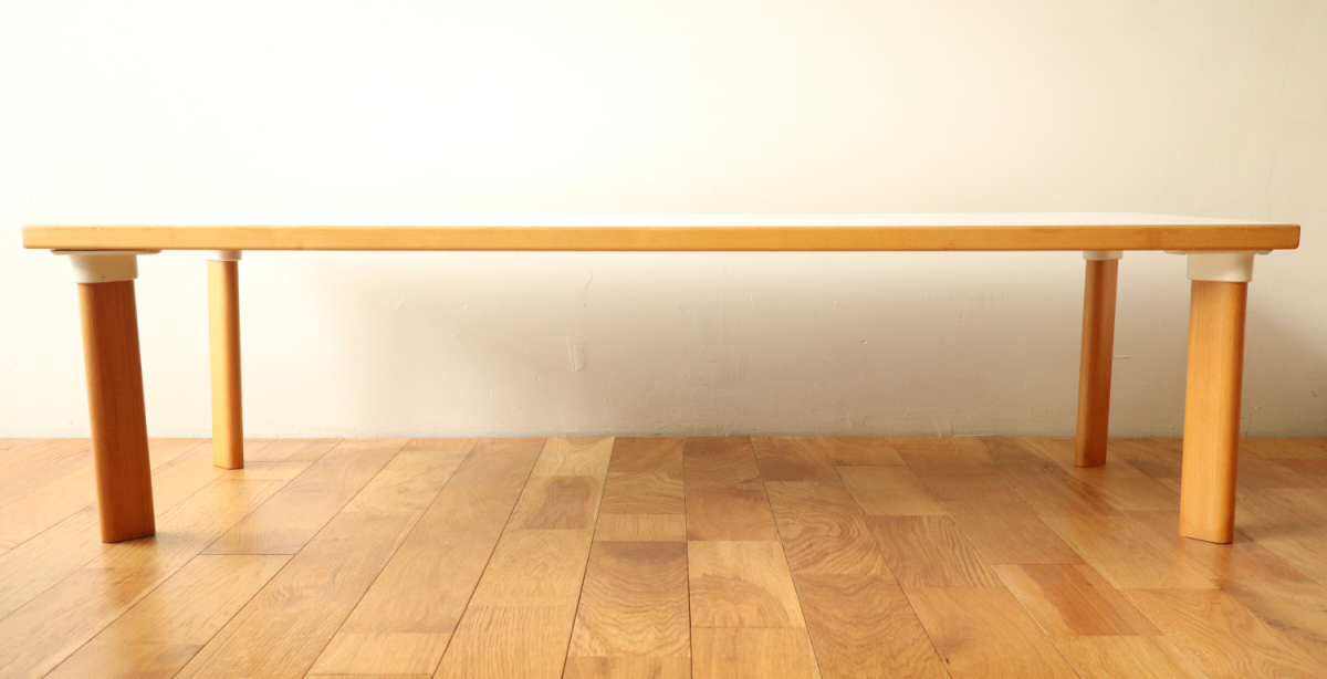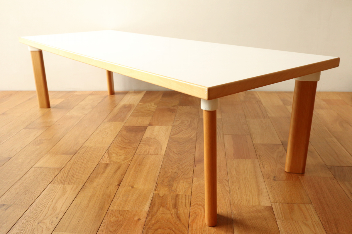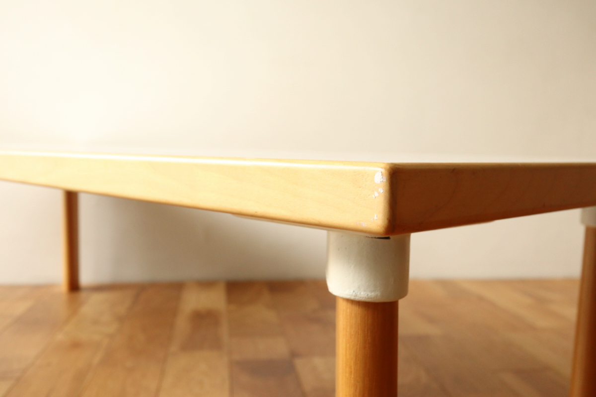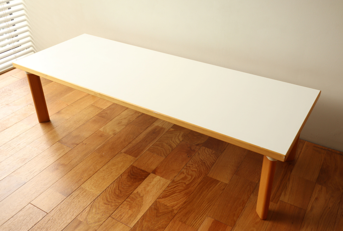 | 90年代くらいのイレギュラーサイズのソファテーブルです。 オプションのHL-1レッグでしかもアッシュです。 そこそこのサイズがありますが、天板の厚みが薄くシャープな印象に仕上がっております。 ラミネートトップのためお手入れも簡単で使い勝手が良いです。 |