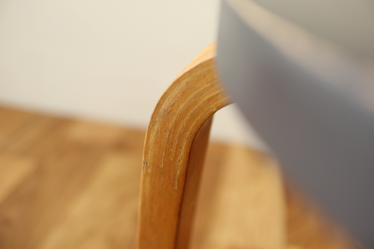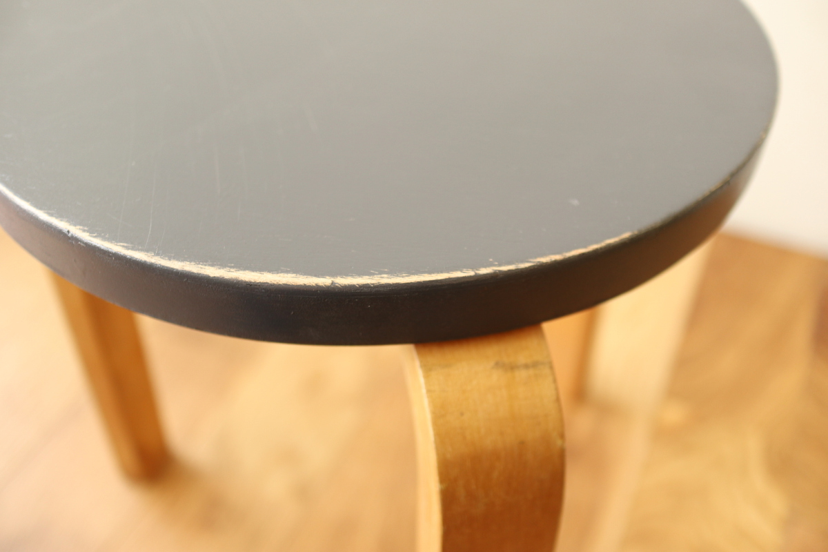 | Finmarラベルが残っている30年代初期のStool60です。 30年代初期、イギリスでFinmarが販売していたころの大変貴重なヴィンテージ品。 アアルト作品の高騰が続いているなか、Finmar物はいっそうプレミアが付きヴィンテージ価値が上がっております。 大抵はフィンランドではなくイギリスで見つかることが多いので買い付けもなかなか難しいアイテムです。 ガタツキはなくもちろんスツールとして実用可能です。 |