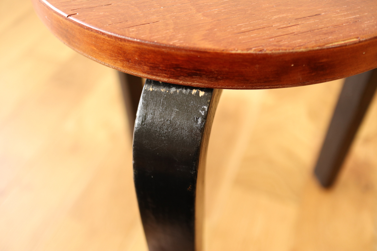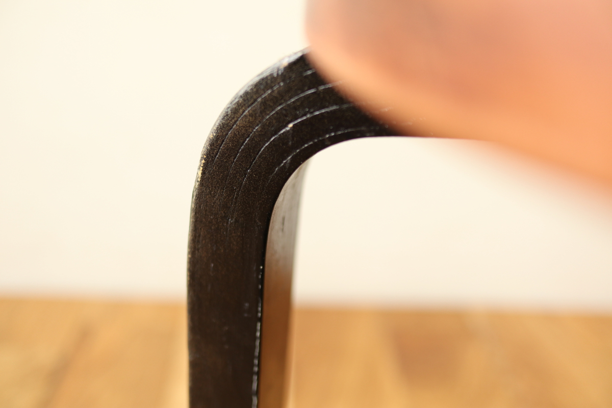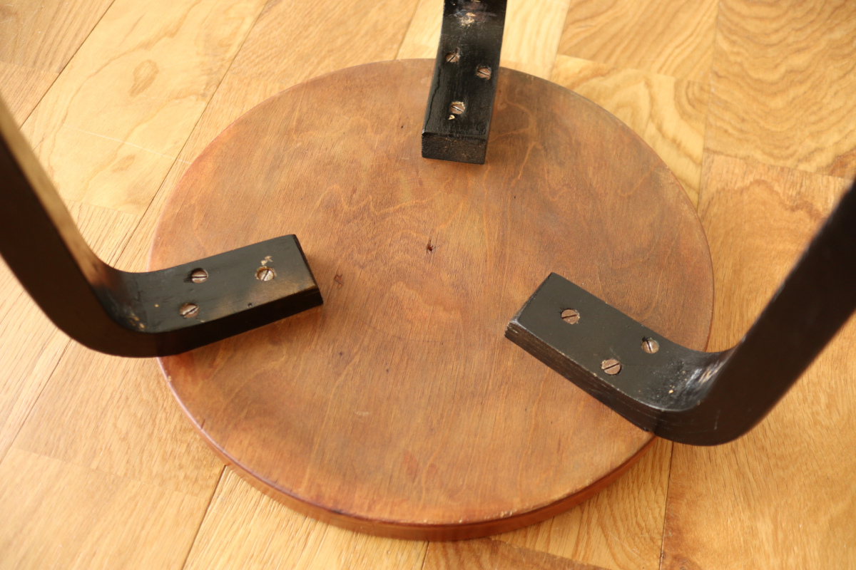| 50-60年代の一脚です。 トップはシースルーのブラウン、脚はブラック。 4枚レイヤーでフィンガージョイントは3か所。 デンマーク系のインテリアにもフィットするカラーリングだと思います。 |