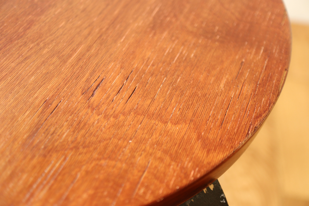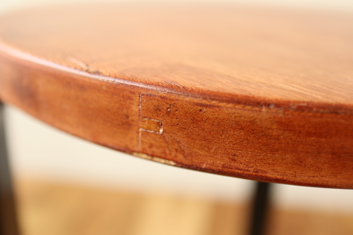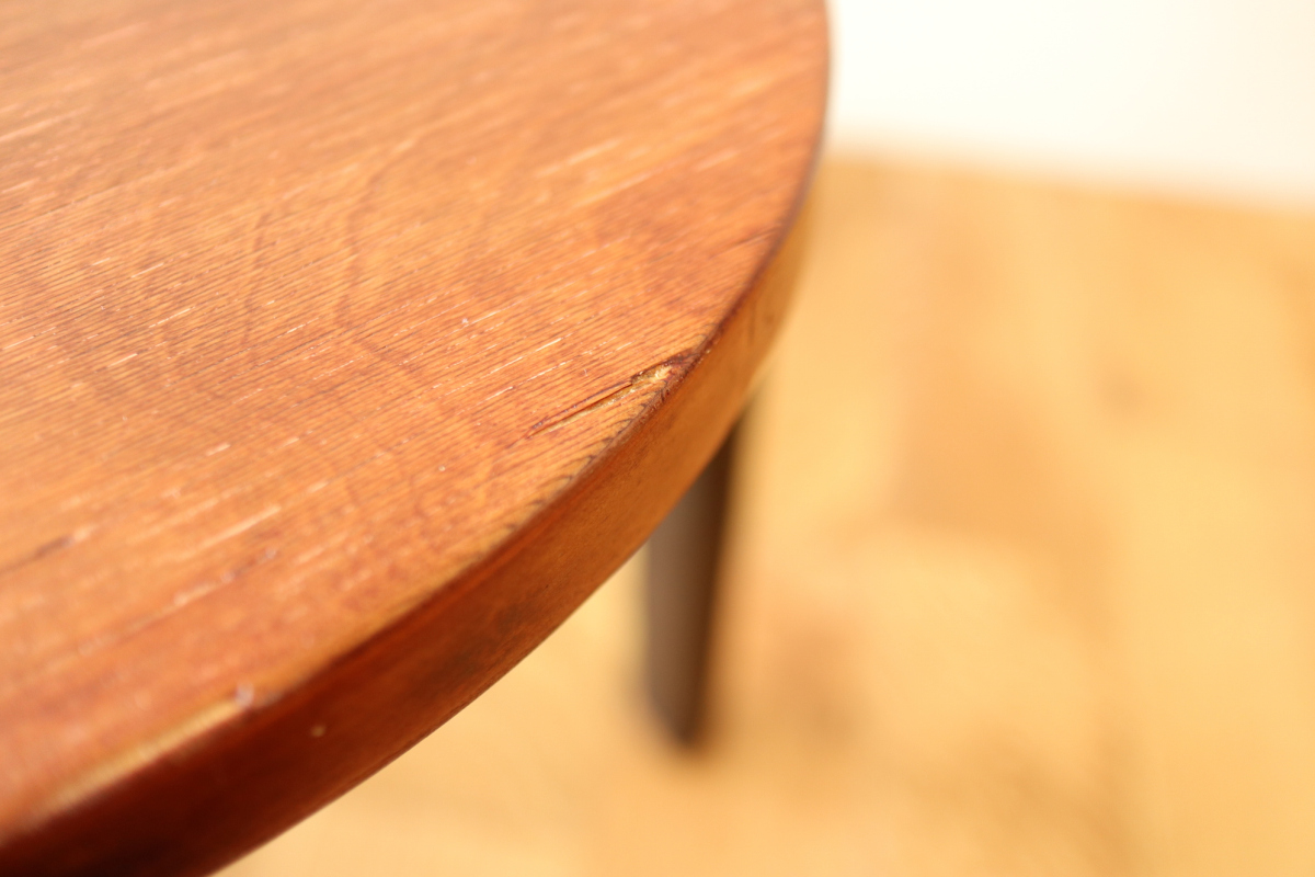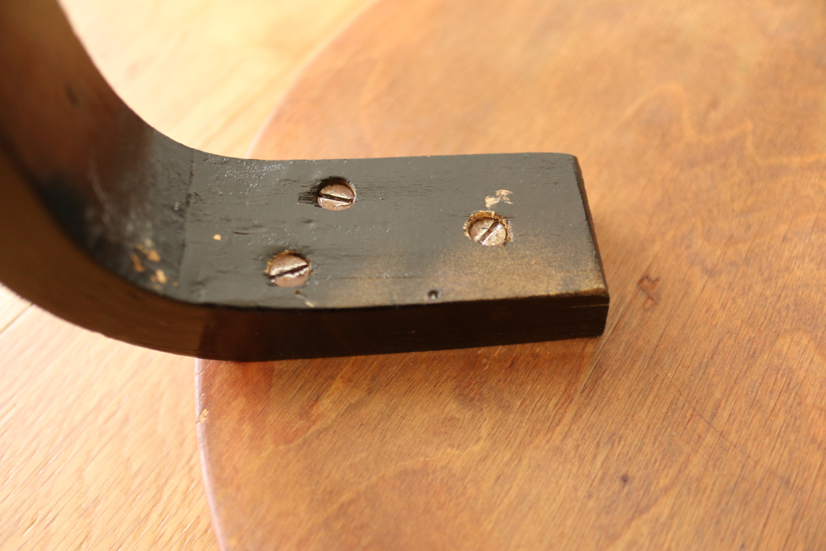 | 50-60年代の一脚です。 トップはシースルーのブラウン、脚はブラック。 4枚レイヤーでフィンガージョイントは3か所。 デンマーク系のインテリアにもフィットするカラーリングだと思います。 |