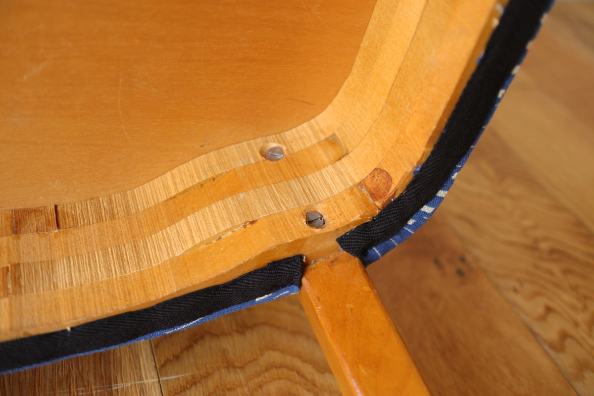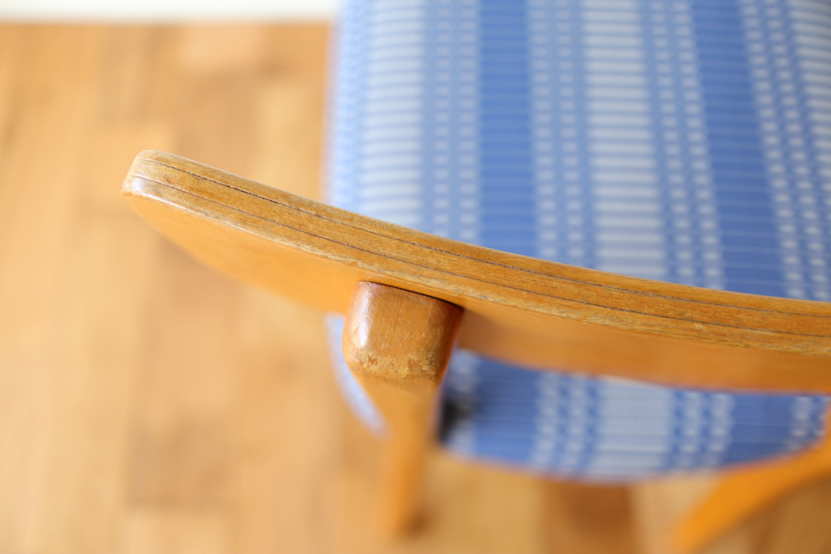 | 30-40年代ごろのアイノアアルトのクラブチェアです。 こちらはファブリックシートに木の背板ですが、ファブリック/ファブリックや板/板など いろんなバリエーションが確認されております。 背もたれが板のタイプは珍しくラインがはっきりと出ますので 全体的にスマートな印象になっております。 座面は当店にてグリクセンのファブリックで張り替えましたので気持ちよくお使いいただけると思います。 後ろ足が座面で途切れることなく上部まで続いているのがポイントです。 |