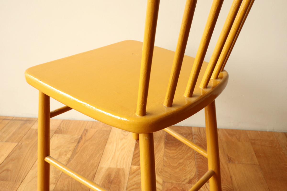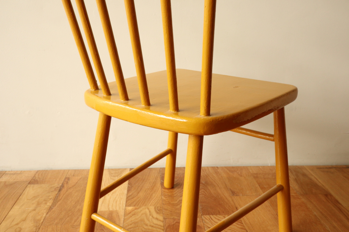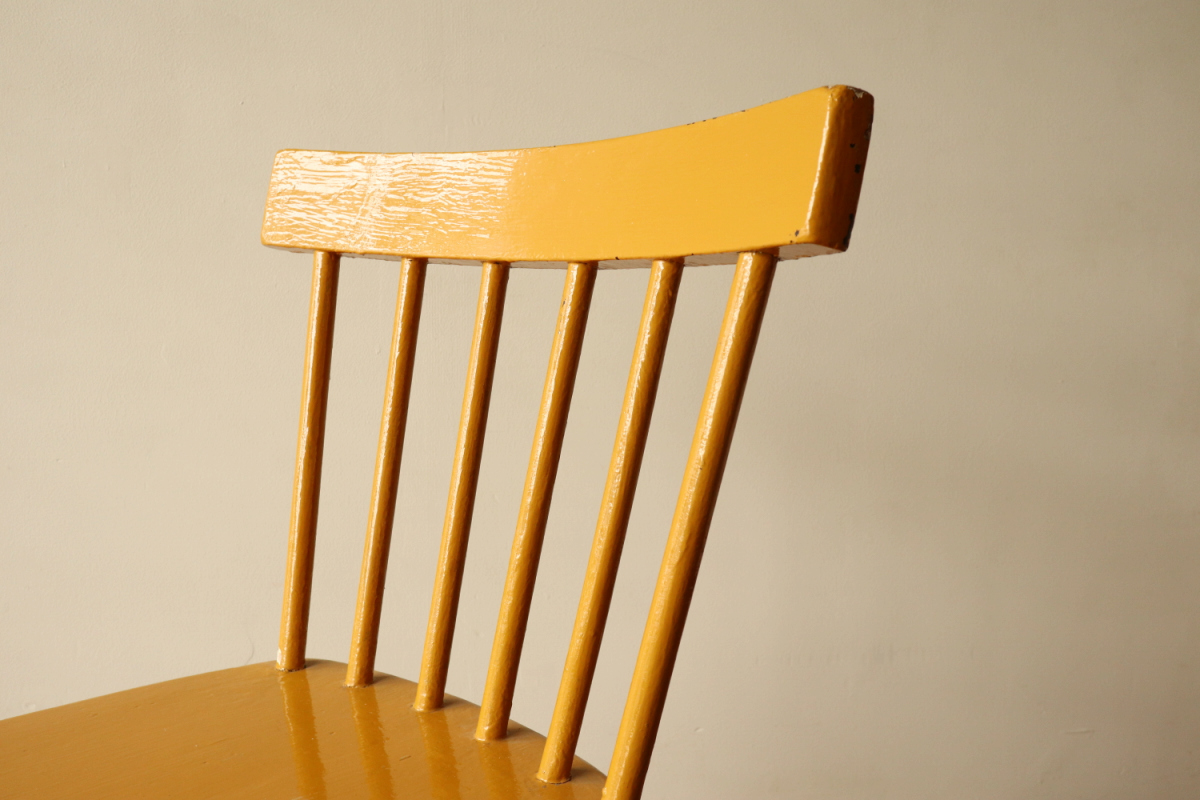 | 1940年代頃に製作された、Aino Aaltoデザインの希少モデル Chair 641。 円柱パーツをデザインソースにした構成は、装飾を排したミニマルさの中に、 計算し尽くされた美しいバランスを感じさせます。 Aino Aaltoの作品は、Alvar Aaltoとは別の文脈で評価される存在。 生産数が少なく、市場に出回る機会も限られているため、 特に良好なコンディションで残る個体は年々入手が難しくなっています。 リペイントの落ち着いたマスタードイエローは、空間に静かな個性と温かみを添える色。 「知る人ぞ知る」一脚を探している方にこそ、手に取っていただきたい椅子です。 |