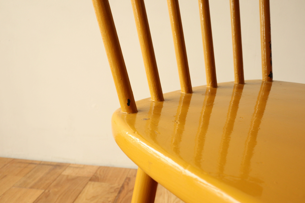 | 1940年代頃に製作された、Aino Aaltoデザインの希少モデル Chair 641。 円柱パーツをデザインソースにした構成は、装飾を排したミニマルさの中に、 計算し尽くされた美しいバランスを感じさせます。 Aino Aaltoの作品は、Alvar Aaltoとは別の文脈で評価される存在。 生産数が少なく、市場に出回る機会も限られているため、 特に良好なコンディションで残る個体は年々入手が難しくなっています。 リペイントの落ち着いたマスタードイエローは、空間に静かな個性と温かみを添える色。 「知る人ぞ知る」一脚を探している方にこそ、手に取っていただきたい椅子です。 |