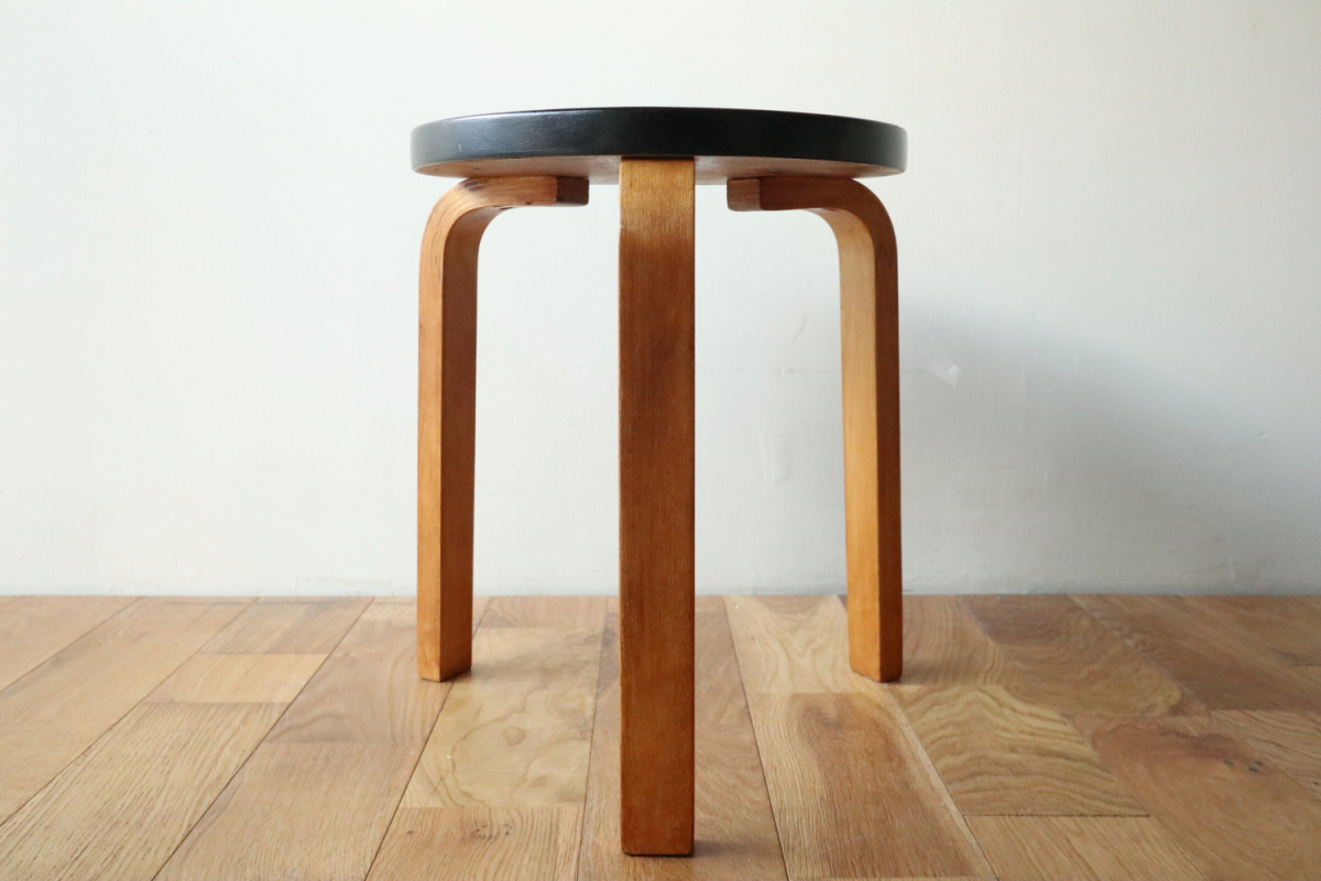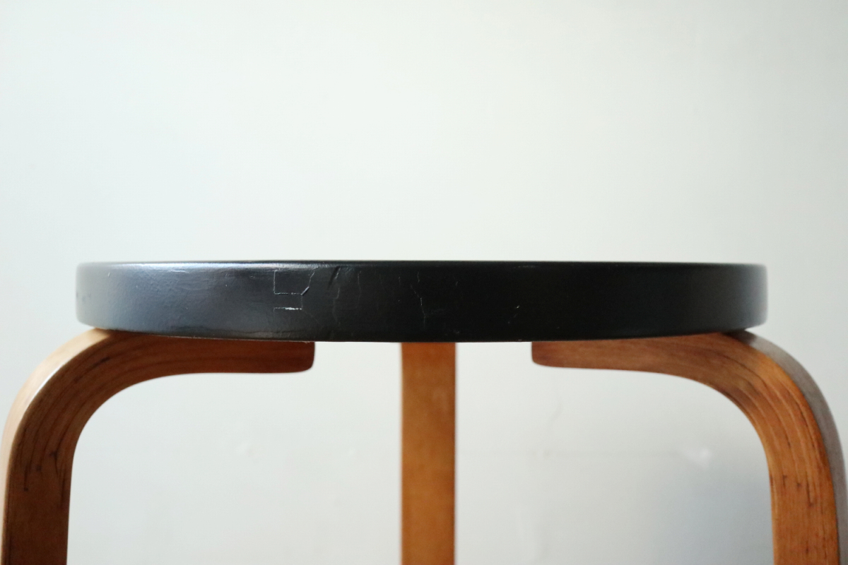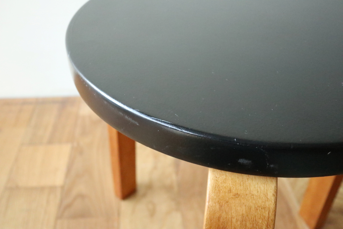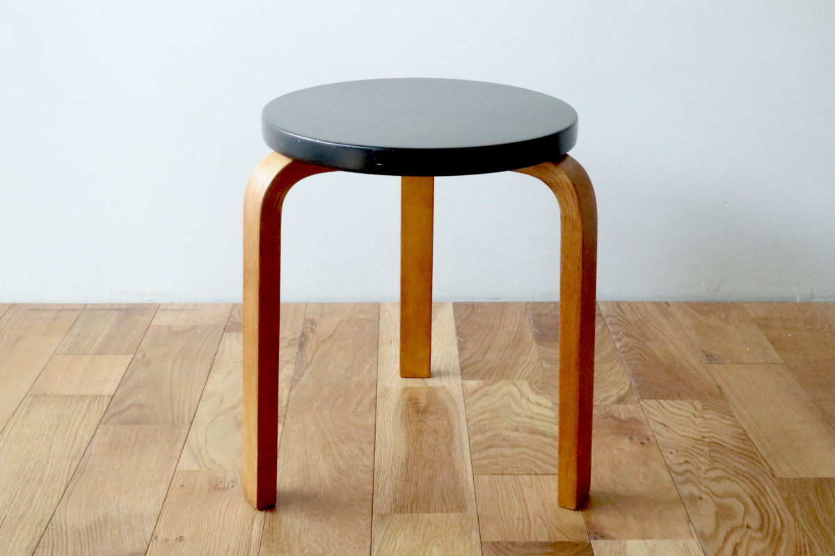 | これぞ30年代というルックスと雰囲気ののStool60です。 脚の部分はイエローバーチ呼ばれる。小麦色にやけた木肌、薄く痩せて木肌になじんだ塗装 ところどころにある傷と汚れ、どれをとっても数十年かけた経年変化によるエイジングです。 座面は黒で塗装されておりますが、質感といい、艶の具合といい、ヴィンテージの雰囲気があります。 Finmarラベルも綺麗に残っており、今後ますます入手が難しくなると思います。 |