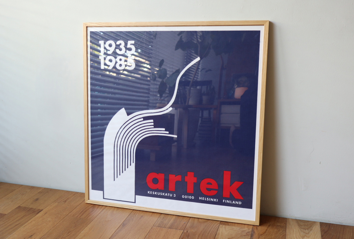 | 1985年、アルテック創立50周年を記念して制作された 40年以上の前の大変希少なヴィンテージポスターです。 アルヴァ・アアルトのデザイン思想を象徴するモチーフが用いられ、 単なる記念品ではなく、グラフィックとしての完成度の高さも評価されています。 朱色、青色、黒色、白色の4色が制作されましたが、 中でも朱色と青色はアルテックのブランドイメージとも親和性が高く、特に人気のあるカラーです。 現地でも流通量は限られており、入手が難しくなっています。 フレームを含めると約74cm角と程よいサイズ感で、一枚でも空間の印象をしっかりとつくります。 家具と同様に、空間のバランスを整える要素として取り入れたいアイテムです。 家具と同じ文脈で選べるグラフィックです。 |
