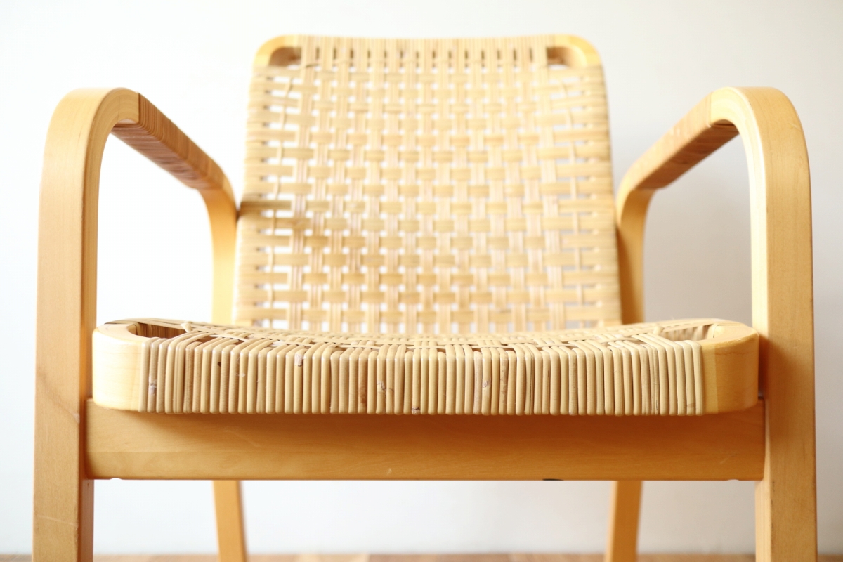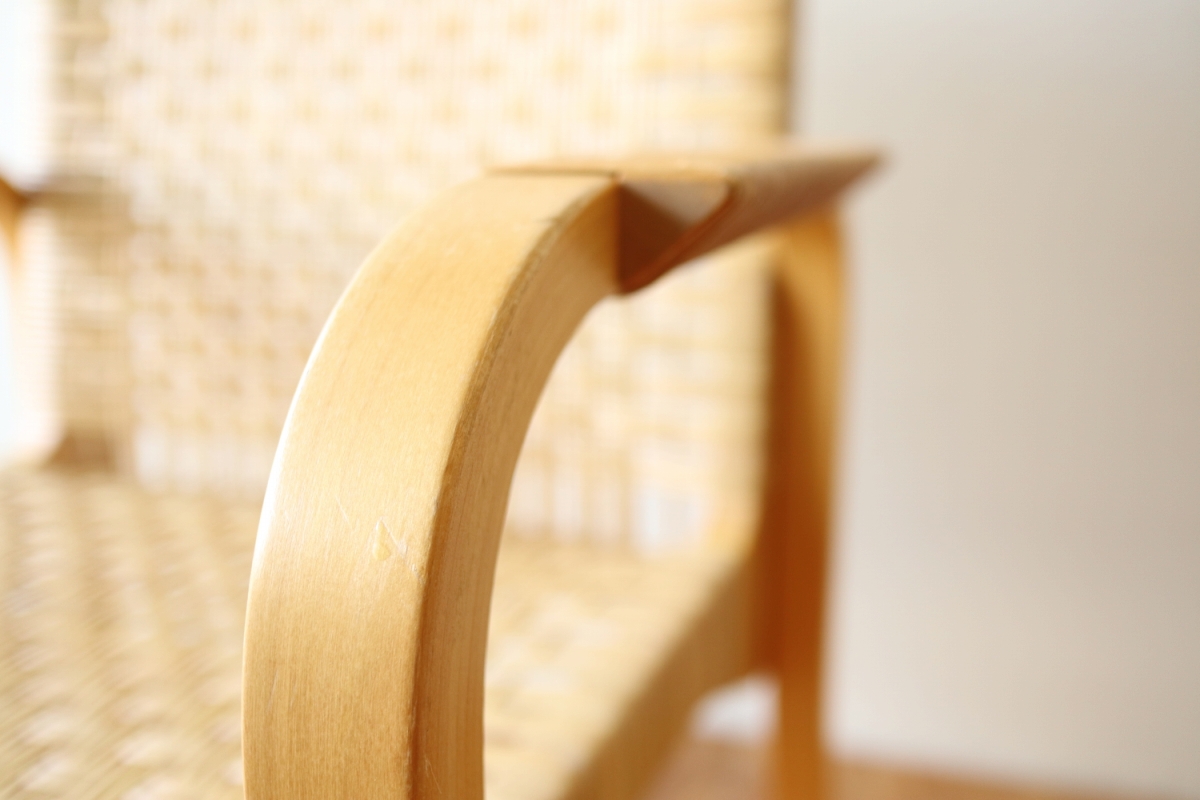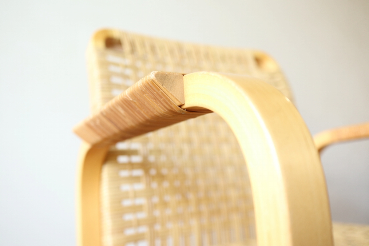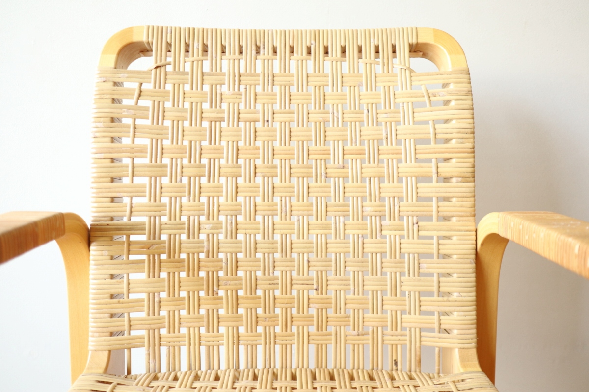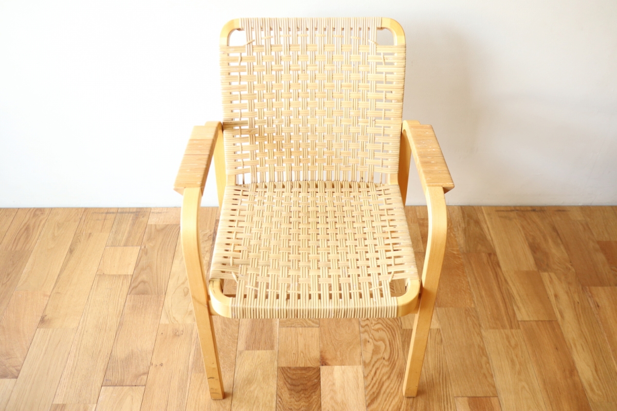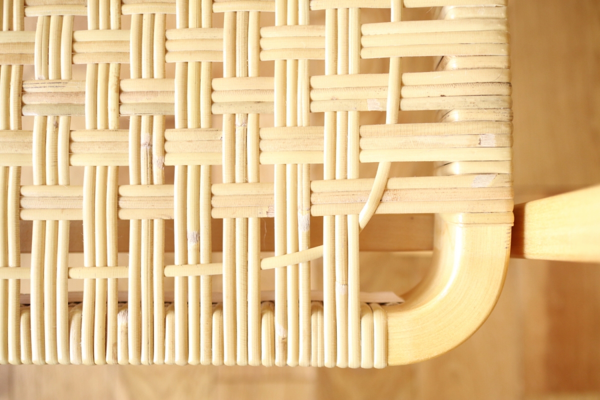 | ArtekのChair45です。80年代ごろのヴィンテージ。 Chair45は現在は廃番となっておりますが、ウェービングテープ仕様で定価20万円以上していた高級ラインのチェアです。 当店入荷後、籐張にしております。アーム部の籐はオリジナルのまま残しております。。 適度な張りとしなやかさがあり非常に座り心地が良くしあがっております。 耐久性もあり、長くお使いいただけます。 |