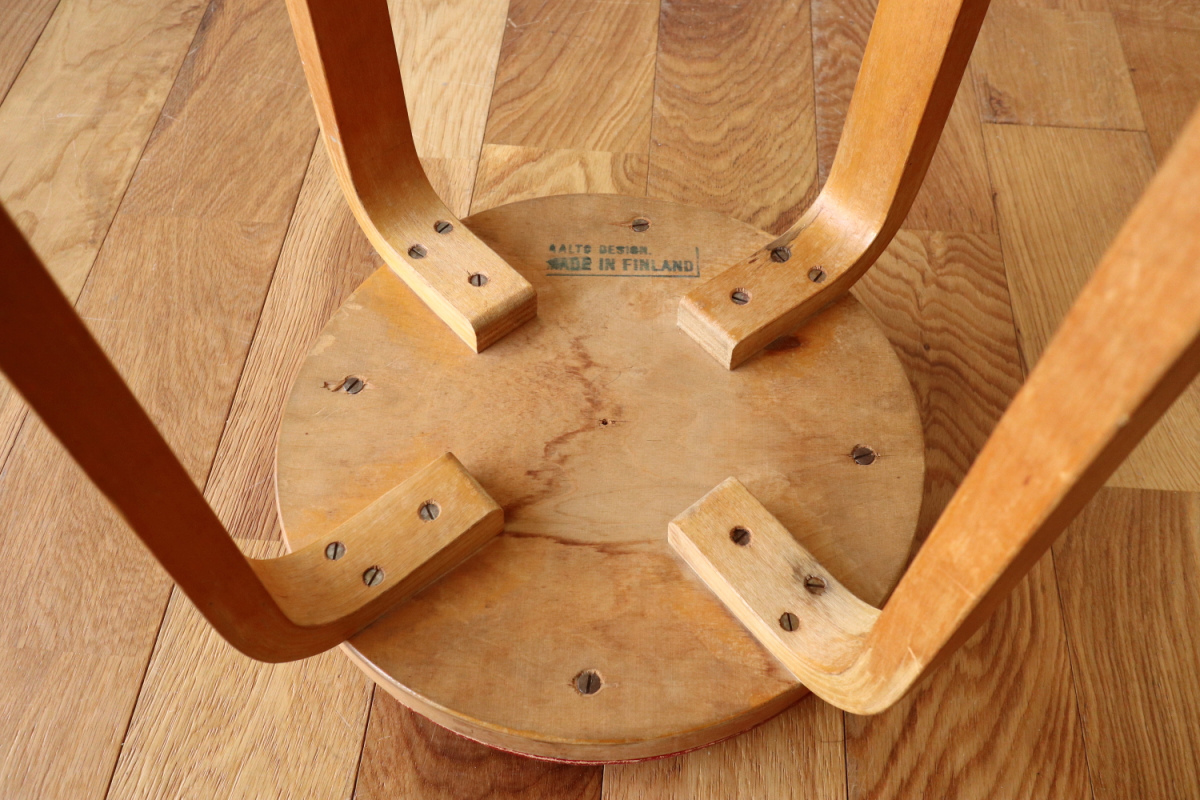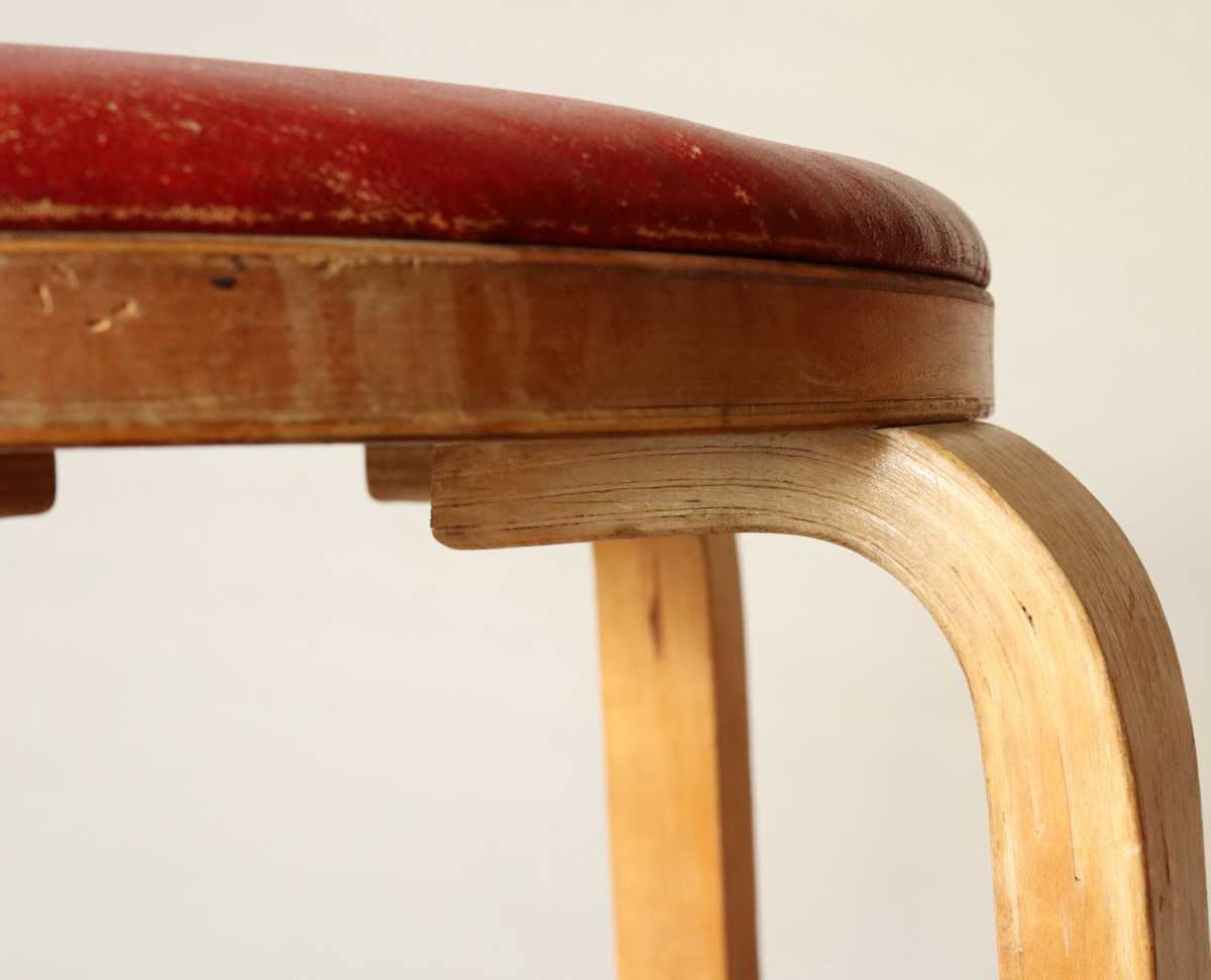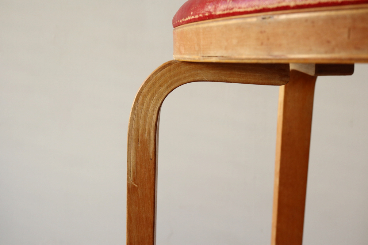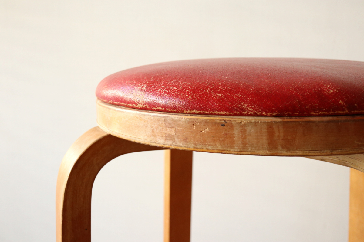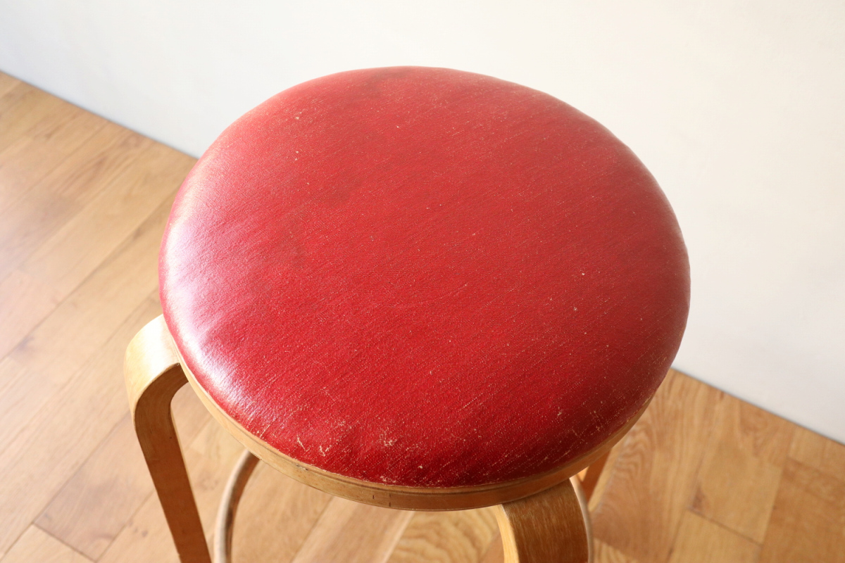 | 大変希少な30年代のBarStool64。当時のカタログ表記では64/86。 とにかく50年代以前のBarStoolは極端に個体数がすくなくめったに出てこないアイテムです。 中でも最初期の30年代物は別格で希少性は大変高いです。 こちらは当時のフェイクレザーが張られたモデルです。 塩ビのレザーが一般的ではなかった当時、布にニトロセルロースを塗布したものがフェイクレザーとして使われていました。 オリジナルのまま残ったこちらは大変希少です。 実用も可能ですが、このまま残すためにはコレクション的な扱いが良いかもしれません。張替も可能です。 |
