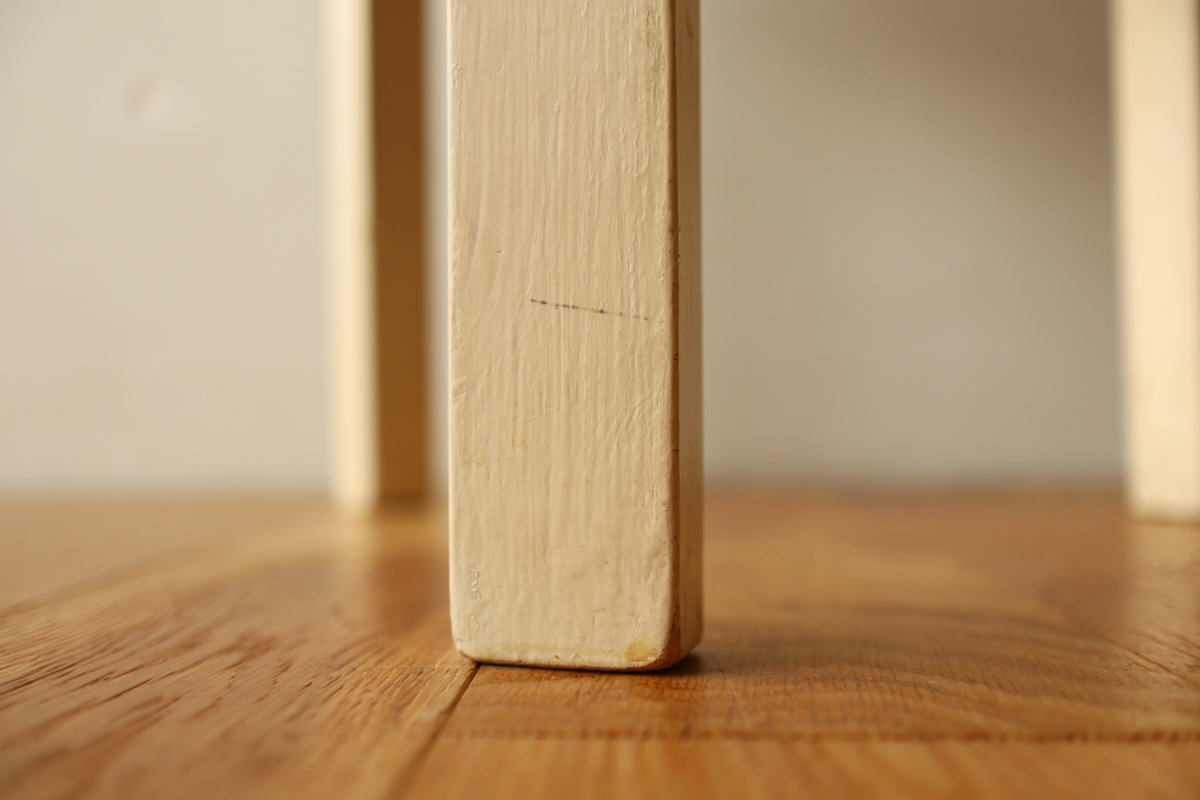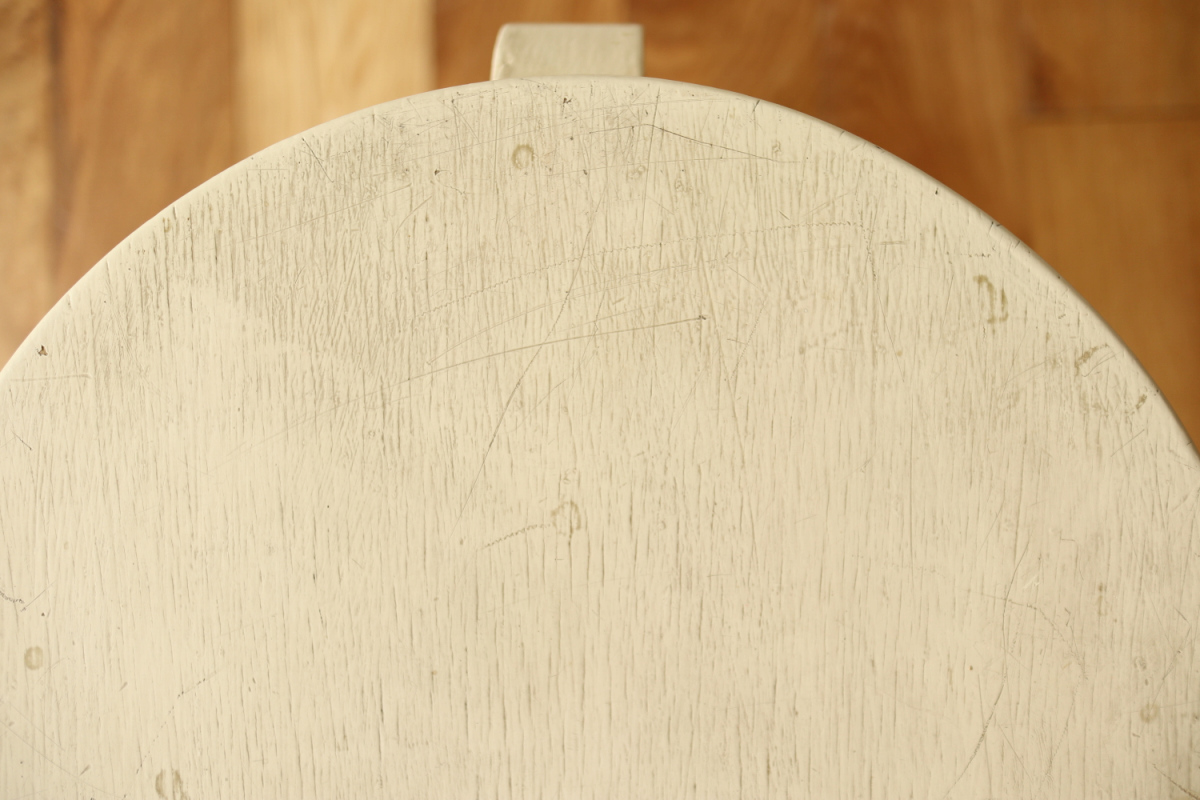 | 座面側部のフィンガージョイントは3か所、脚のスリットは4枚。 座面裏の様子を見る限り50年代であろう1台です。 リペイントは素人作業ですが、かなり前にされているようで、エイジド感がしっかりと出ております。 大変雰囲気の良いリペイント物で、こういう個体を探すのは非常に大変です。 これから先も楽しみな一台です。 |