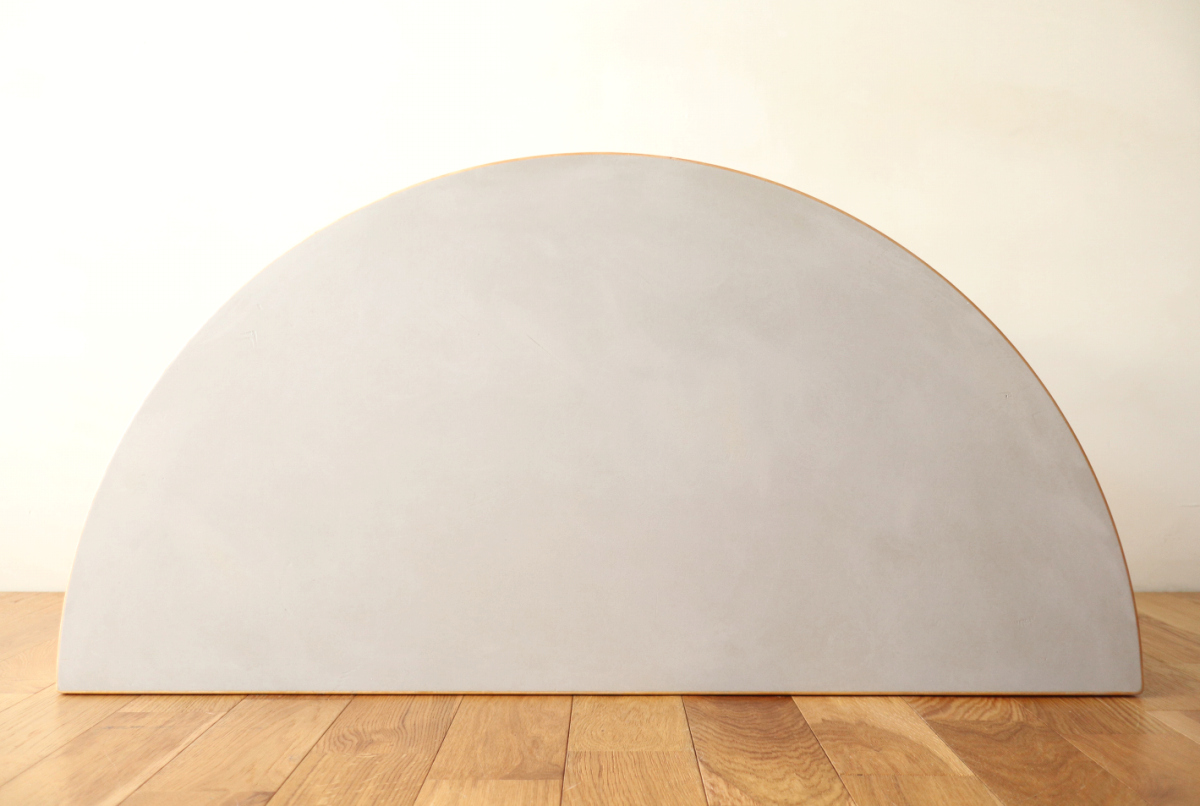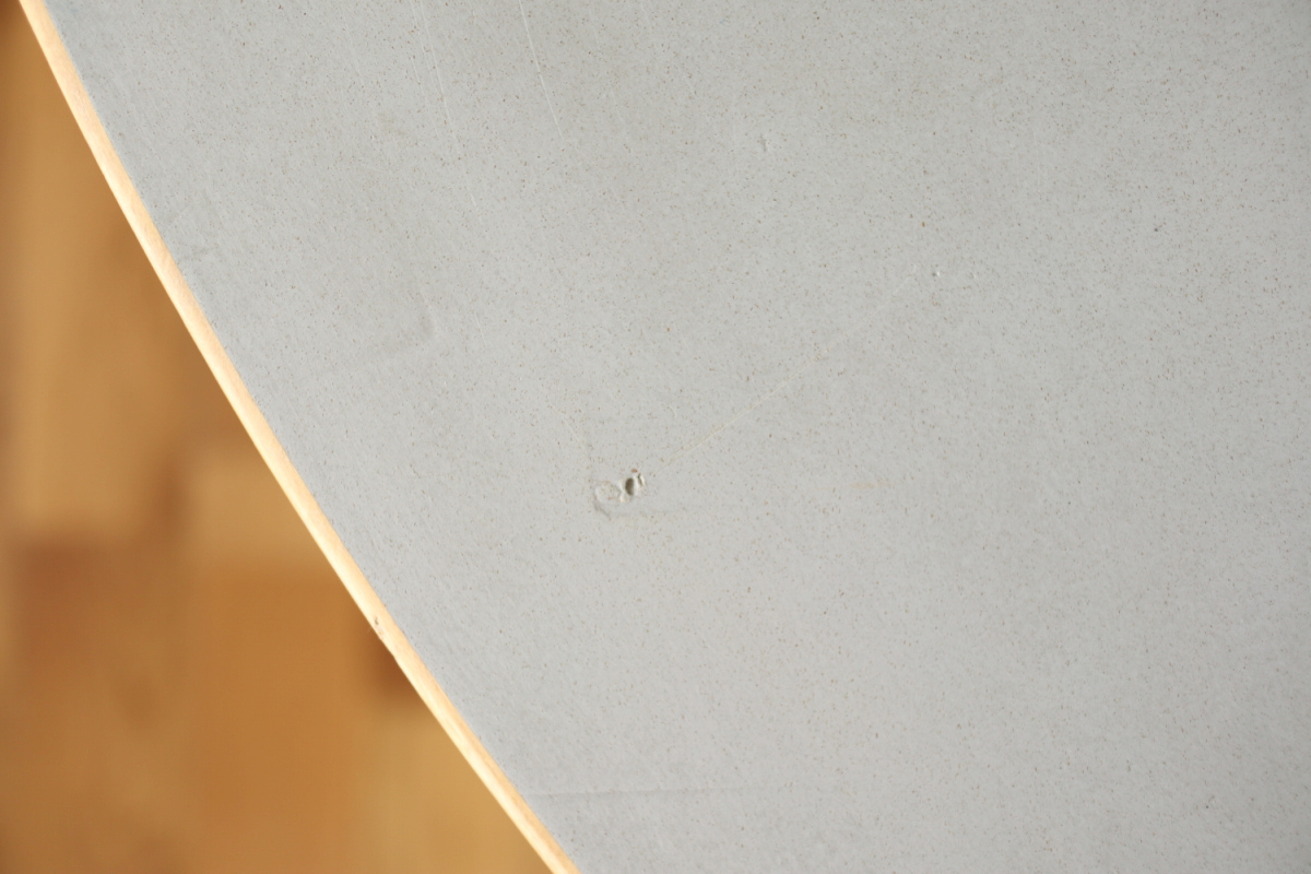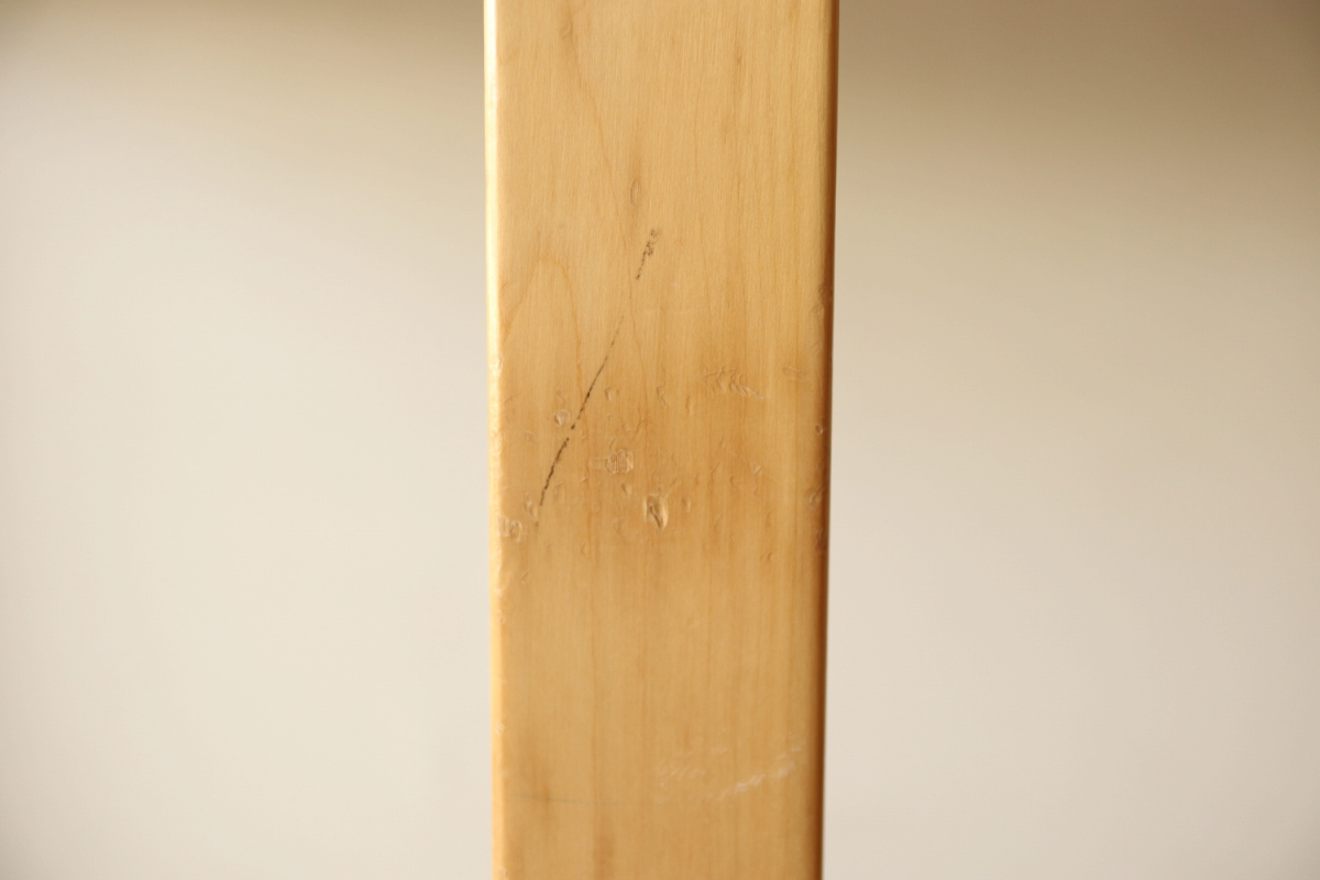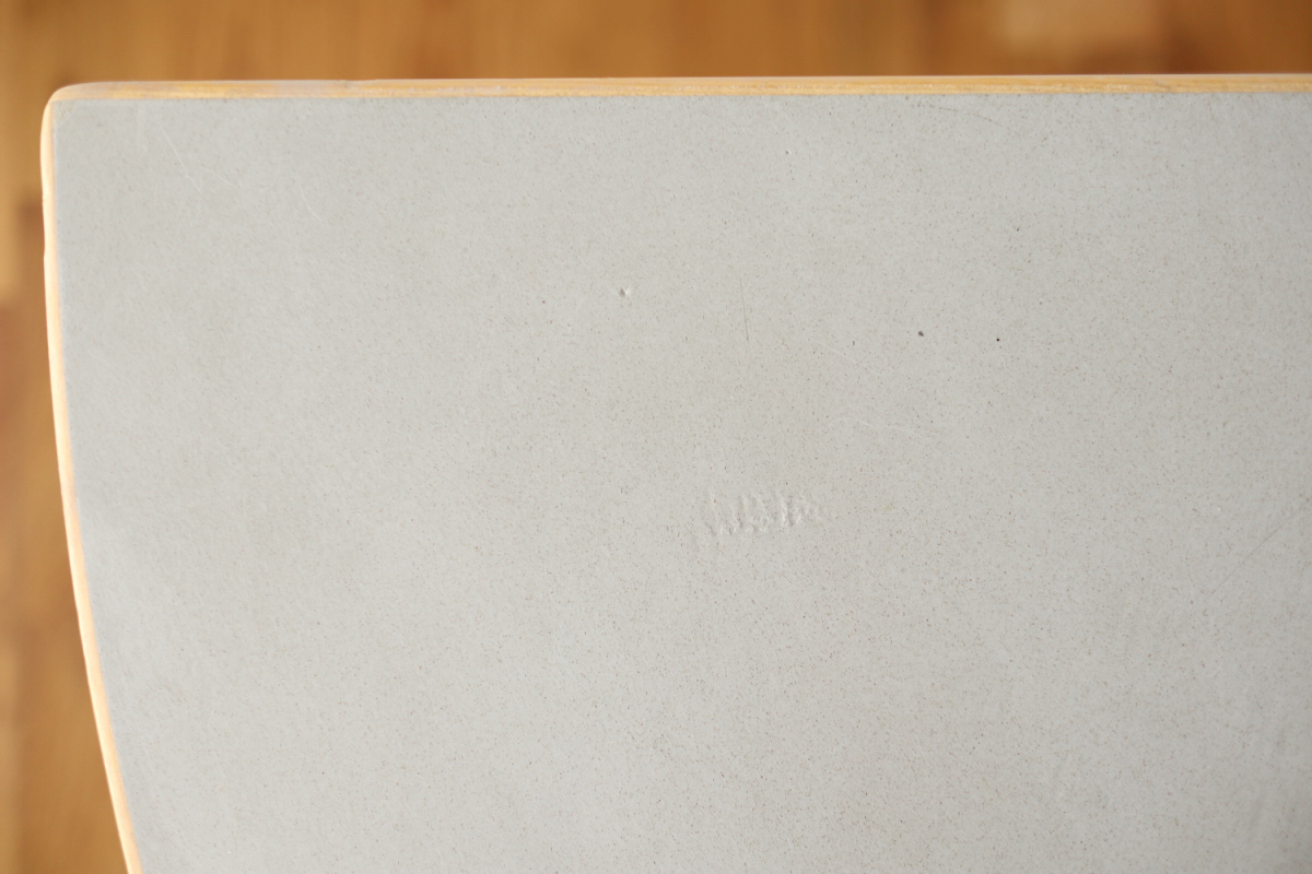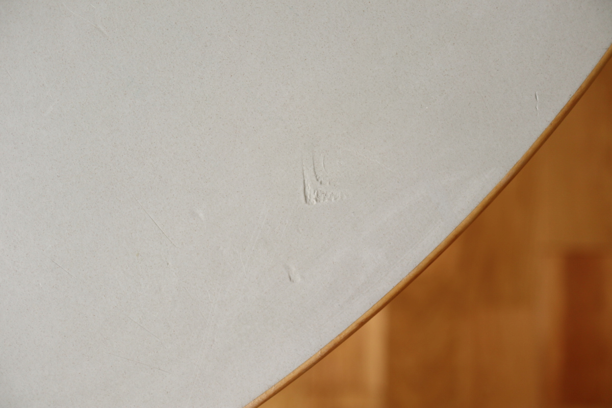 | 70-80年代のtable95 半円テーブルです。 壁際にテーブル空間を作ることができ、リビングや寝室のスペースを有効活用できます。 フィンランドでは子供の勉強コーナーなどにも使われてるのをよく目にします。 ダイニングテーブルの高さですのでちょっとした書斎コーナー的な使い方も可能です。 グレーのリノリウムですので、シンプルなお部屋に合わせやすく落ち着いた雰囲気があります。 1か所ネジ穴が追加されておりましたがきれいに処理しております。 足を取り付ければ見えないところですので、見た目にも問題ないと思います。 |