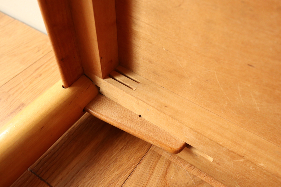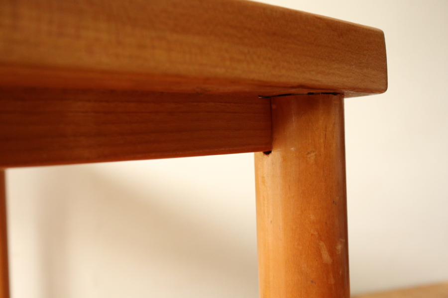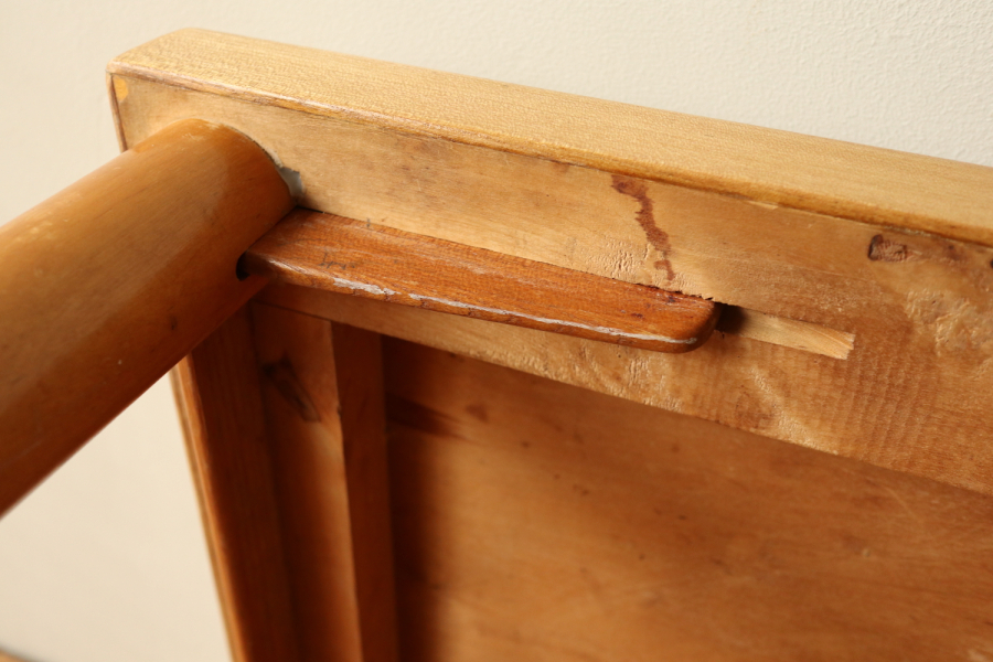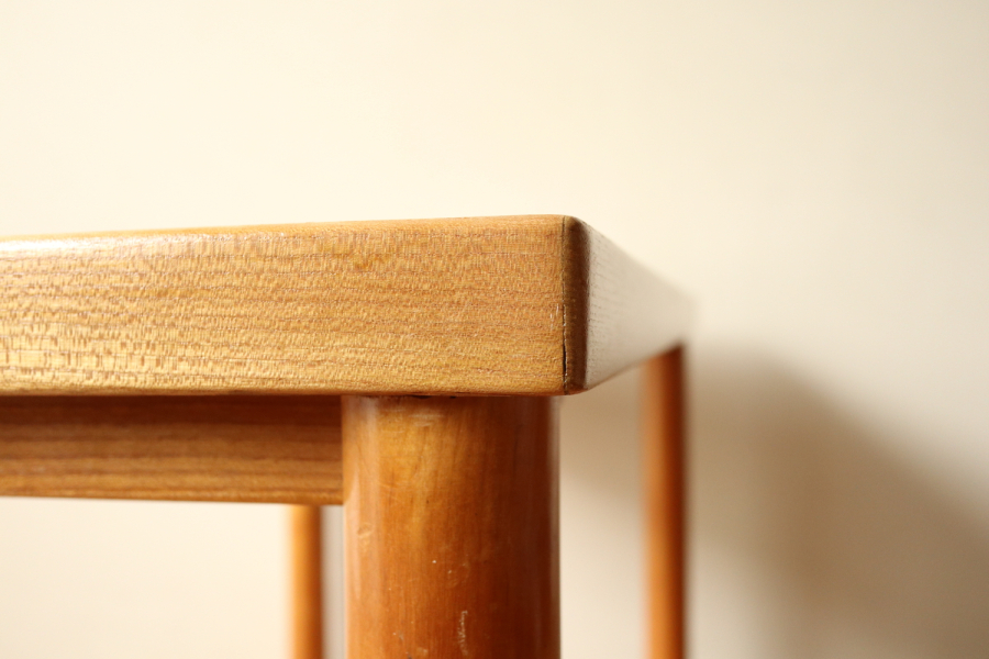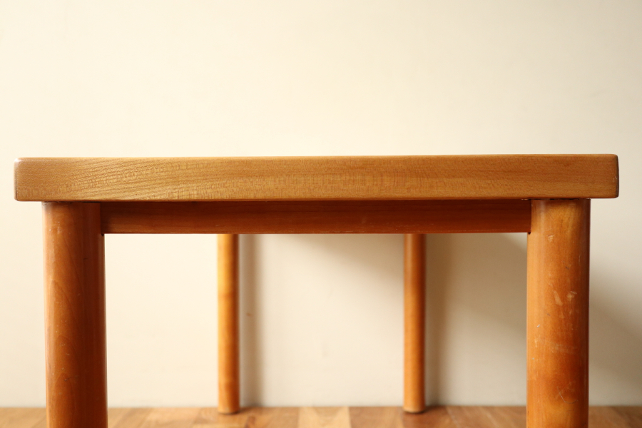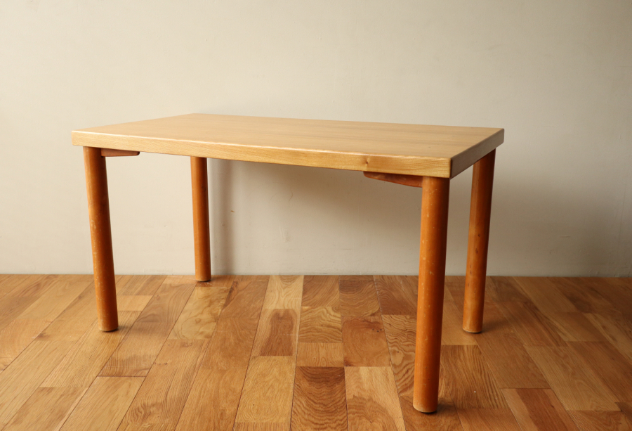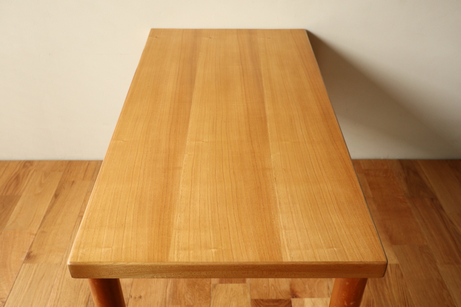 | 50年代頃の超希少なソファーテーブルです。 Aino Aaltoによってデザインされた作品で丸い脚が特徴です。 フィンのようなサポート材が構造的かつ意匠的にうまくデザインされています。 トップはこれまた希少なエルム材。 全体的なコンディションも申し分ありません。 天板裏側にはスタンプも残っています。 |