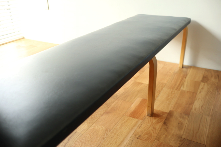 | 60年代のフラットベンチです。 153シリーズのいわゆるグリルベンチではなく座面がフラットなつくりの珍しいタイプです。 奥行きも広く、ゆったりと座れます。 巾が180cmありますので、広めのリビングで使ったり、事務所やクリニックの待合室等にも良いと思います。 座面はオリジナルのビニールレザーですが、ところどころに破れはございます。 別途費用になりますが、張替えのご相談承ります。 |