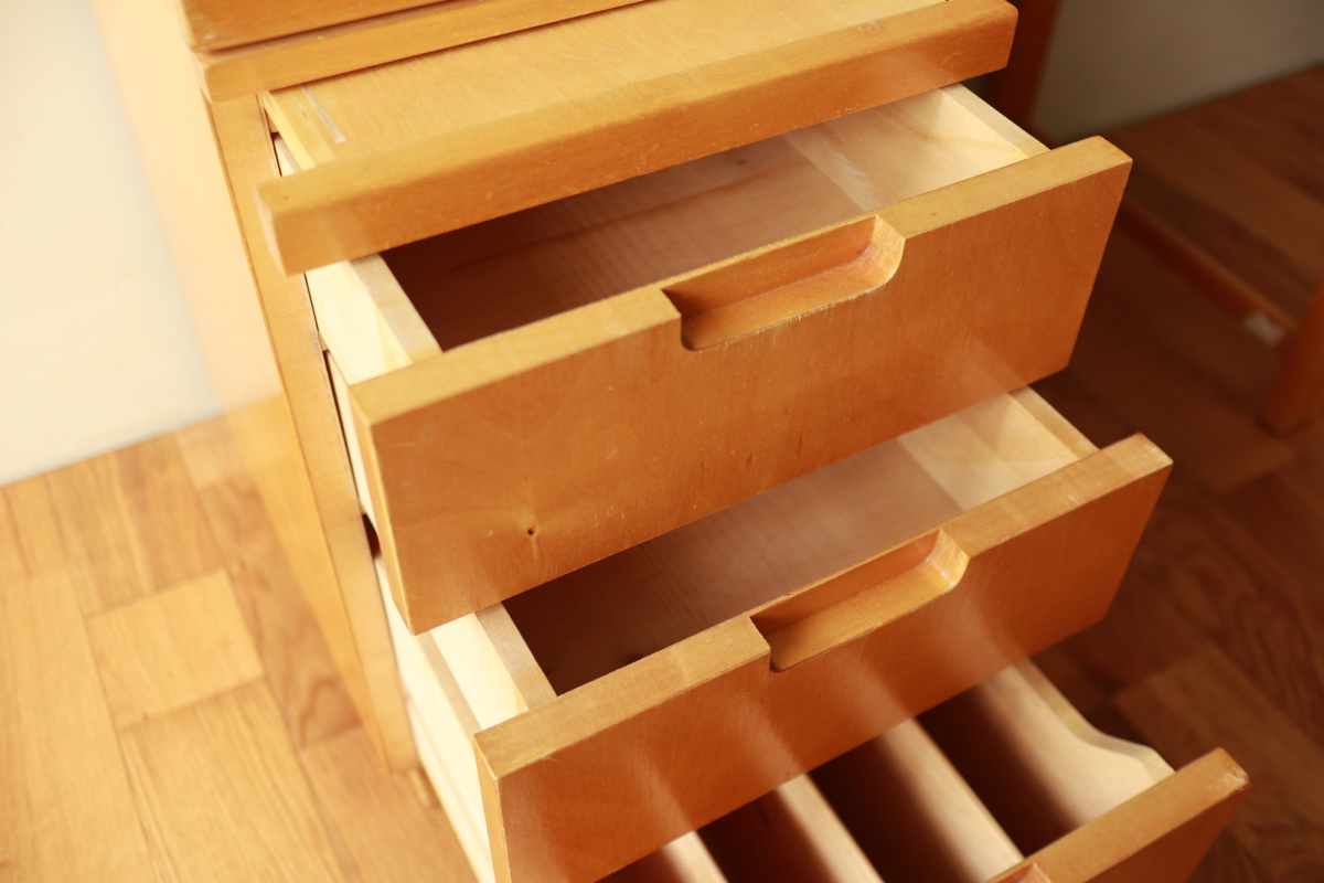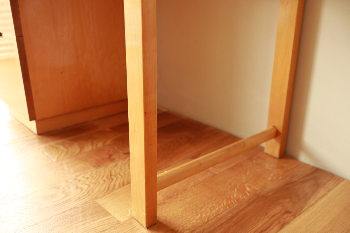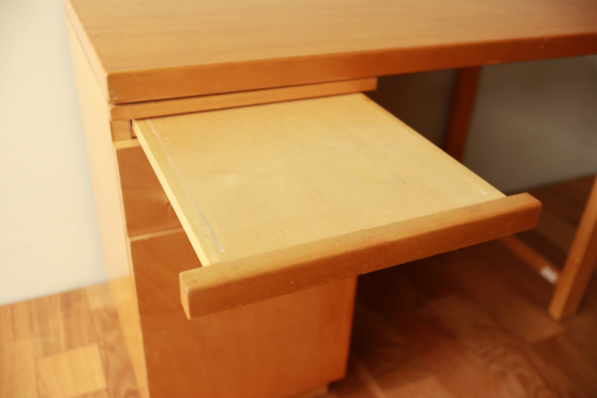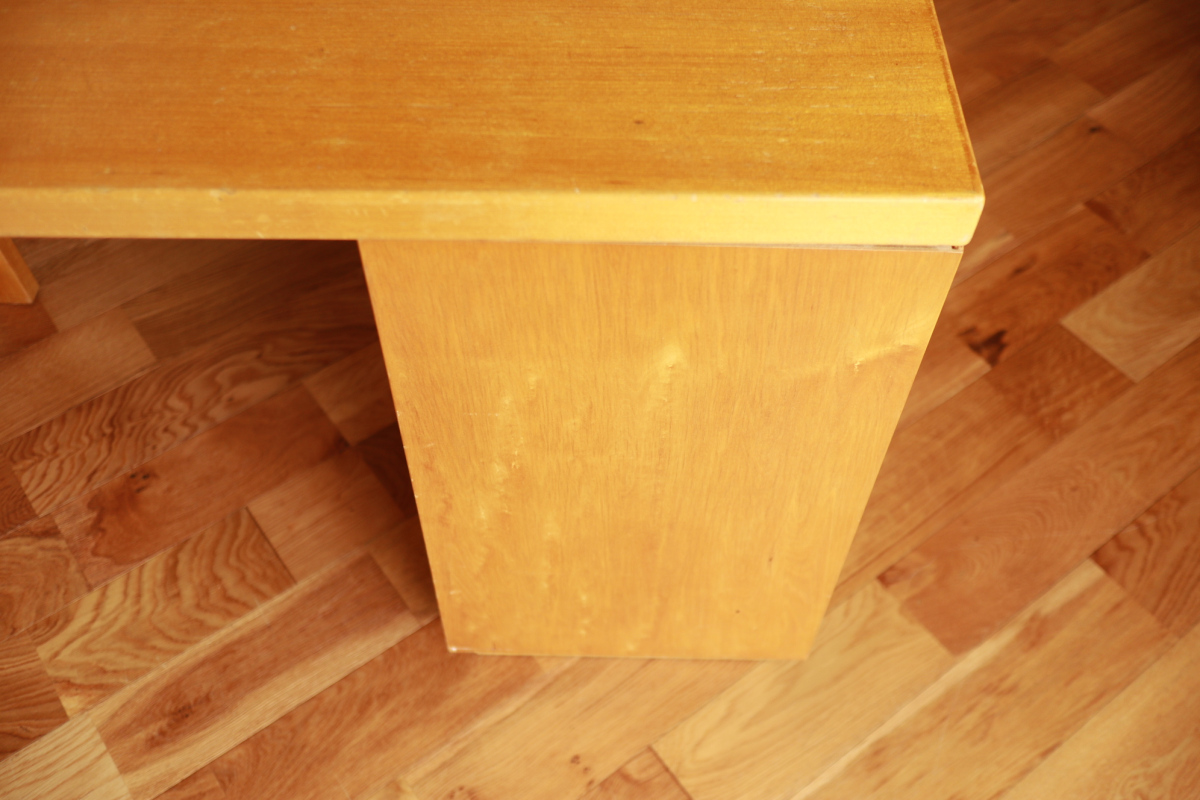 | Table & Deskboxのセットです。 40-50年代のカタログに掲載されており、型番は920。 デスクボックスの内部は間仕切りがあり書類整理の実用性が高いです。 また、引き出し式の拡張板も格納されております。 テーブルの脚には前後のつなぎがはいっており、他とは一線を画すデザインです。 標準的なデスクボックスとテーブルのセットではなく、モデル名を付与し 明確な意図をもってデザインされたシリーズです。 大変レアなモデルです。 |