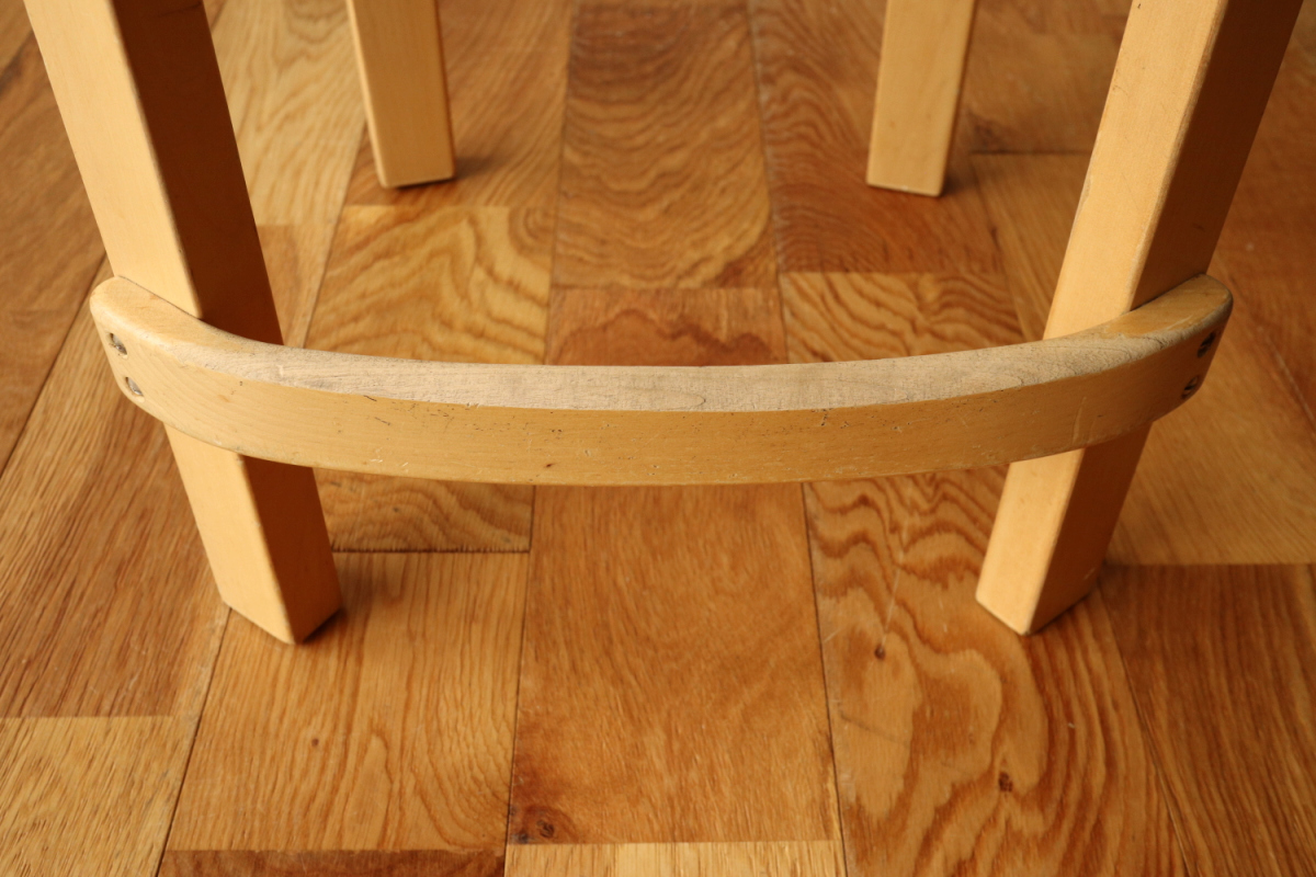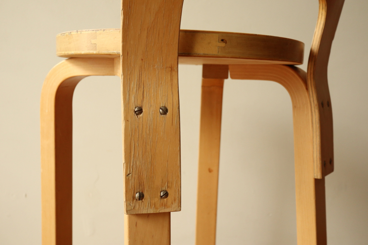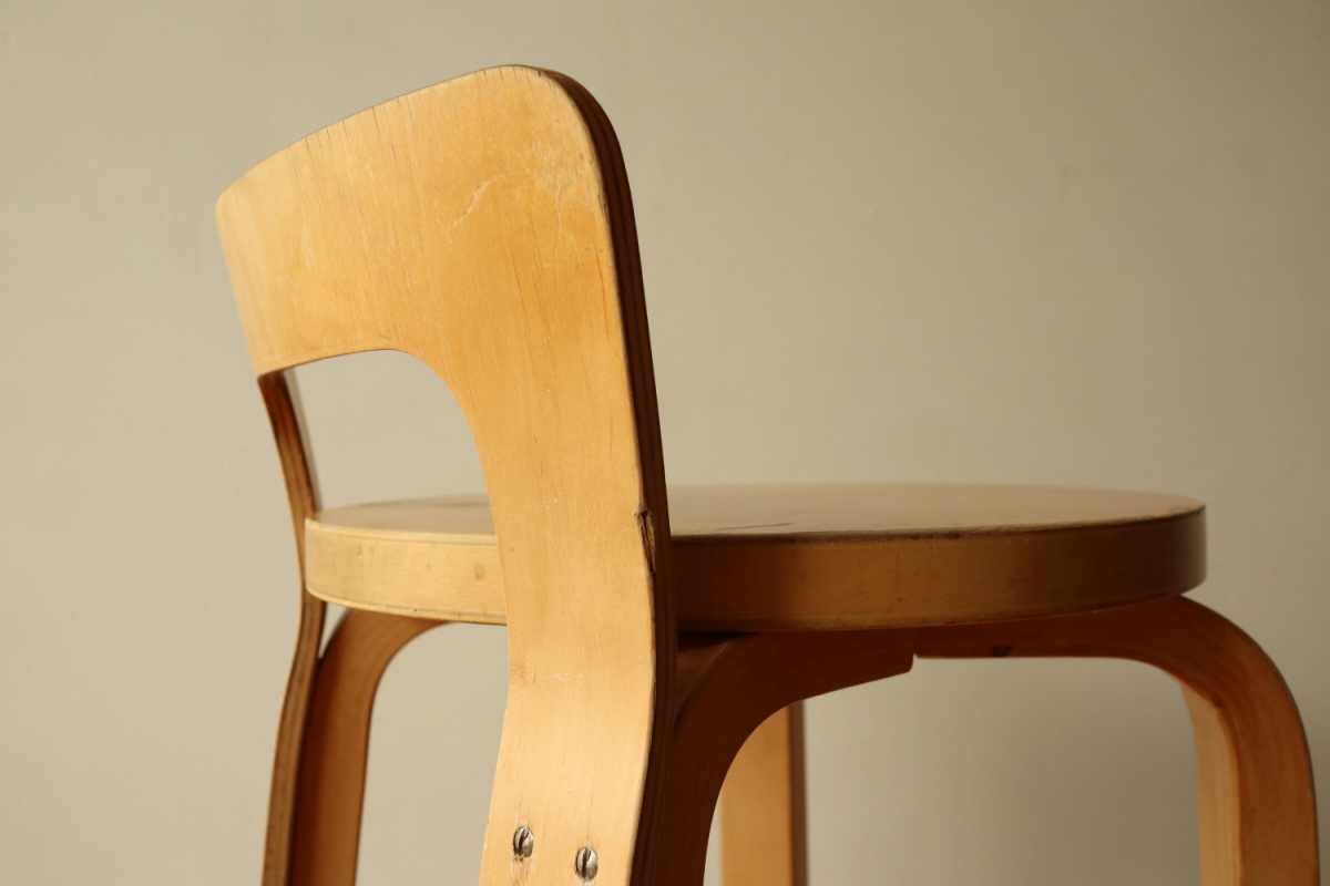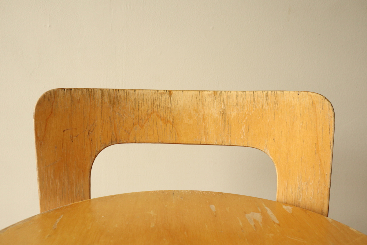 | 60年代のハイチェアK65です。 座面側面のフィンガージョイントやマイナスビス、60年代特有の塗装など ヴィンテージのエッセンスが随所に見て取れる雰囲気有る1台です。 ヴィンテージK65は数が少なく、貴重になっております。 これからもガンガン実用としてお使いいただきたいチェアです。 |