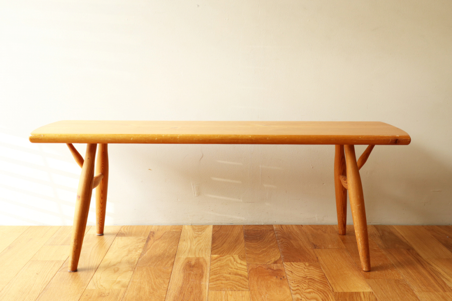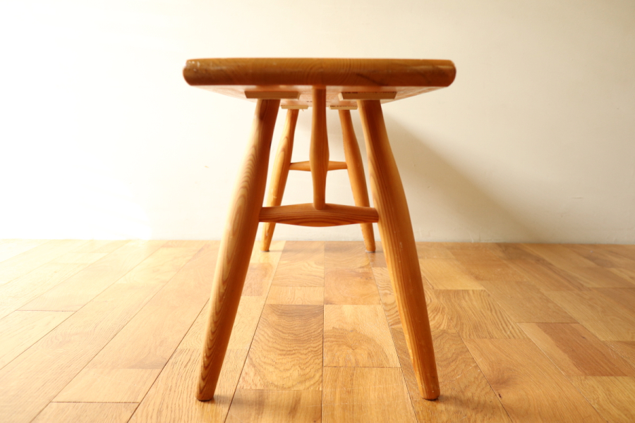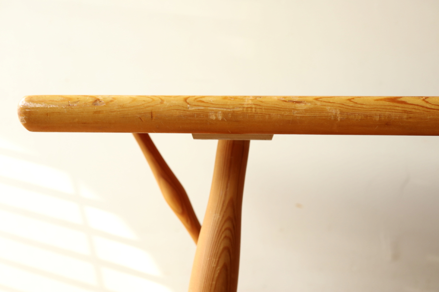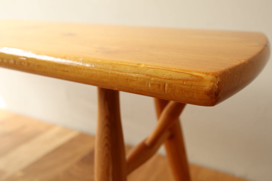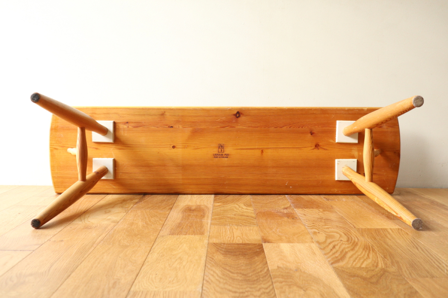 | おそらく60年代頃のタピオヴァアラデザインのベンチです。 詳細は不明ですが、ピルッカではないラウカンプー時代の貴重なヴィンテージです。 当時、タピオヴァアラによるデザインでいくつか派生したアイテムがありましたのでそのうちの一つだと思います。 以前、アルテックの2ndcycleでこれと同型のヘンチが販売されていましたが TAPIOVAARA DESIGNの刻印もありました。 ピルッカとの違いは天板の形状と、脚のパーツが一つすくなくすっきりとしております。 パーツが一つ少ないためか、補強目的のベースプレートがついており 強度はしっかりとあります。 ナチュラル仕様は珍しく大変希少なアイテムだと思います。 |