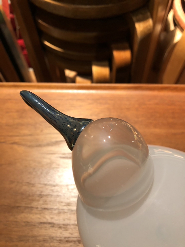 | 1983年~1994年に製作されていたカモメ Sea Mewです。 白いボディにクリアがかった頭、ラスタが入るクチバシです。 幅約31cmで大きさもあり迫力がある大型バードの一つです。 底面にはカットサインが入っております。 バランスがよくルックスに優れた個体です。 |
