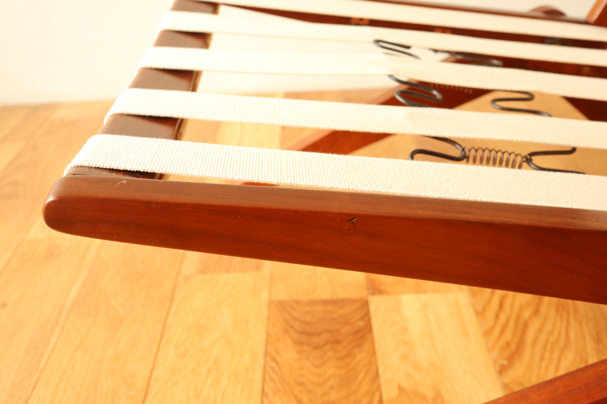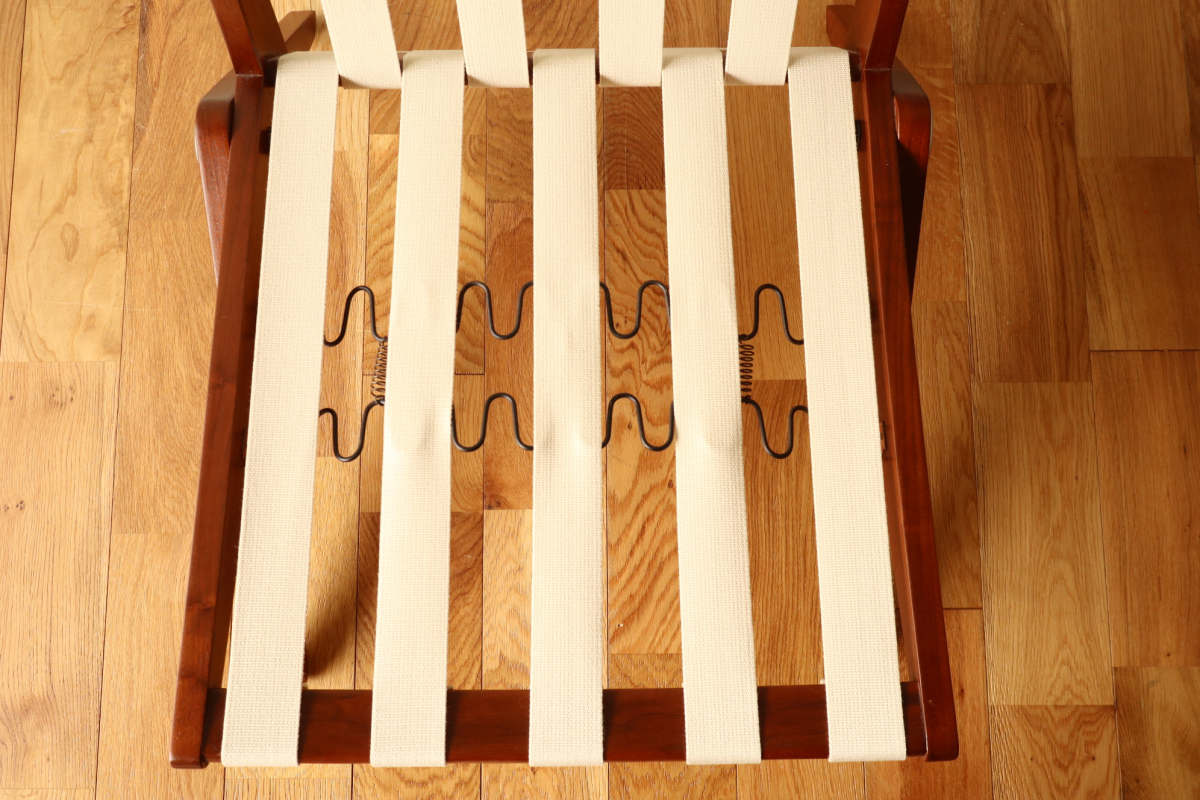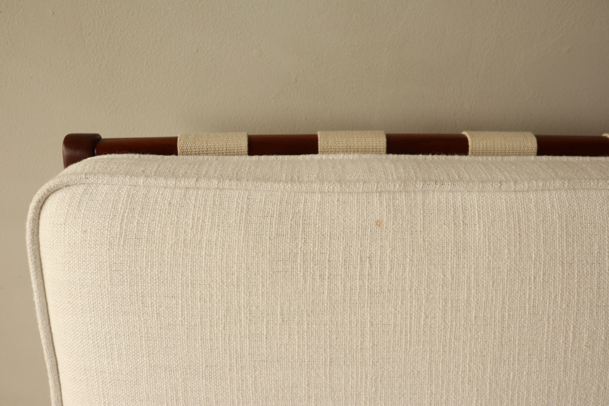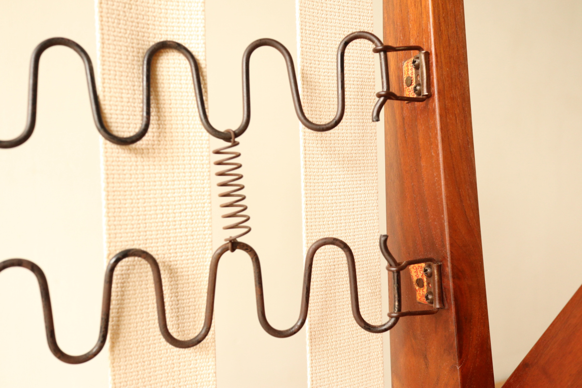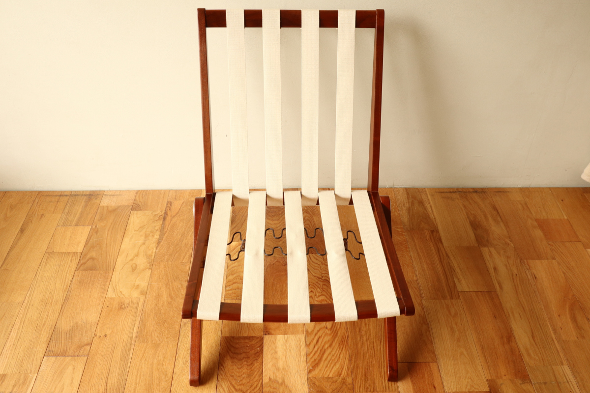 | ピエール・ジャンヌレによるシザーチェア。 交差するフレームによって構成されたシンプルな構造は、視覚的な軽やかさと力強さを同時に成立させています。 低く抑えられたプロポーションと傾斜のついた背は、ラウンジチェアとしての快適性と、空間に対する安定感をもたらします。 フレームは大変希少なチーク材。 脚のディテール、ラベルからみて50年代と判断しております。 フレームはオイルステインクリアラッカー、ウェービングテープ、クッション含めレストアされてから丁寧に使われていたようです。 シートクッションには木板は入っていませんので少し沈み込むようなゆったりした座り心地です。 背面にはKnoll Associates時代のラベルが確認できます。製造背景や流通経路を含め、 プロダクトとしての奥行きを感じさせるディテールのひとつと言えるでしょう。 ジャンヌレの家具に見られる「構造そのものが意匠となる」思想を体現した一脚。 単なるヴィンテージ家具に留まらず、空間を構成する要素として機能するプロダクトです。 |