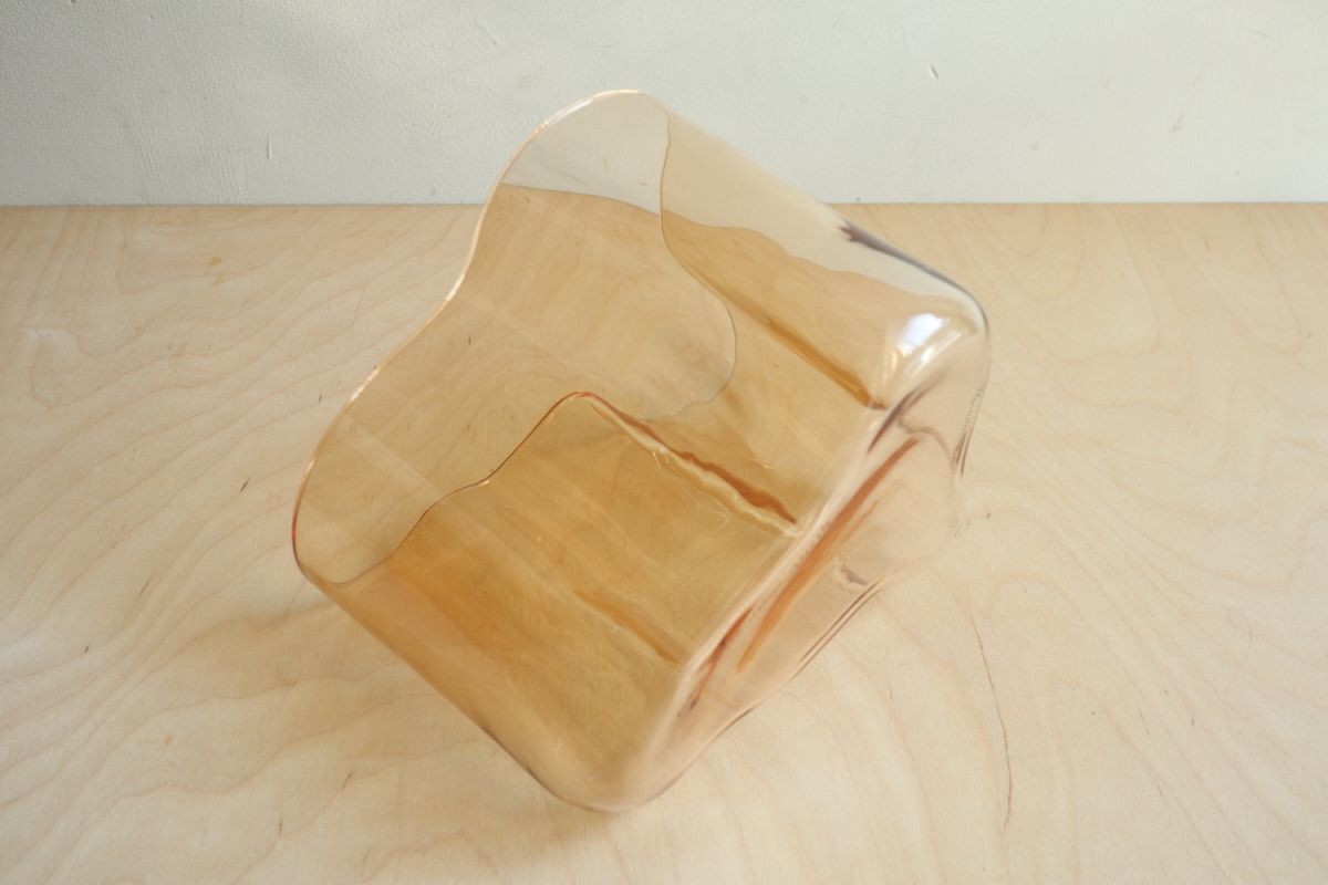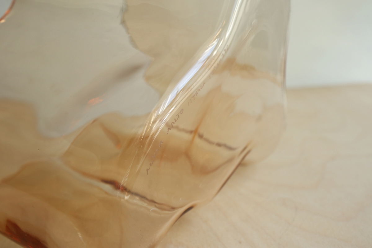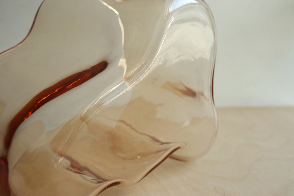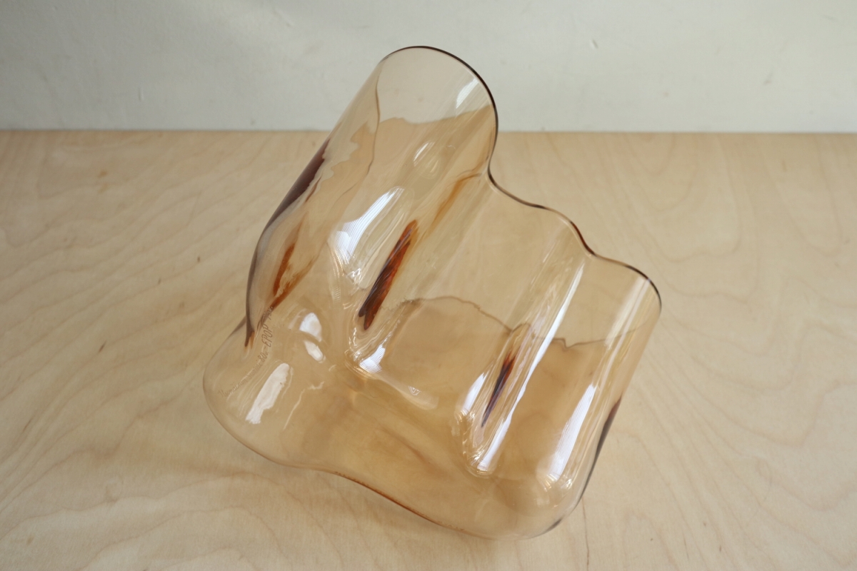 | 1996年にSavoy Vase生産 60周年を記念して造られた限定モデルです。 30年代から40年代に使用されていた高さ14cmの木型を使って製作された大変珍しいベースで 鉄型ではだせない非常に柔らかく複雑な揺らぎのある光を作りだします。 底面には手掘りのカットサイン入り。 生産から30年近いセミヴィンテージ品で、昨今の木型復刻の先駆け的存在です。 現行品の定価が年々上昇する中、レギュラー品とは一線を画すモデルでコレクション価値も高いです。 製造時における気泡や小傷等は見られますが、割れ欠けはなく非常に良いコンディションです。 |